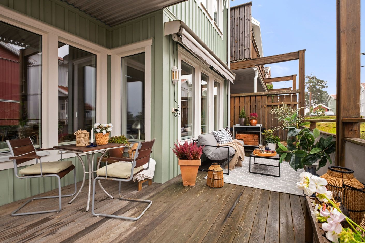 Bostaden om 3,5 rum och kök på hela 101,9 kvm kombinerar bekvämligheten av lägenhet med känslan av radhus. Den soliga altanen blir snabbt hemmets naturliga samlingspunkt under sommarhalvåret – en plats för avkoppling, middagar och umgänge. Läget är lugnt och skyddat, med närhet till både natur och vatten. Planlösningen är både genomtänkt och social. Det luftiga vardagsrummet i öppen planlösning mot köket skapar en inbjudande miljö med plats för både vardag och fest. Från vardagsrummet öppnar altandörren upp mot uteplatsen, där man gärna samlar familj och vänner kring middagsbordet eller njuter av lugnet med en bok i solen. Köket är funktionellt och utrustat med goda arbetsytor, förvaring och allt som behövs för vardagens matlagning.