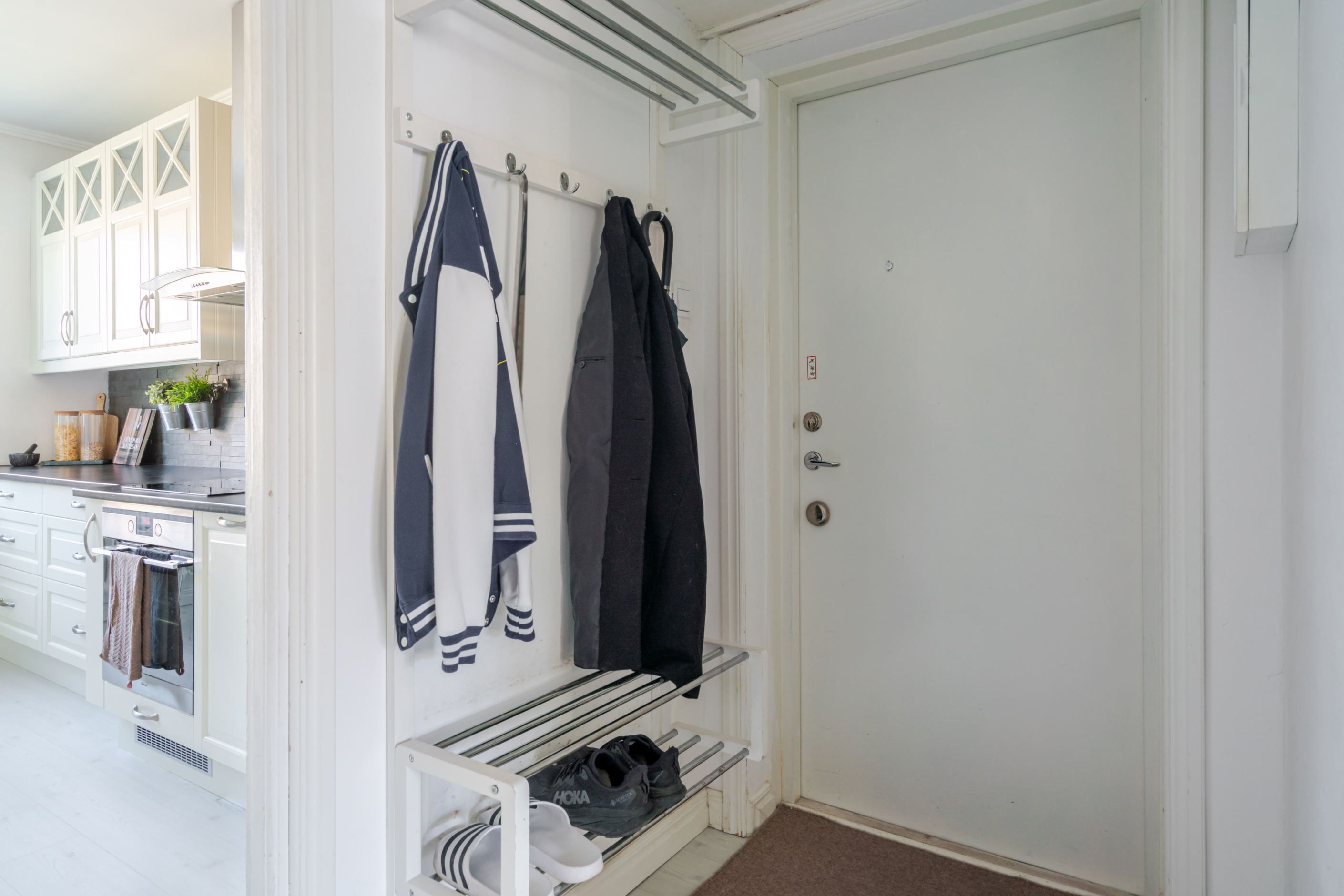 Bostaden har en trivsam planlösning med fint ljusinsläpp från två väderstreck. Hallen välkomnar med bra förvaringsmöjligheter via inbyggda garderober. Köket är rymligt, modernt och i mycket gott skick, utrustat med diskmaskin och med gott om plats för matbord – en naturlig samlingspunkt för både vardag och umgänge.