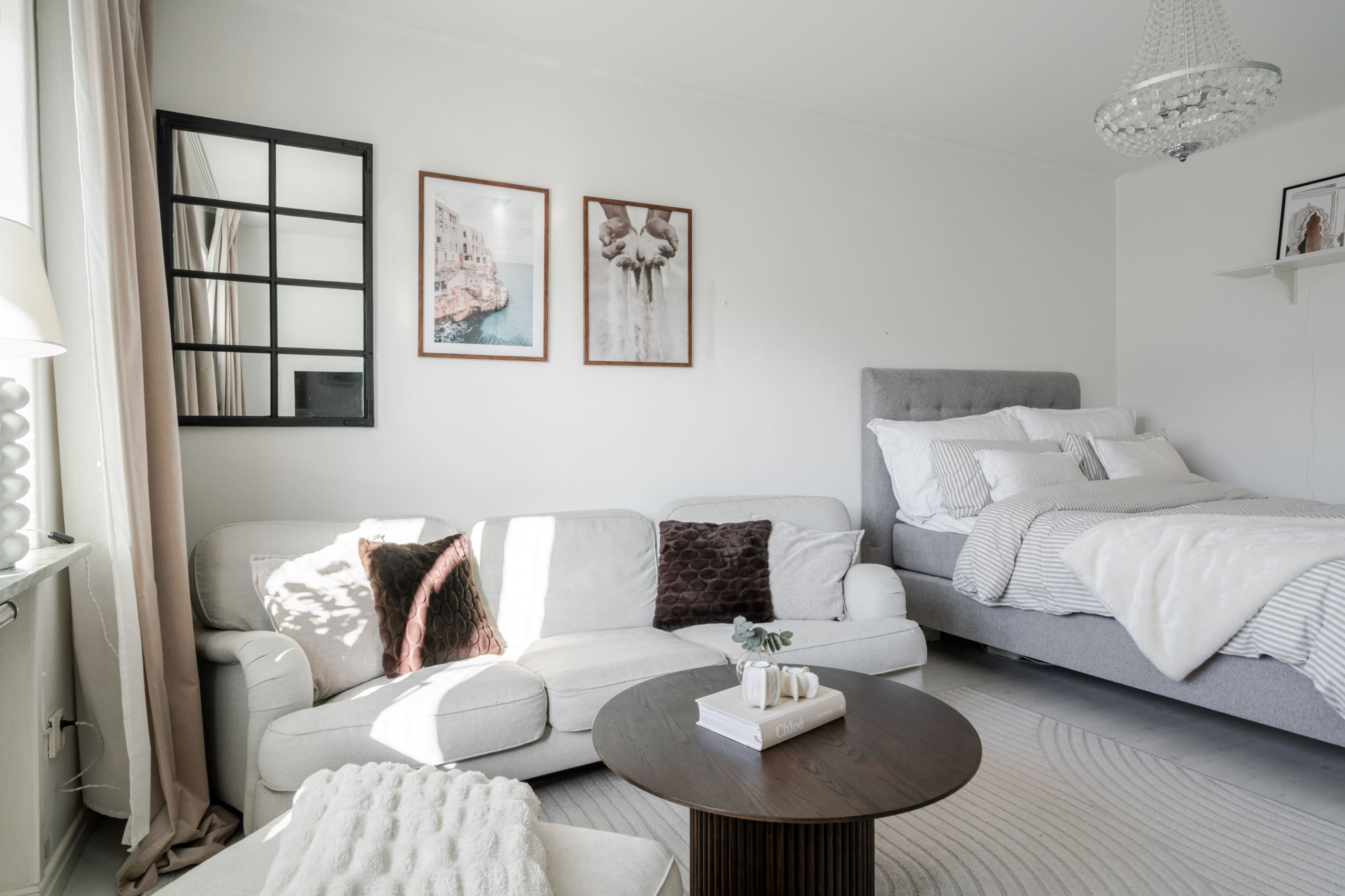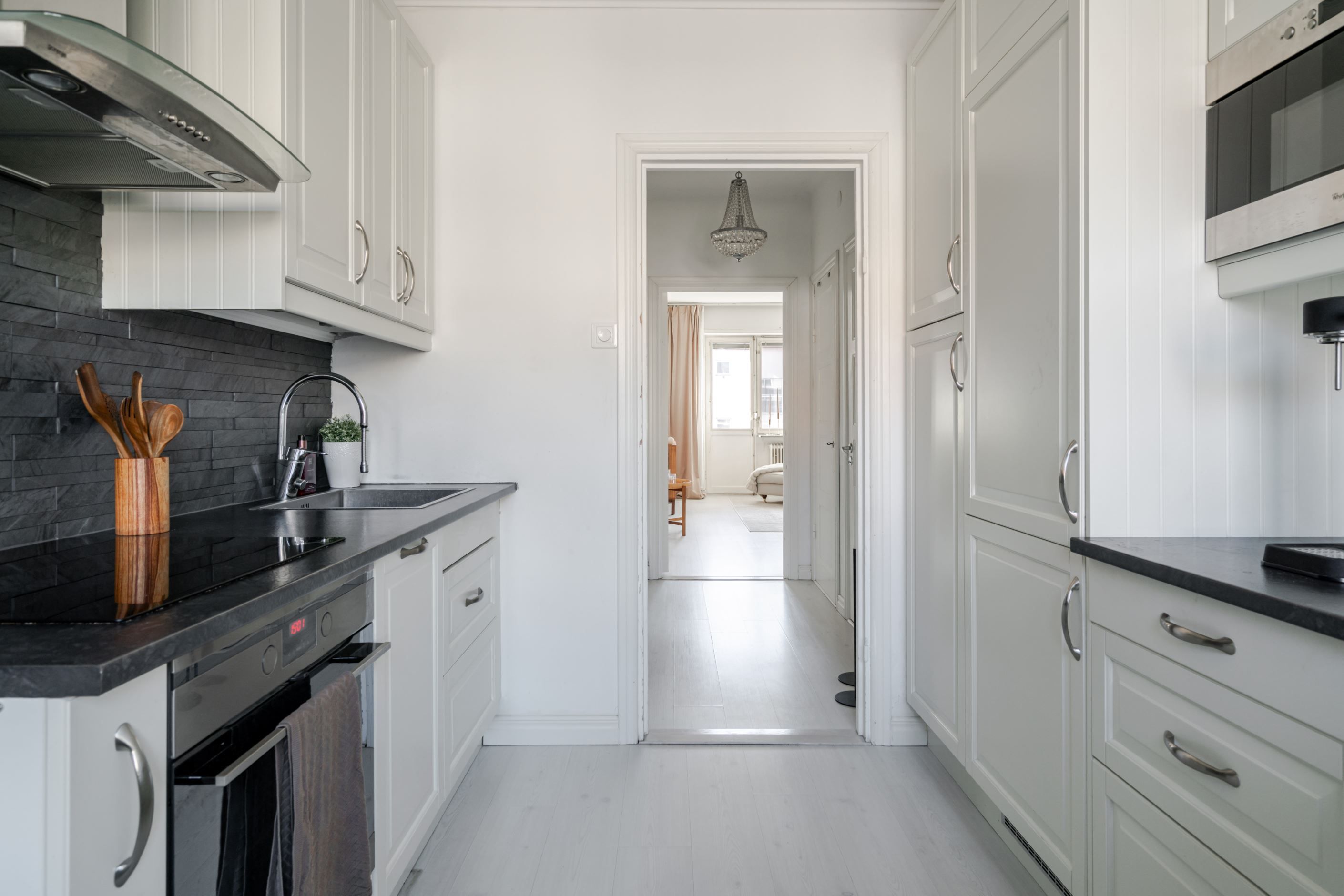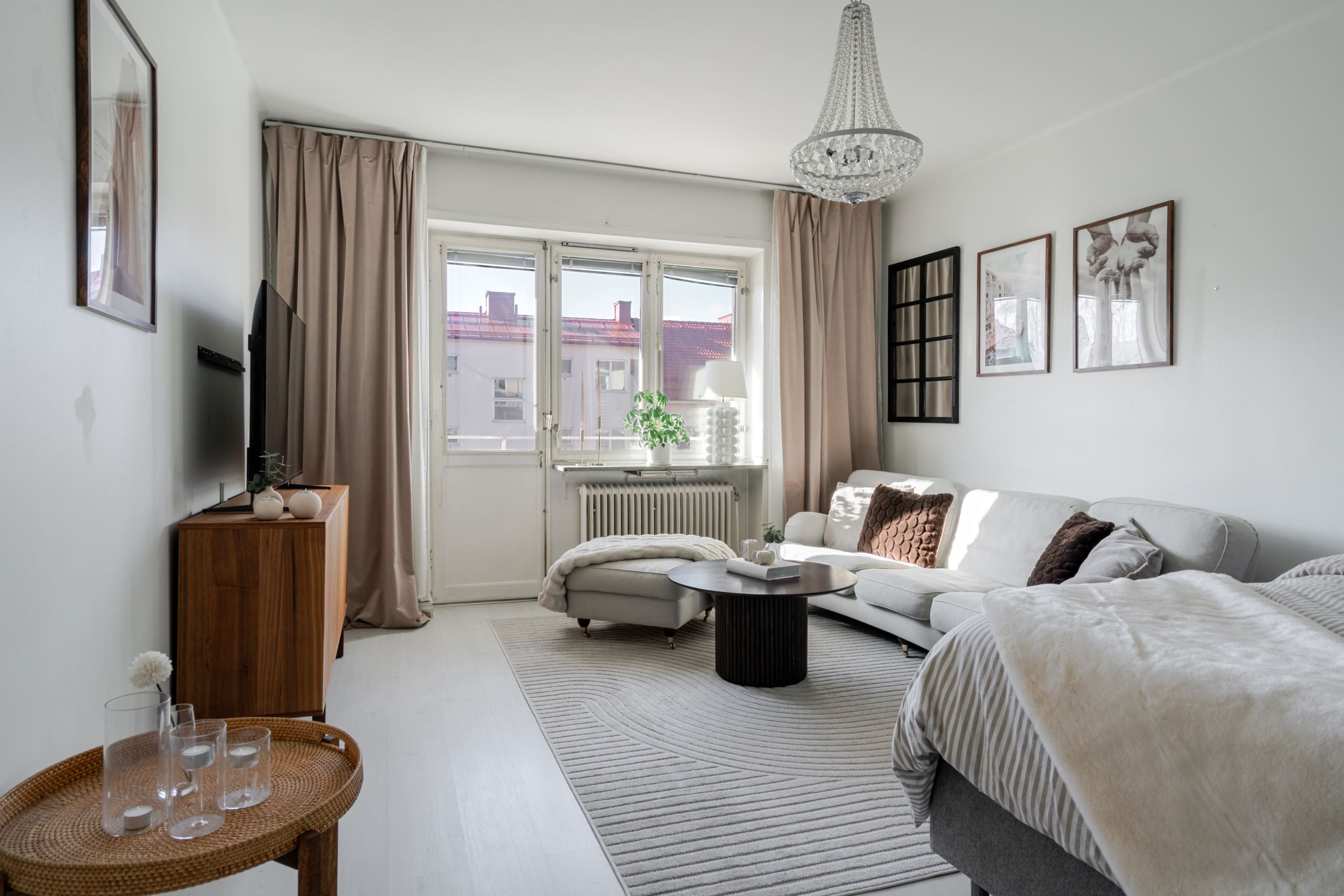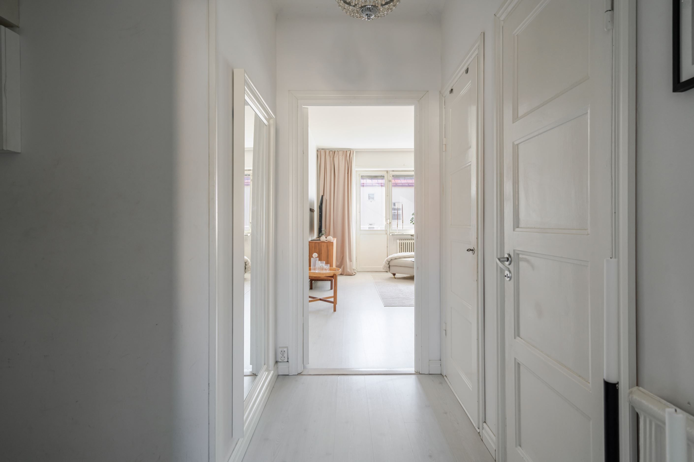 Ljus, välplanerad och mycket hemtrevlig genomgångslägenhet i fint skick, belägen på våning tre av fyra i charmig 30-talsfastighet. Här erbjuds ett boende där både känsla och kvalitet är påtaglig – med genomgående fina ytskikt, stilrena väggar, vackra golv och ett smakfullt kök som verkligen sticker ut.