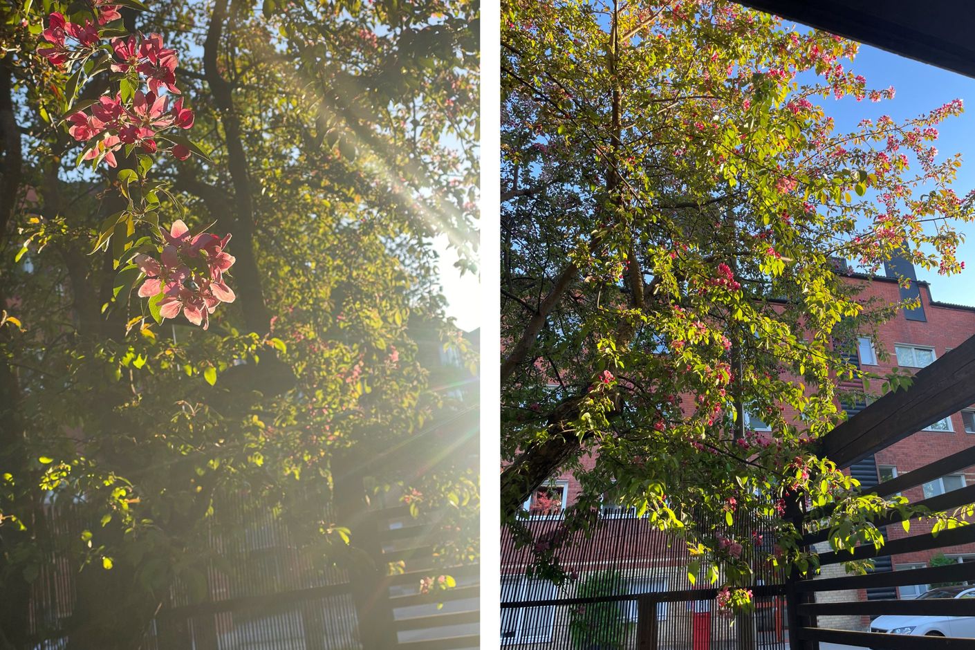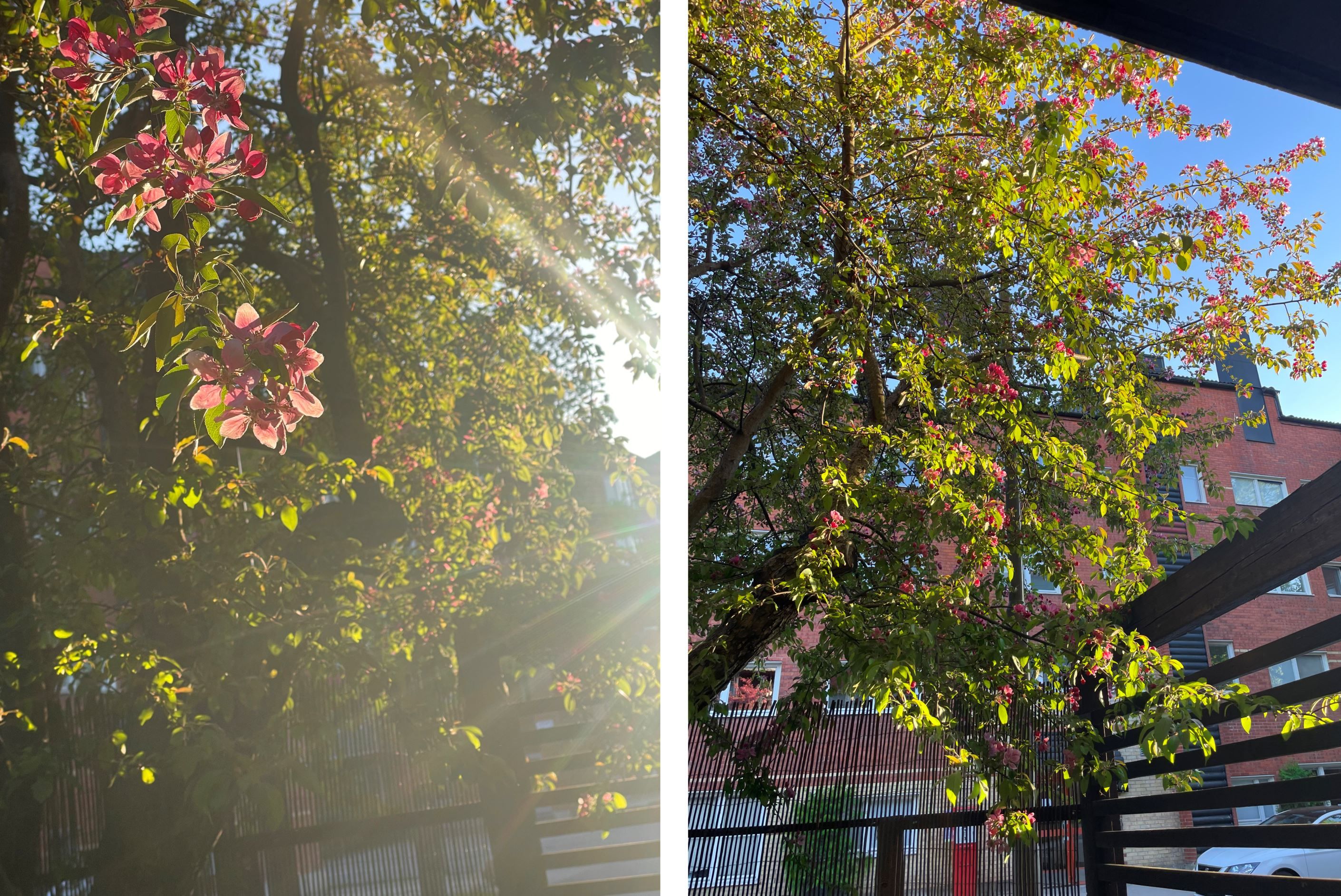 Varmt välkommen till Fallskärmsgatan och till denna smått unika och lättmöblerade lägenhet som tillsammans med de tillhörande uteplatserna ger en generös rymd under de varmare månaderna - som ett litet radhus, mitt i området.