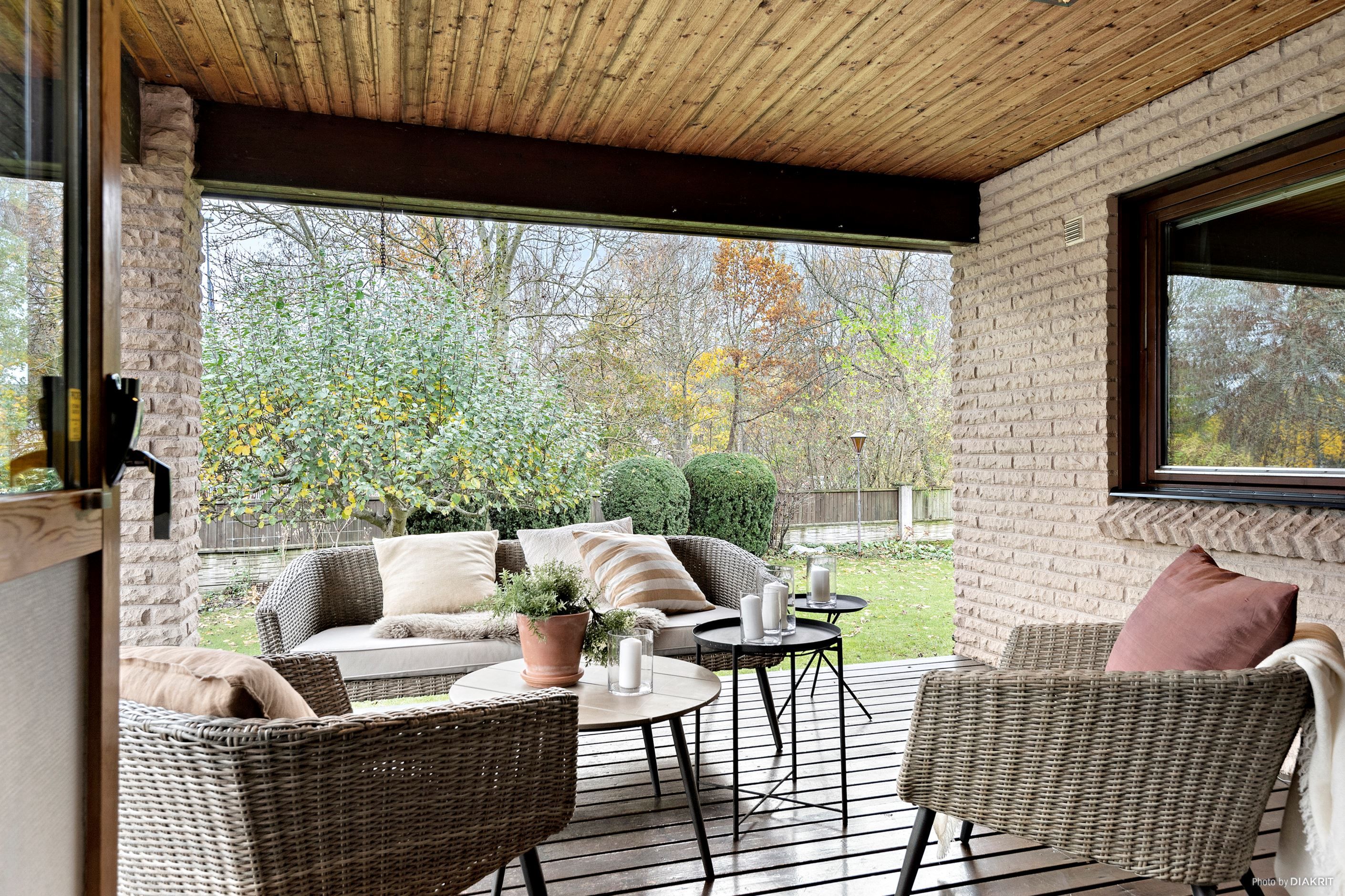 Interiört är bostaden fördelad över fyra sovrum, vardagsrum, kök, WC, badrum samt en kombinerad tvättstuga och bastudel. Gemensamt för interiören är de genomtänkta materialvalen som tjänar bostaden mycket väl. Huset värms upp med hjälp utav effektiv bergvärme och braskaminen säkerställer mysfaktorn och extra värme under kalla vinterkvällar.