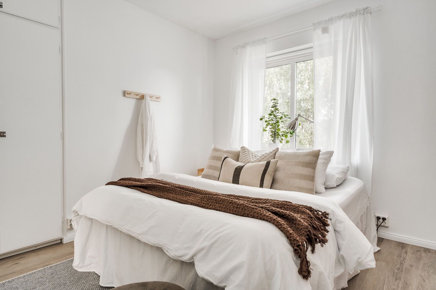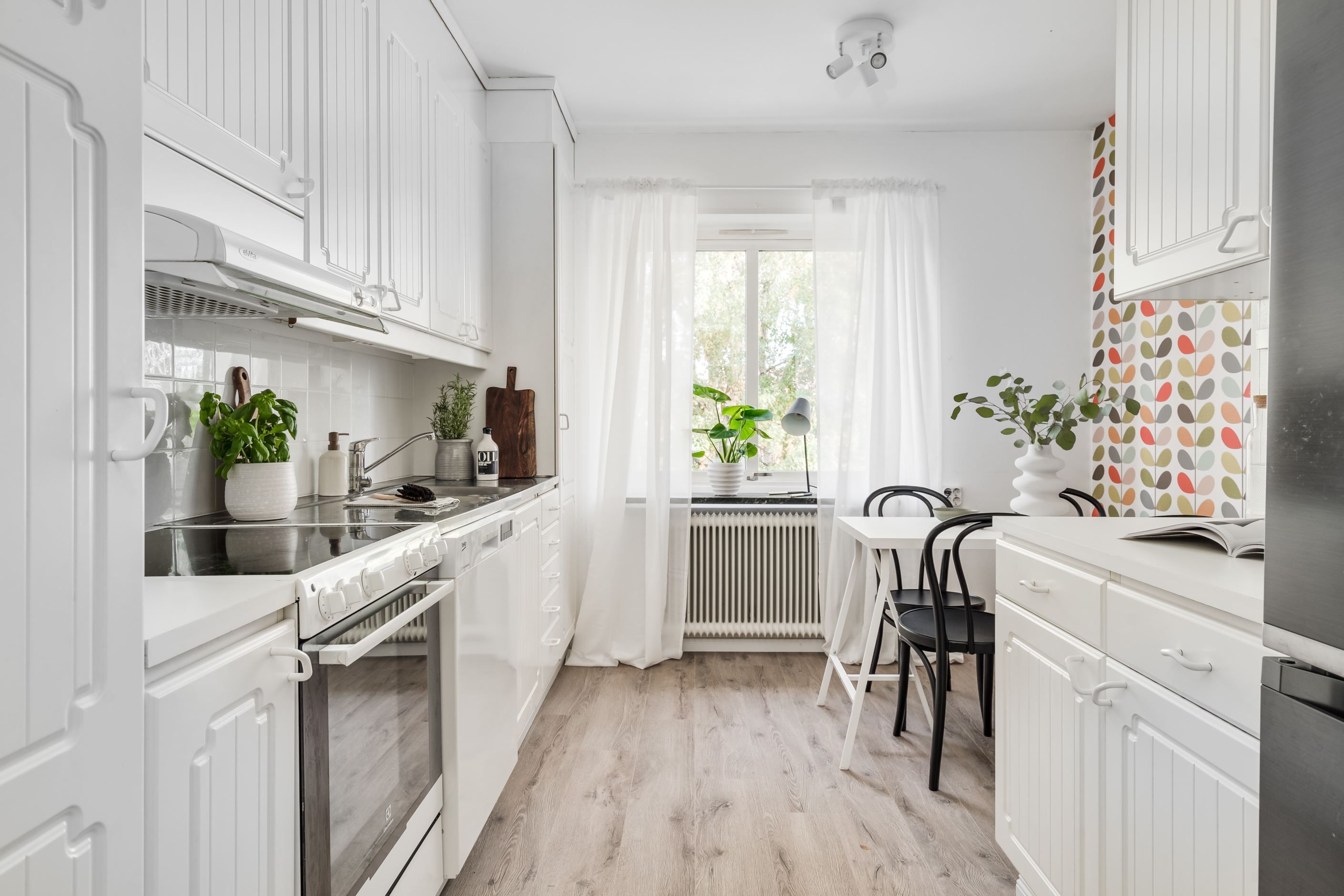 Köket är välbevarat och i gott skick där du med enkelhet kan rymma en matgrupp för 4 personer intill fönsterparti. Vidare finner ni sovrummet som är väl tilltaget och dessutom har bra förvaringsmöjlighet i form av flertalet garderober, här ligger ett smakfullt laminatgolv och väggarna är ljusa och fönster vetter mot öst.