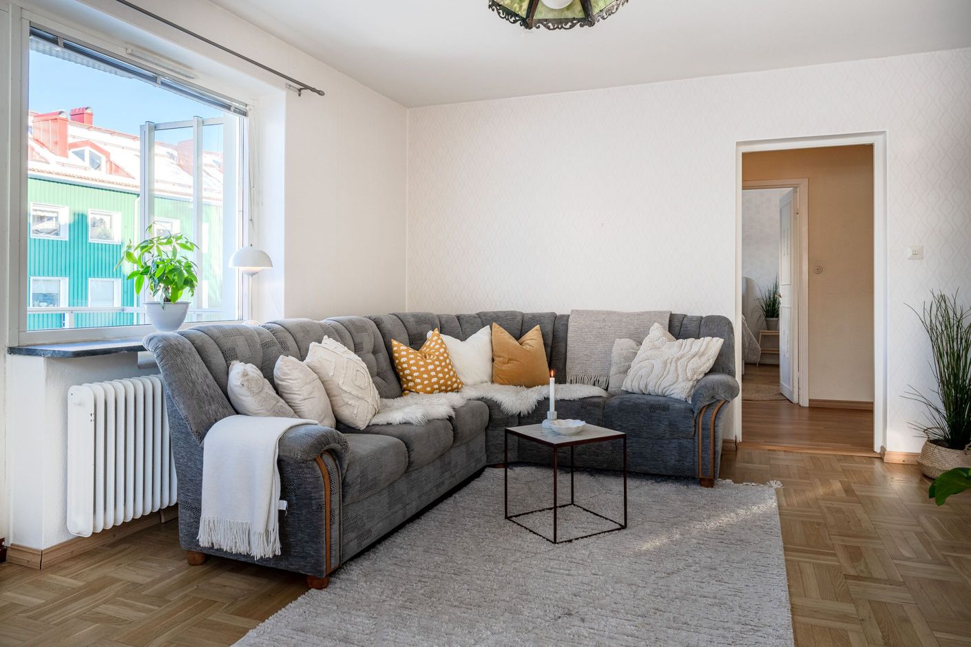 Välkommen till denna charmiga och ljusa gavellägenhet om ca 55 kvm, belägen endast några få trappsteg upp, med ett insynsskyddat och trivsamt läge.