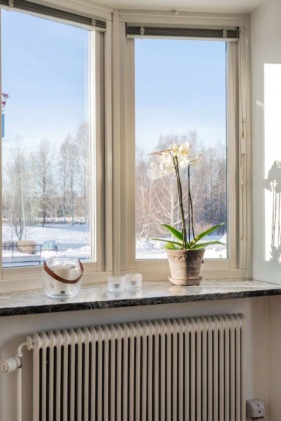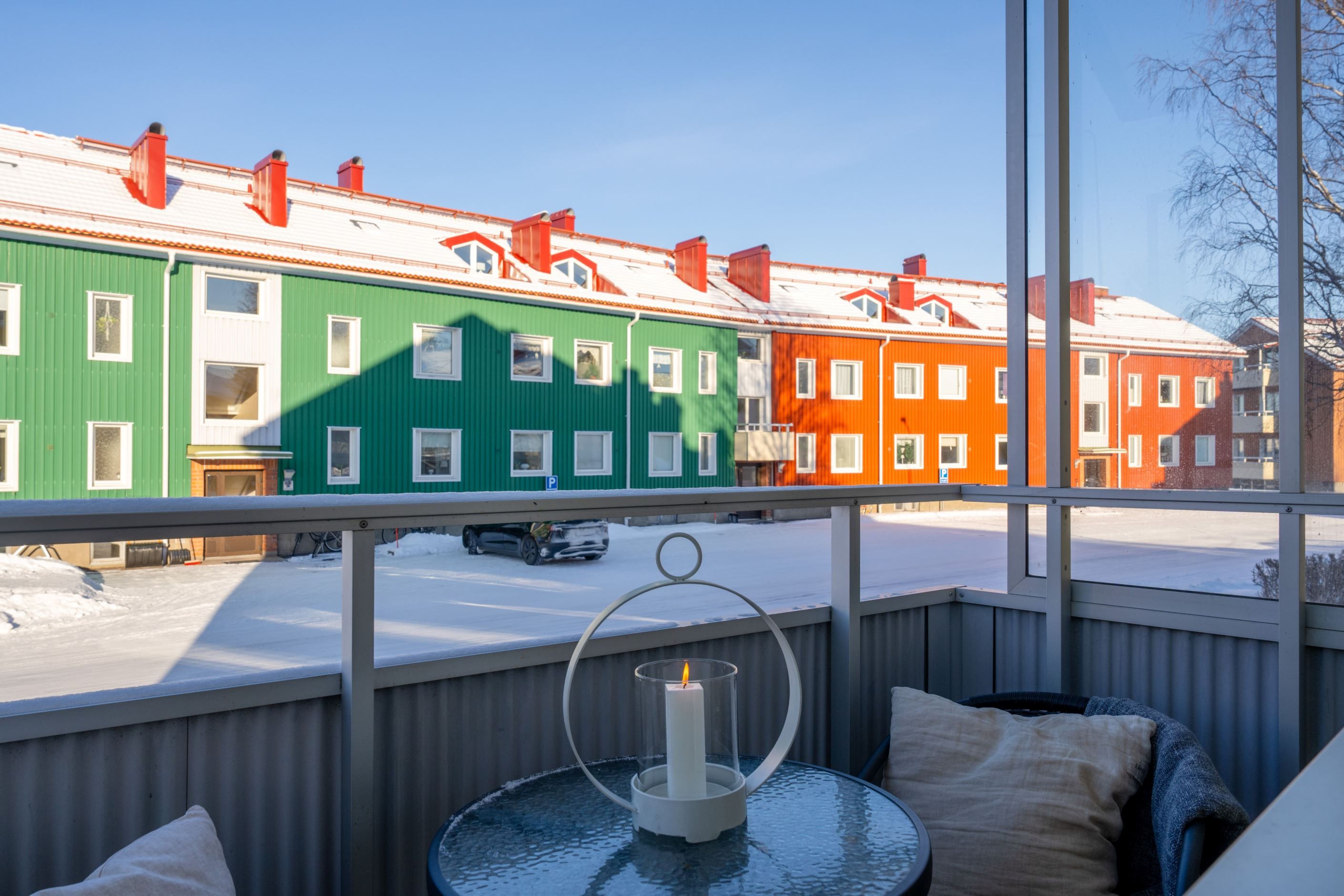 Planlösningen är väl disponerad med ett rymligt vardagsrum, separat kök med matplats, rogivande sovrum samt badrum. De stora fönsterpartierna ger ett genomgående ljust intryck och förstärker känslan av rymd.