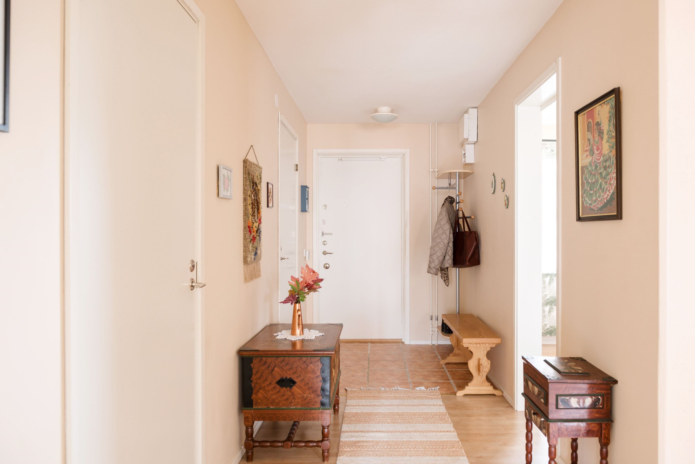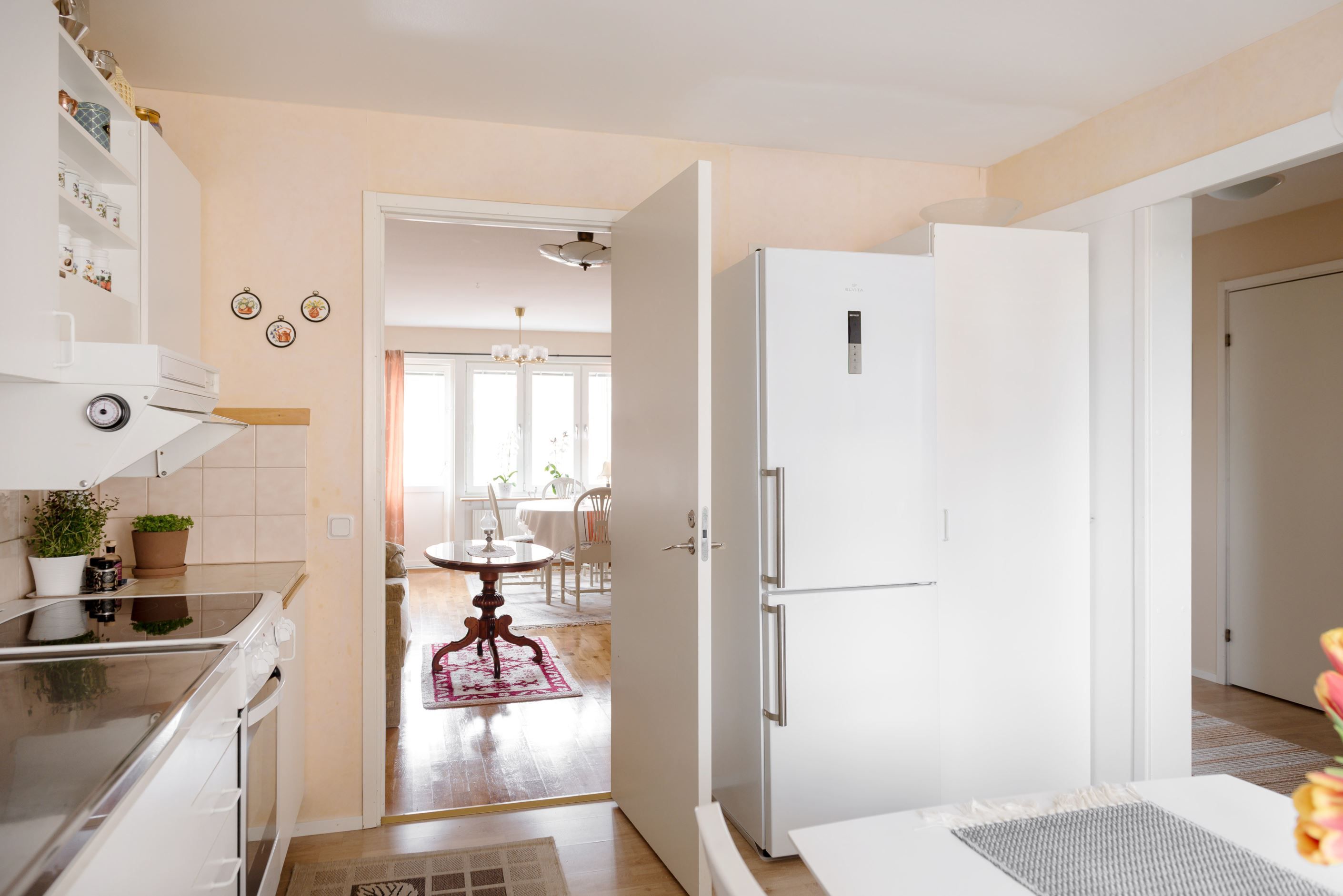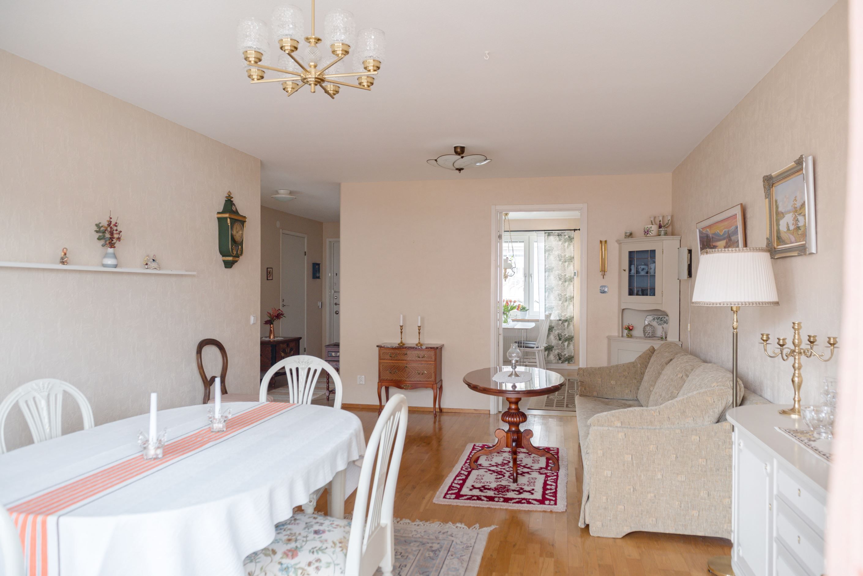 Bostaden erbjuder en genomtänkt planlösning med ljusa och luftiga ytor där varje kvadratmeter tas tillvara. Här möts du av ett hemtrevligt vardagsrum med fint ljusinsläpp och plats för både soffgrupp och sociala tillställningar. Från vardagsrummet når du den inglasade balkongen – en härlig förlängning av bostaden där du kan njuta av kvällssolen i en rofylld miljö.