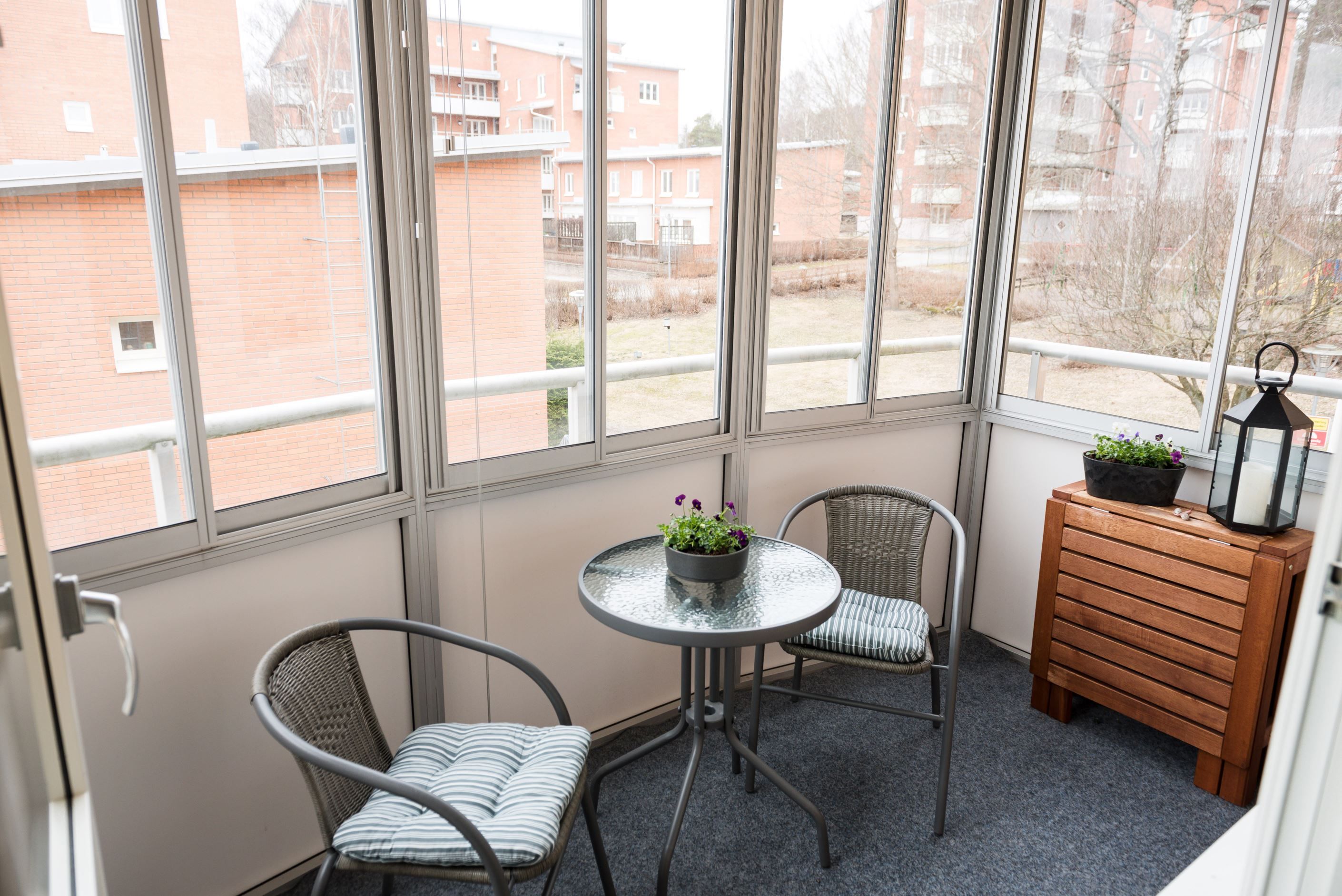 Välplanerad tvåa med inglasad balkong i populära Fanna