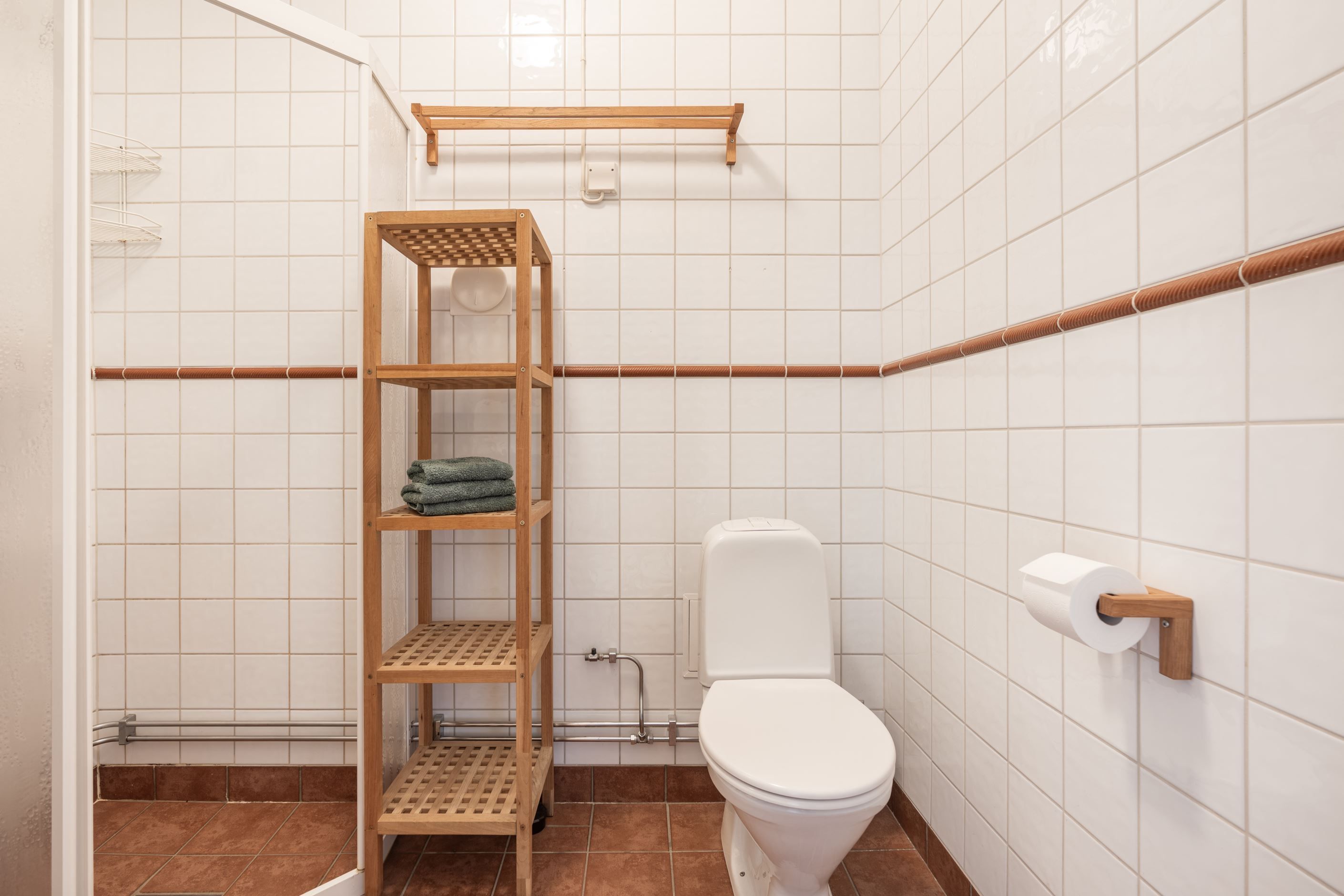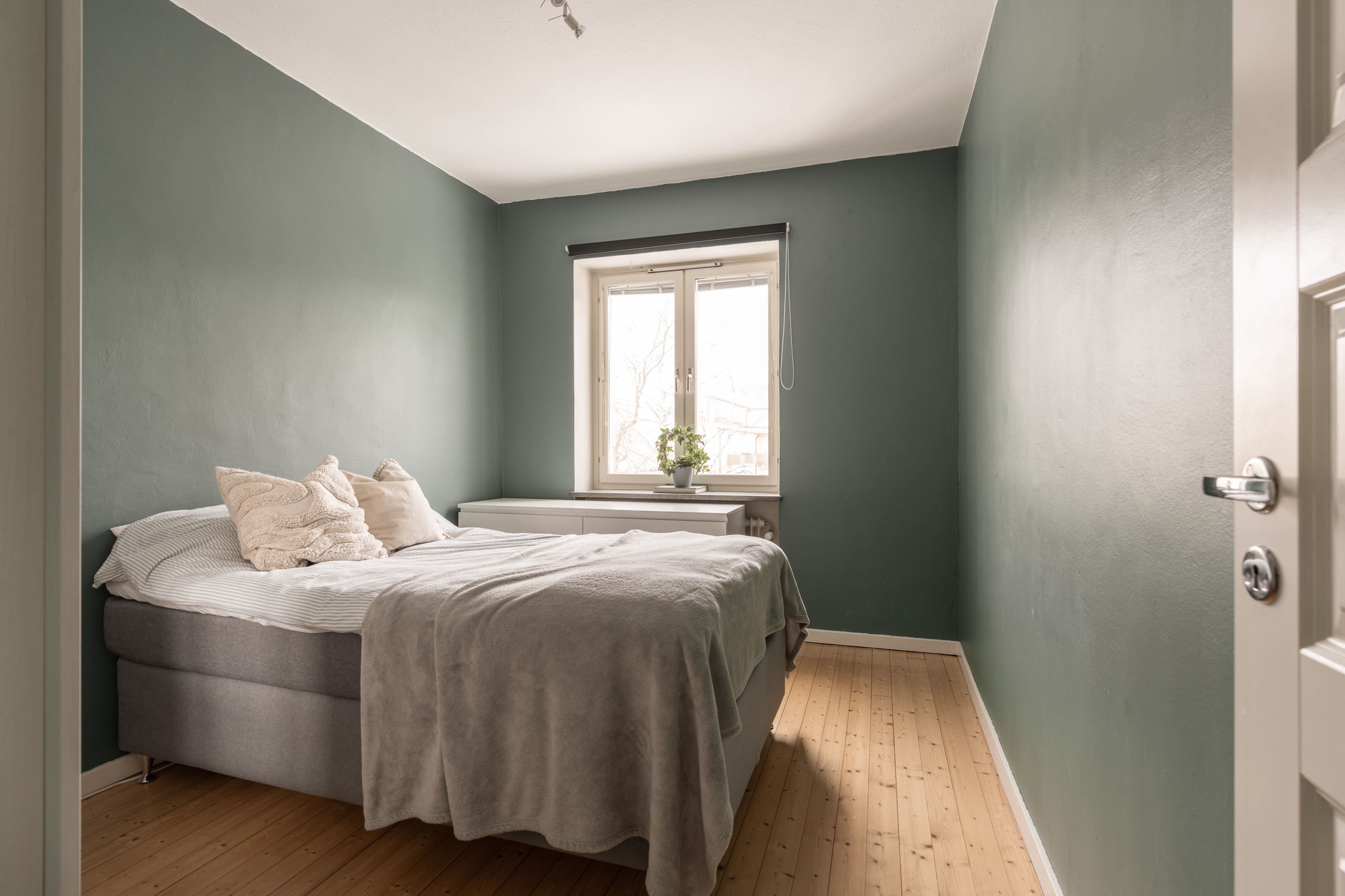 Sovrummet är rofyllt och ombonat. Badrummet är ljust och delvis kaklat och fördraget för tvättmaskin.