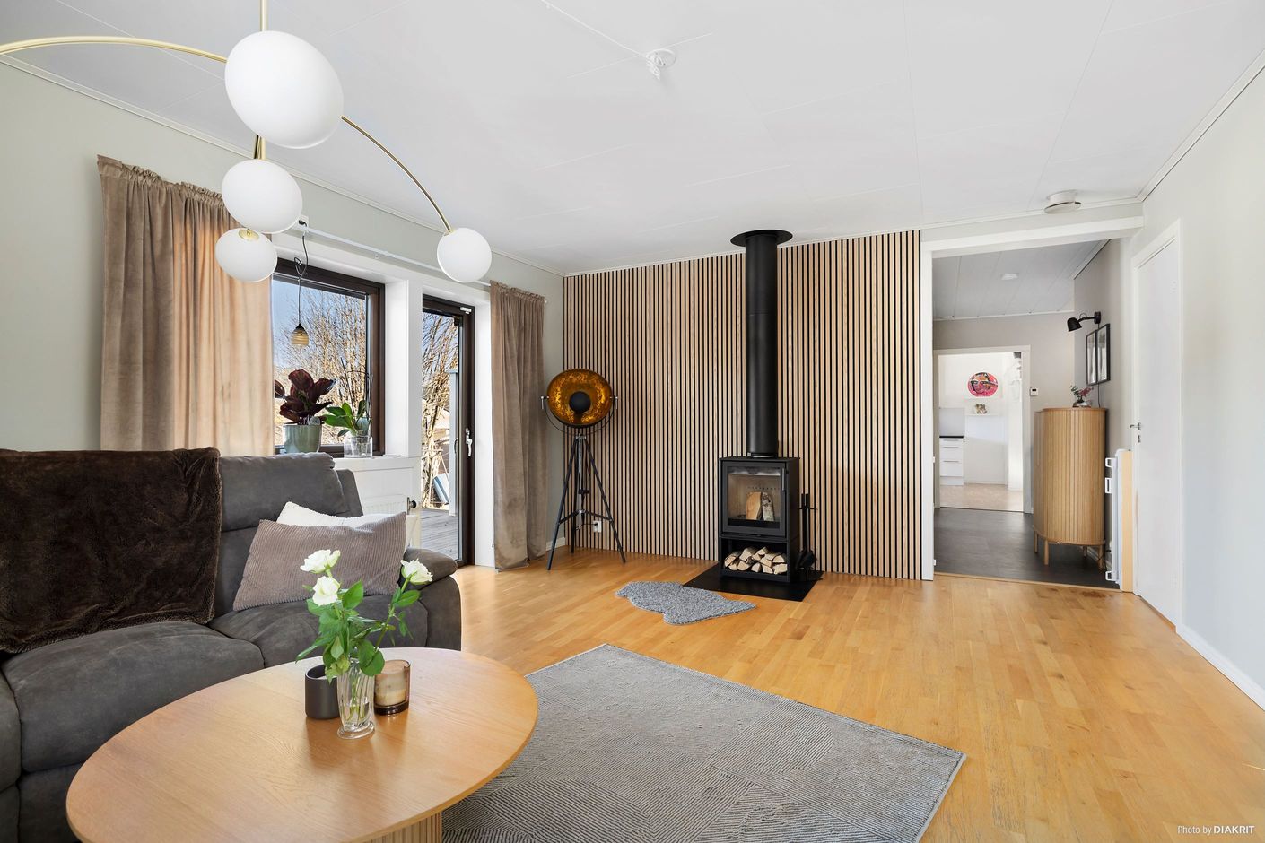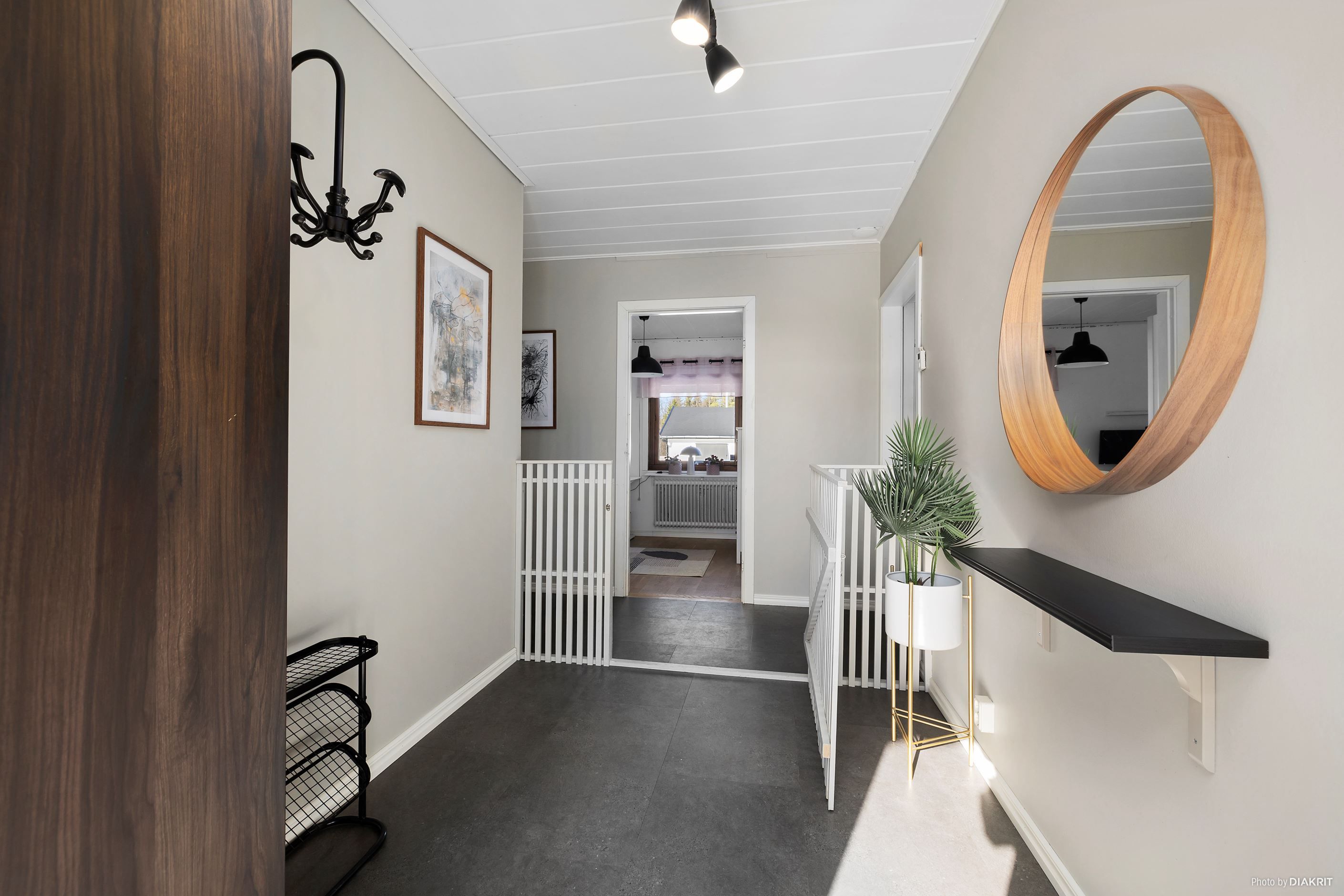 Husets hjärta är det rymliga vardagsrummet, som har en kamin för mysiga kvällar och en utgång till en solig altan i två etager. Köket, som renoverades omkring 2017, har en matplats intill och erbjuder en praktisk yta för både vardagsmatlagning och trevliga middagar. Hallen är utrustad med golvvärme och gott om förvaring, vilket ger ett varmt och välkomnande intryck. Badrummet, som renoverades omkring 2007, är utrustat med dusch, wc och handfat.