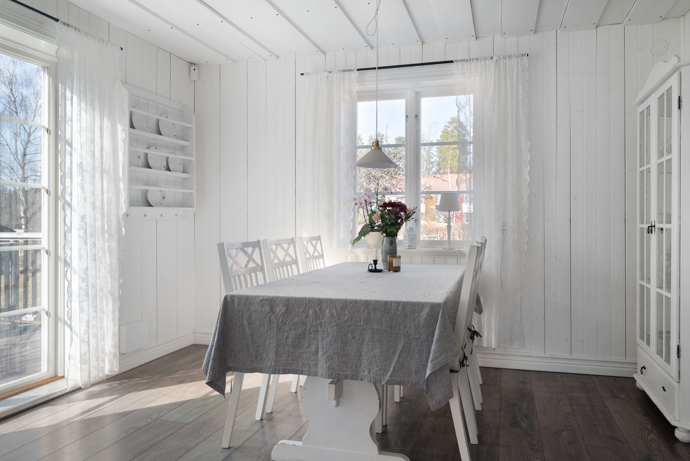 Huset rymmer rymliga sällskapsytor, flera sovrum och gott om plats för både familjeliv och gäster. De stora fönsterpartierna släpper in rikligt med ljus och ger en härlig känsla av rymd. En väl genomtänkt tillbyggnad gjordes i huset för några år sen och öppnar upp mot stor altan och trädgård.
