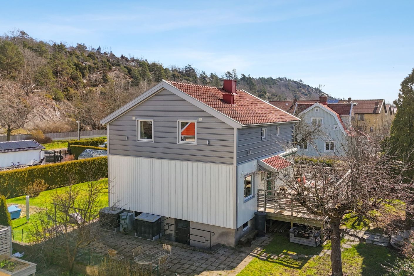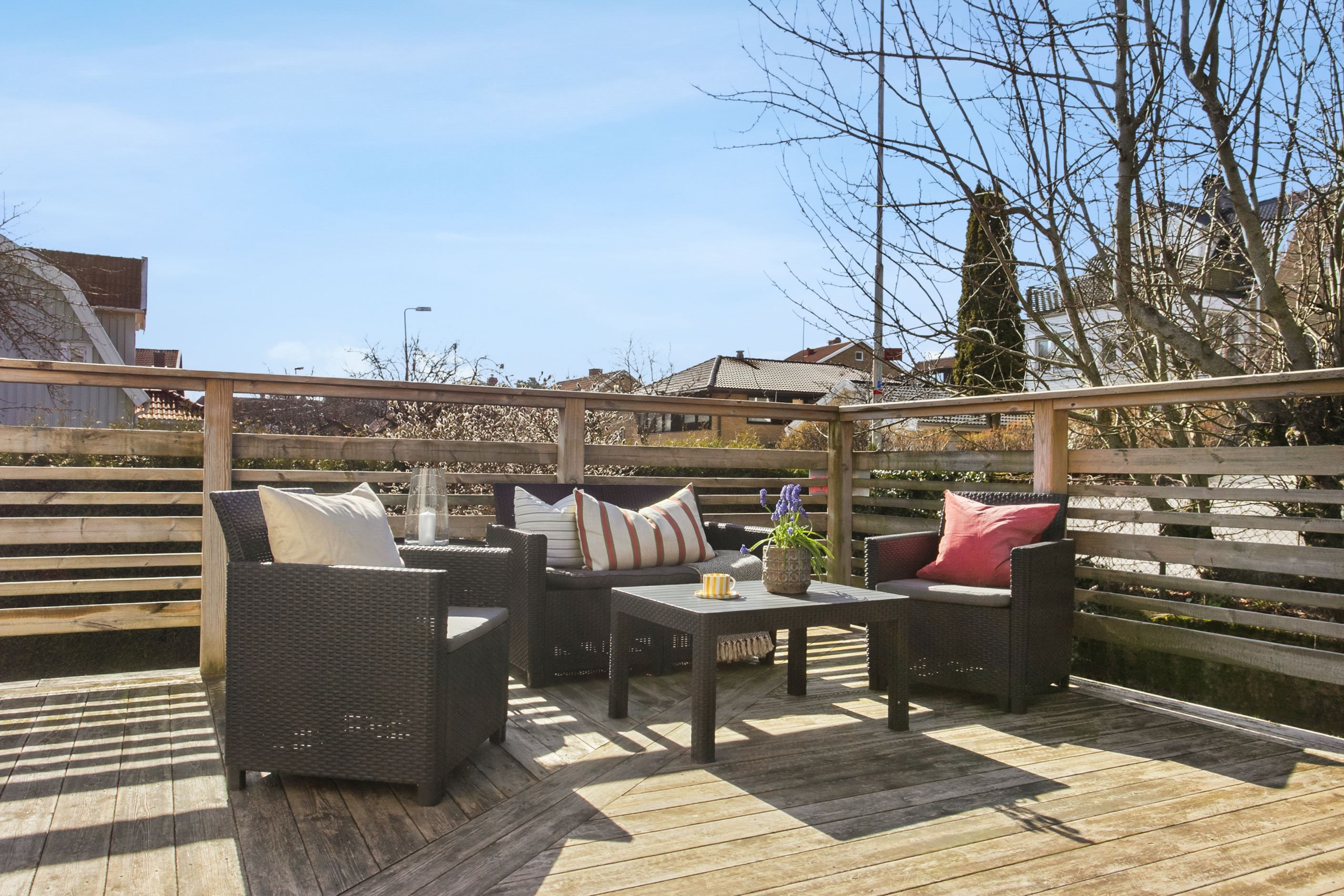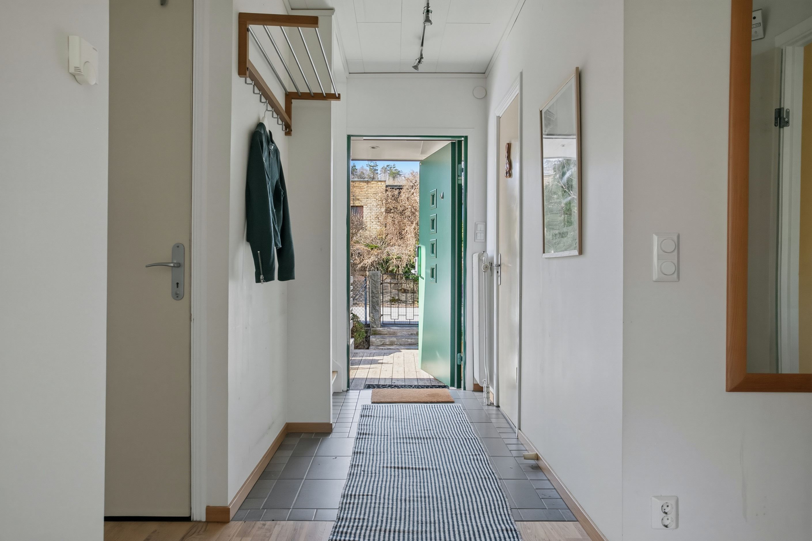 Här bor du i ett stillsamt och grönskande område, med naturen bokstavligen runt knuten och samtidigt nära till stadens bekvämligheter, skolor och kommunikationer. Ett hem som erbjuder både rymd, möjligheter och ett attraktivt läge. Tänk att du kan promenera eller cykla in till Göteborg härifrån!
