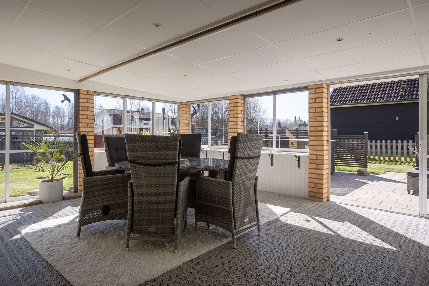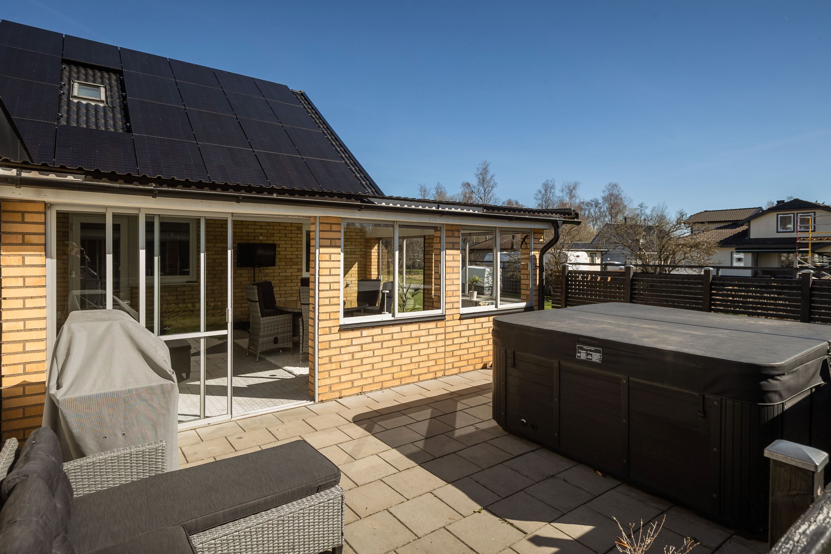 Förutom trivsamma sällskapsytor finns och ett stort inglasat uterum och soldäck. Allt sammantaget erbjuder detta hem en behaglig boendemiljö på lugn återvändsgata i en av Skillingaryds mest populära områden. Trädgården med hörntomt är väl tilltagen med plats för både odling och lekyta för de små. Ett optimalt boende för paret eller familjen som önskar ett lugnt område med närhet av natur och grönområden.