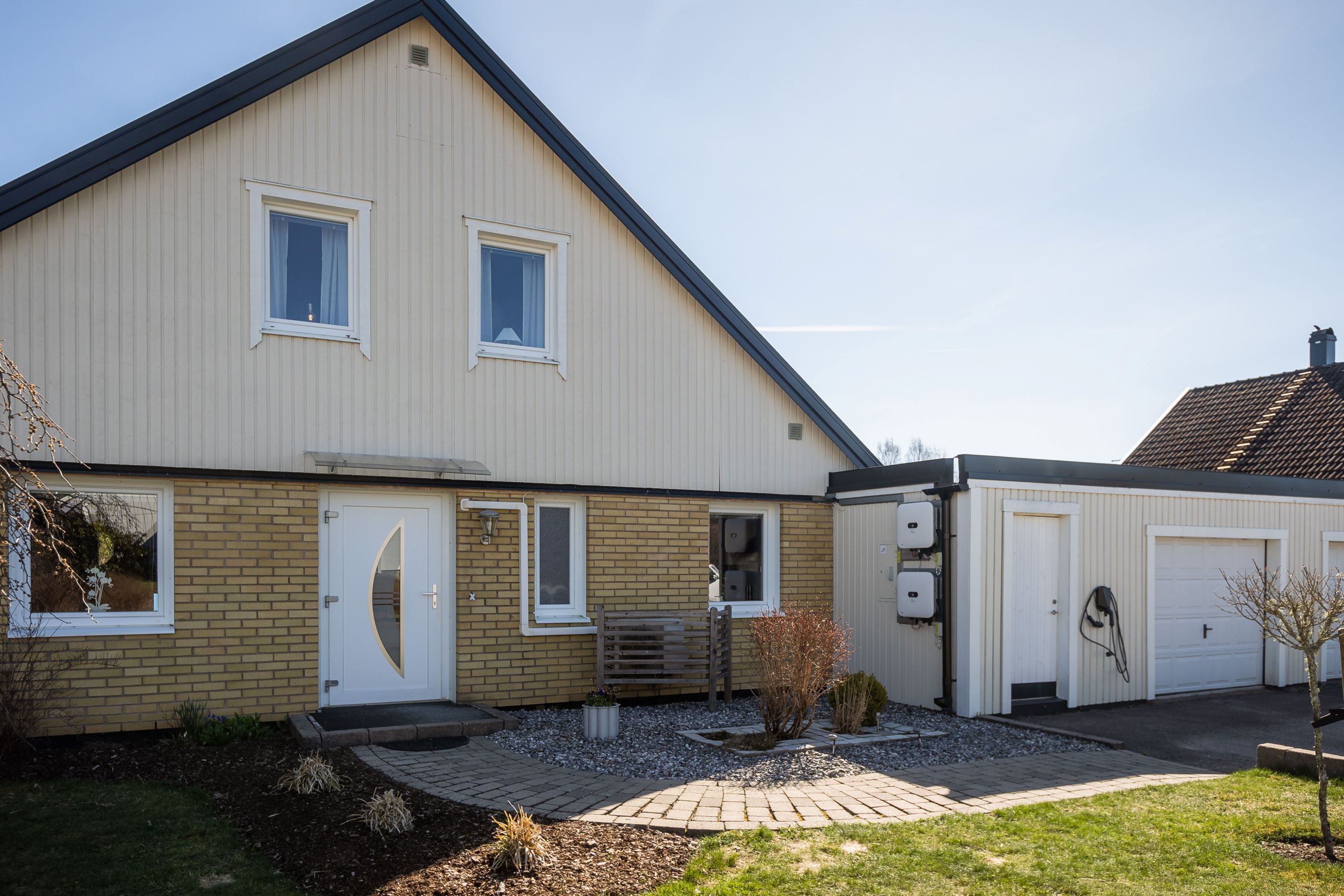 Vidbyggt dubbelgarage med förråd, plan och lättskött trädgård med prydliga stensättningar är självklarheter på denna fastighet, som välkomnar till ett hemtrevligt och bekvämt boende i ett av Skillingaryds mest familjevänliga områden.