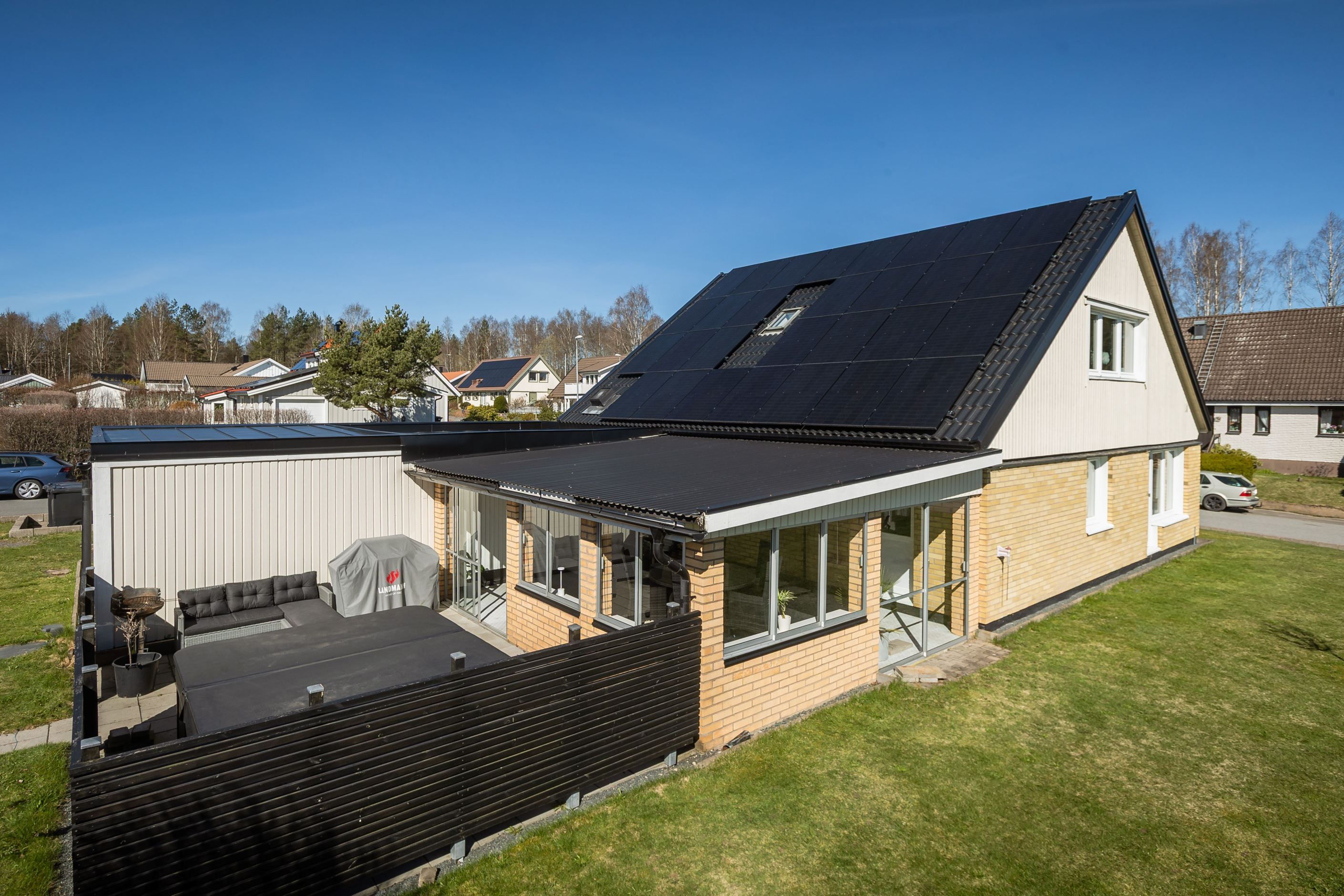 Välkommen till trivsamma Femkampsvägen 42 - Detta familjevänliga hus i ett och ett halvt plan erbjuder ett inflyttningsklart hem där de stora renoveringarna redan är färdiga. Här har en och samma familj vårdat och utvecklat huset under många år, och det märks. Här är alla punkter på önskelistan uppfyllda med bravur. Uppdaterat yttertak och med råspont, fasadbyte, uppdaterade fönster, kök, duschrum, installerad pelletskamin, solceller samt dubbelgarage är bara några av fördelarna. Här varvas trevliga sällskapsytor med praktiska ytor och ett generöst inflöde av ljus. Planlösningen är flexibel och kan anpassas efter behov med exempelvis tre till fem sovrum och dubbla sällskapsrum.
