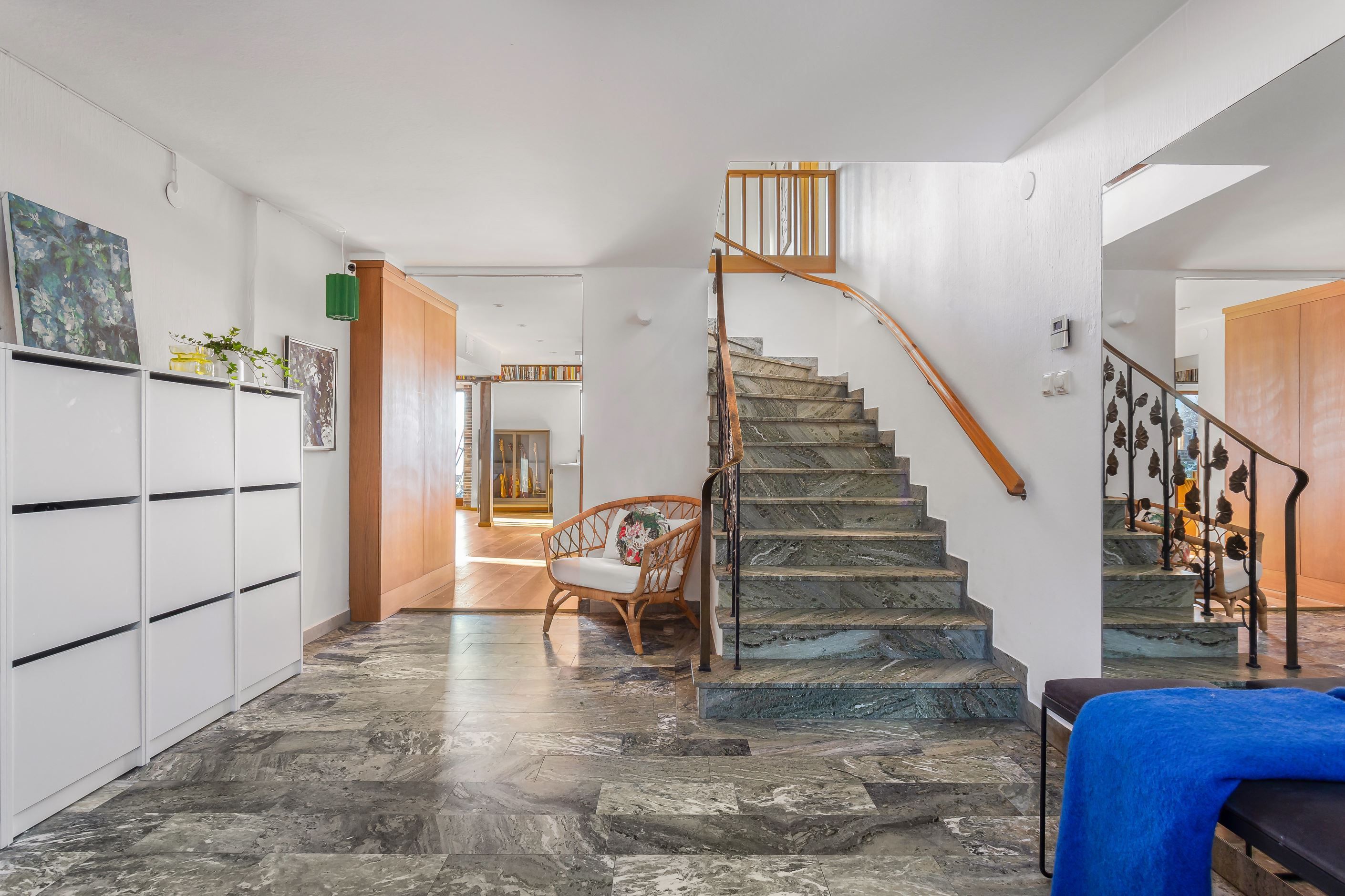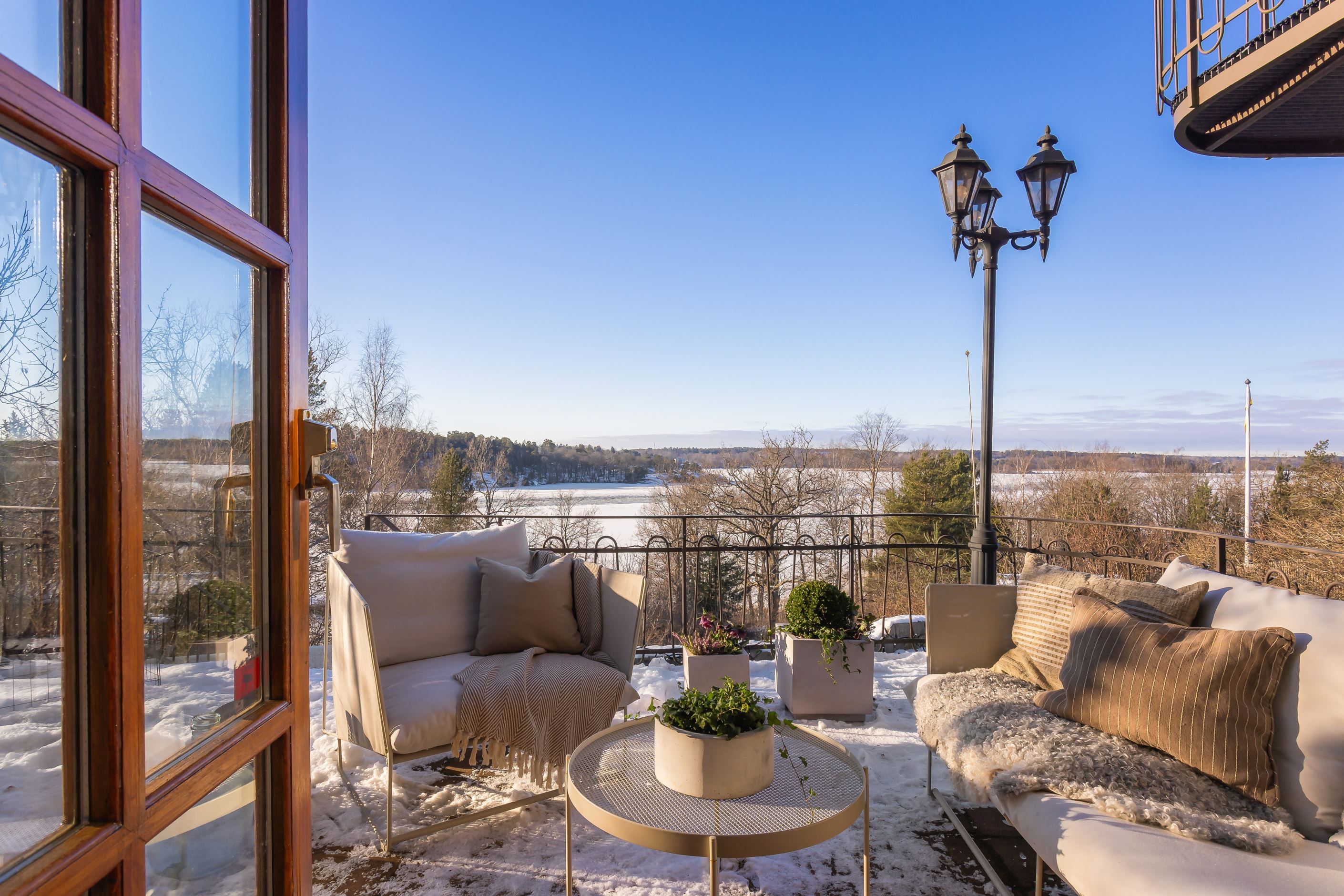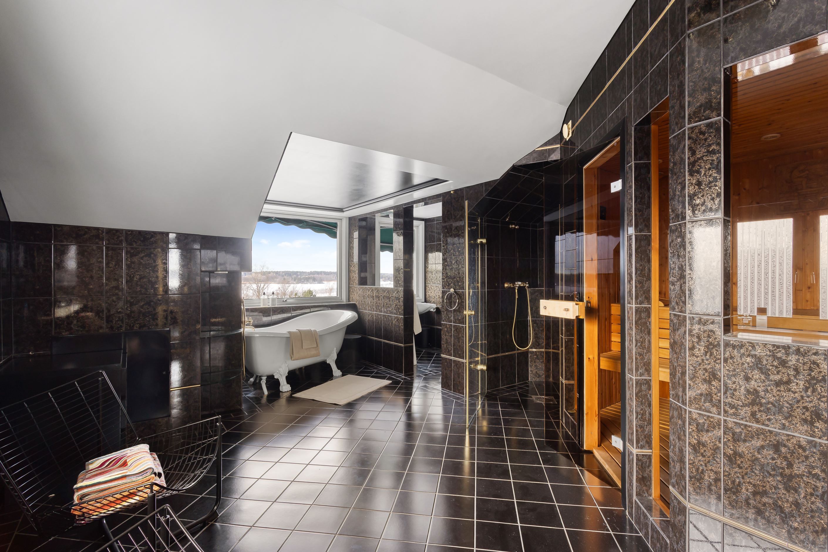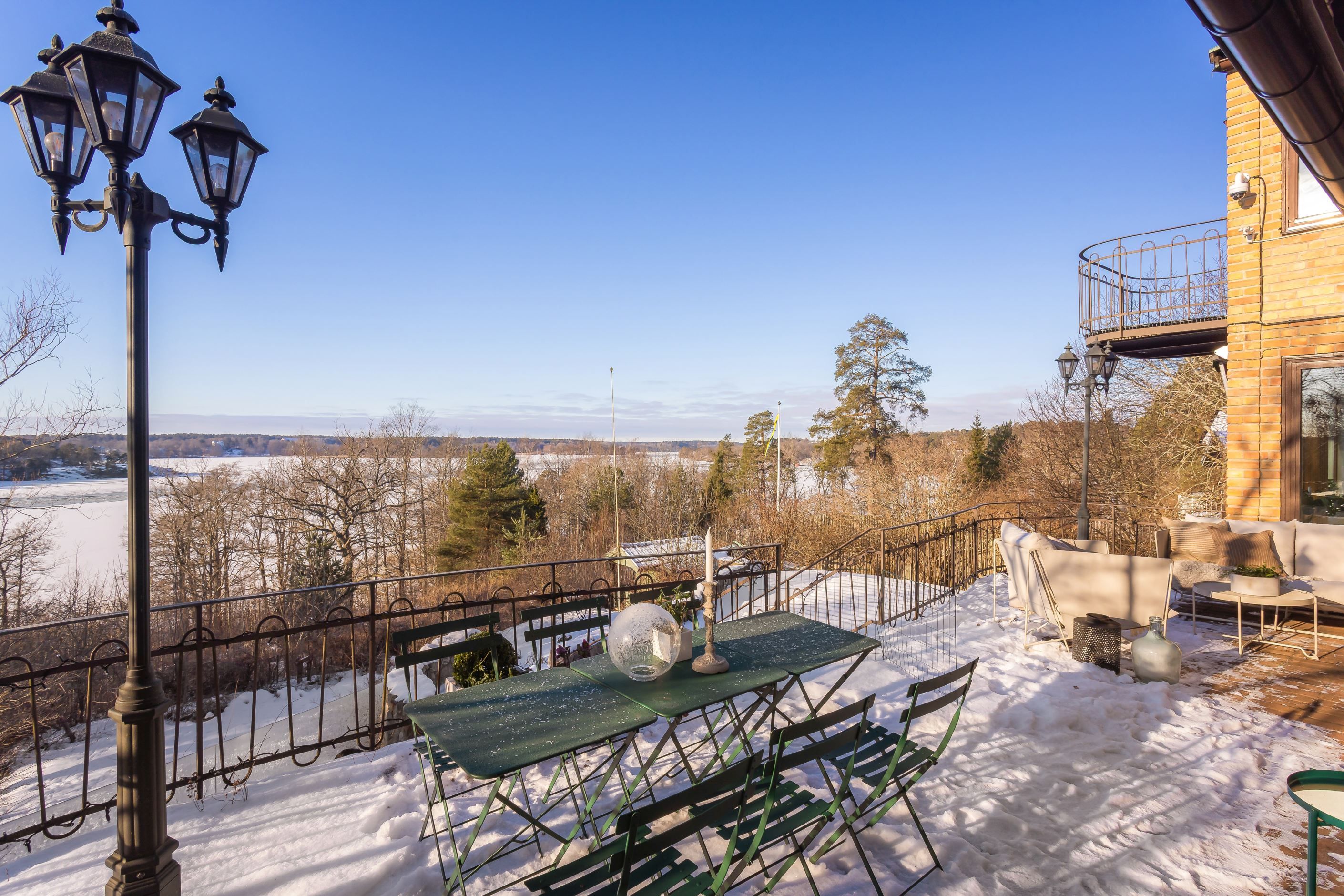 Interiört låter sig huset svårligen beskrivas i text - en villa som ska upplevas på plats. Boendet är fördelat över tre luftiga plan som erbjuder allt familjen kan önska sig. Spatiösa sällskapsytor med utgång till soldränkta altaner i S/V med strålande Mälarvy. Påkostade kök, där en extra köksdel byggts för att möjliggöra generationsboende samt skapa en smidig vardag. Åtta sovrum samt våtrum på alla tre plan, där vindsplanet erbjuder ett SPA-liknande badrum med bastu samt badkar med fri sjövy. Härlig kontakt med tomt och grönska samt fint anlagda uteplatser för att maximalt kunna njuta av villaboendets alla kvaliteter. Gott om plats för bilar på tomten.