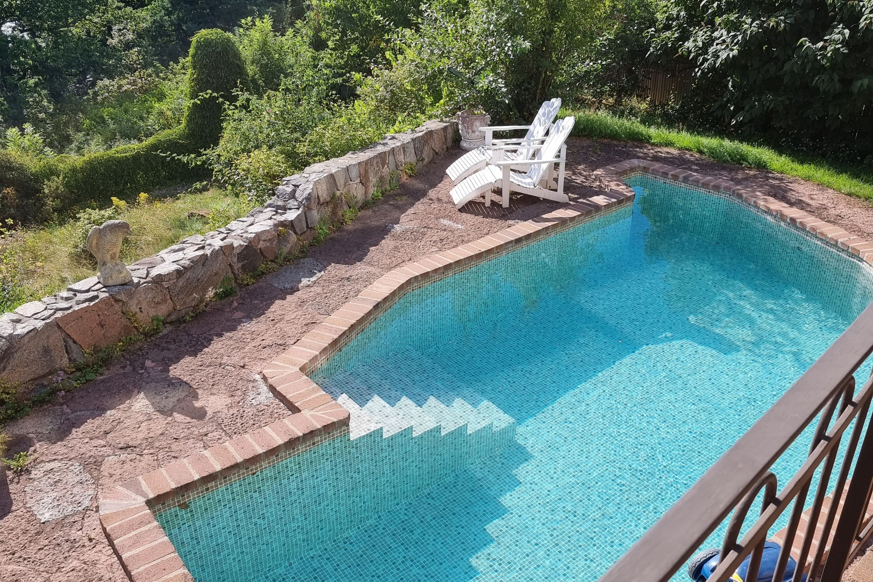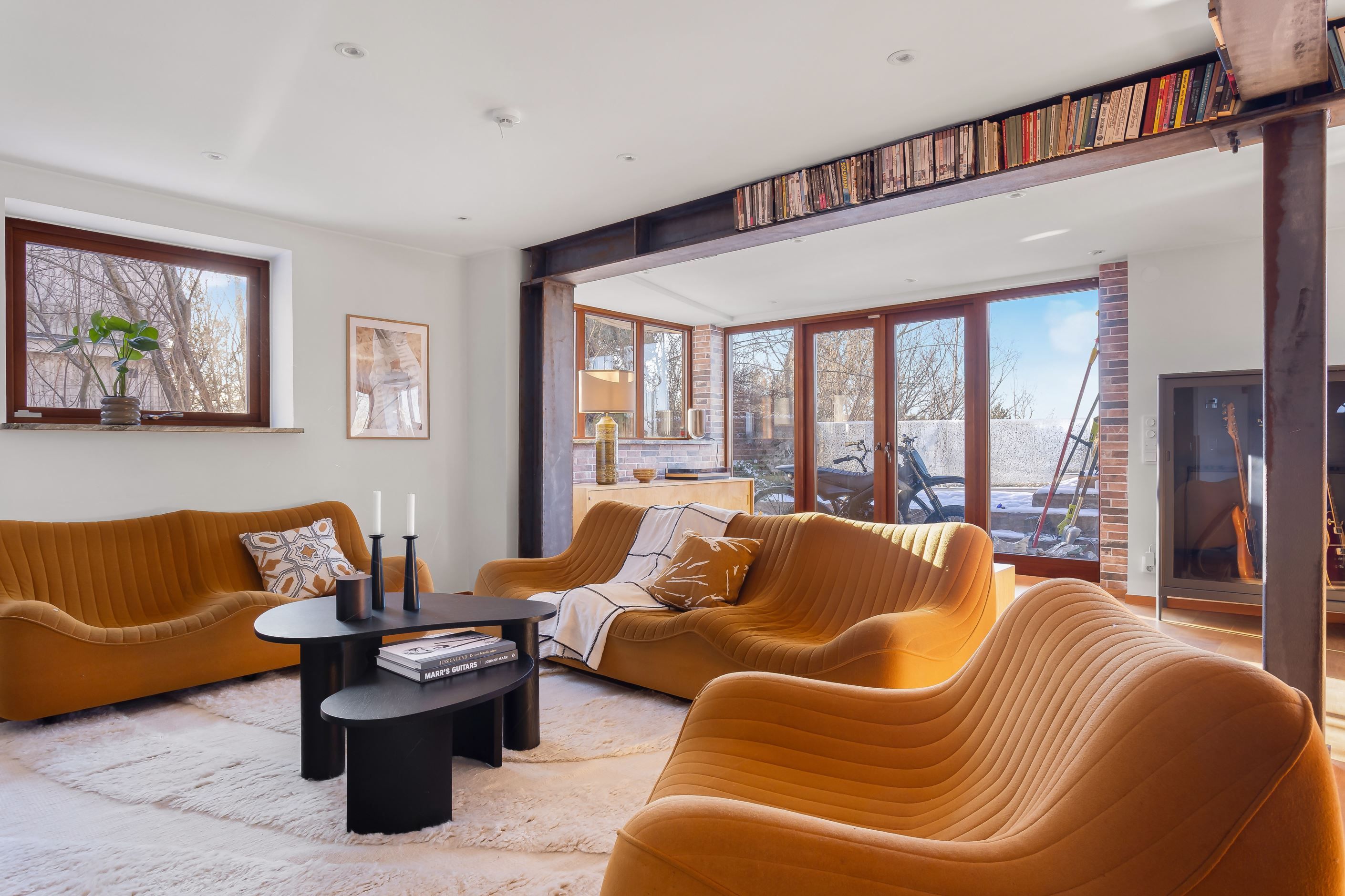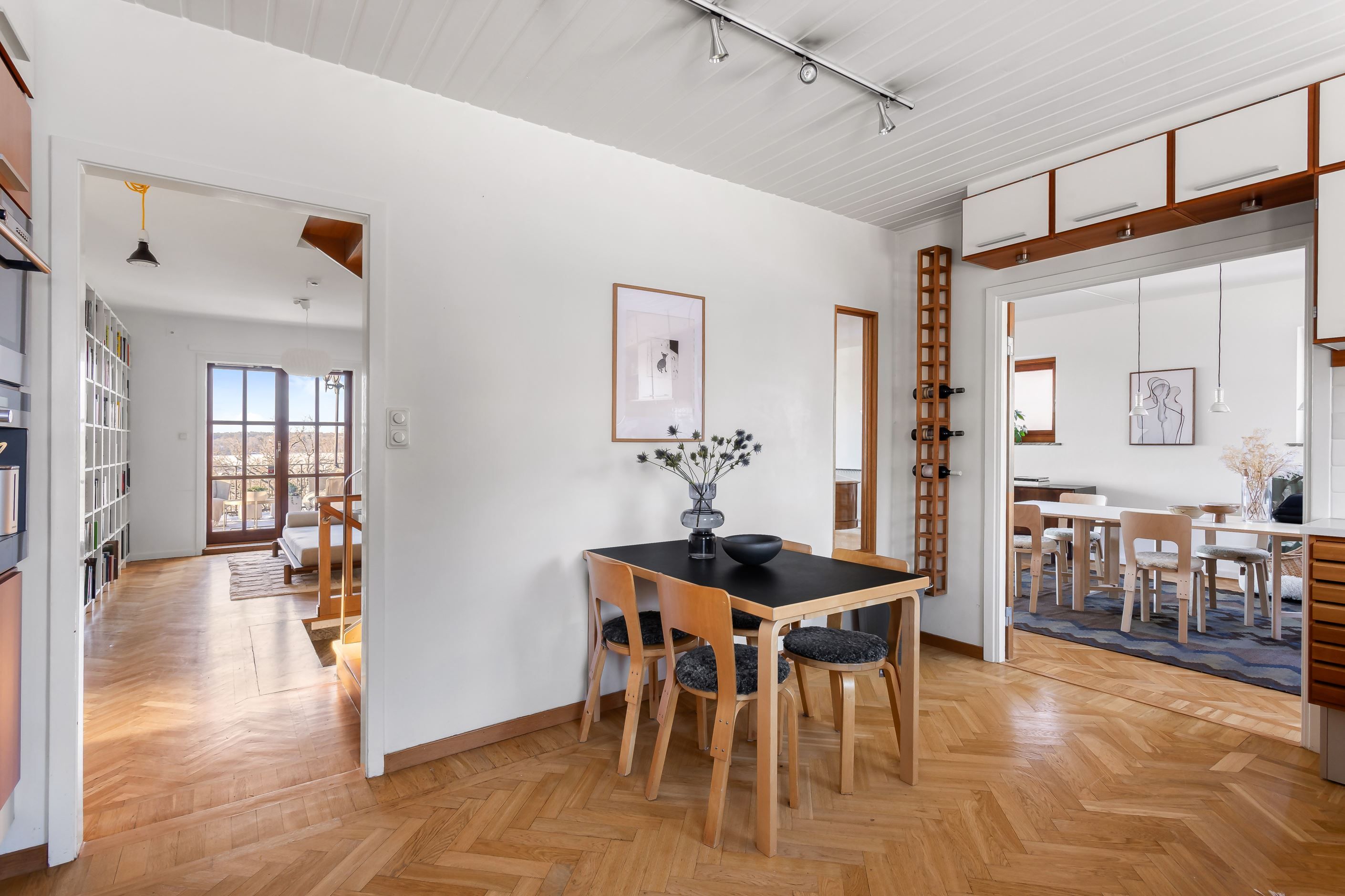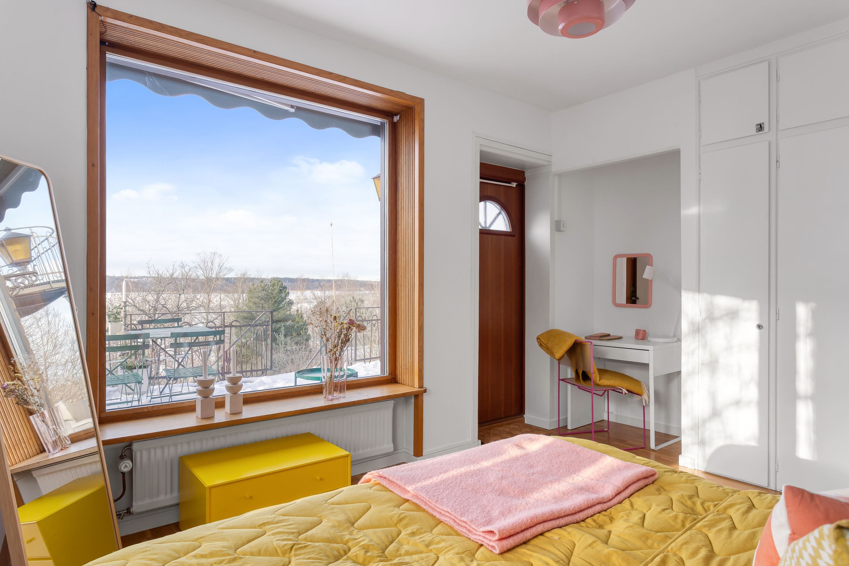 Gedigen villa med "strandtomtsatmosfär" och endast någon minuts gångväg, över tomt och allmänning, ner till strandkant samt gemensam brygga. Naturskönt och skyddat Mälarläge med frodig grönska och fin sjökontakt från såväl trädgård, uteplatser som husets storslagna interiör. Spektakulär 40-talsarkitektur - något utöver det vanliga. En förstklassig och genomtänkt boendemiljö, tot. ca 400 kvm, med ljus och luftig planlösning samt generösa fönsterpartier mot den glittrande fjärden. Stora soldränkta altaner i sydväst med underbara solnedgångar över vattnet. Från nedre altanen leder trappa ner till den terrasserade lättskötta tomten - ett trivsamt sätt att binda samman hus med trädgård. Pool som med sitt stensatta pooldäck av tidstrogen Ölandssten samt tilltalande form adderar ytterligare livskvalitet - ett "smycke" i trädgården.