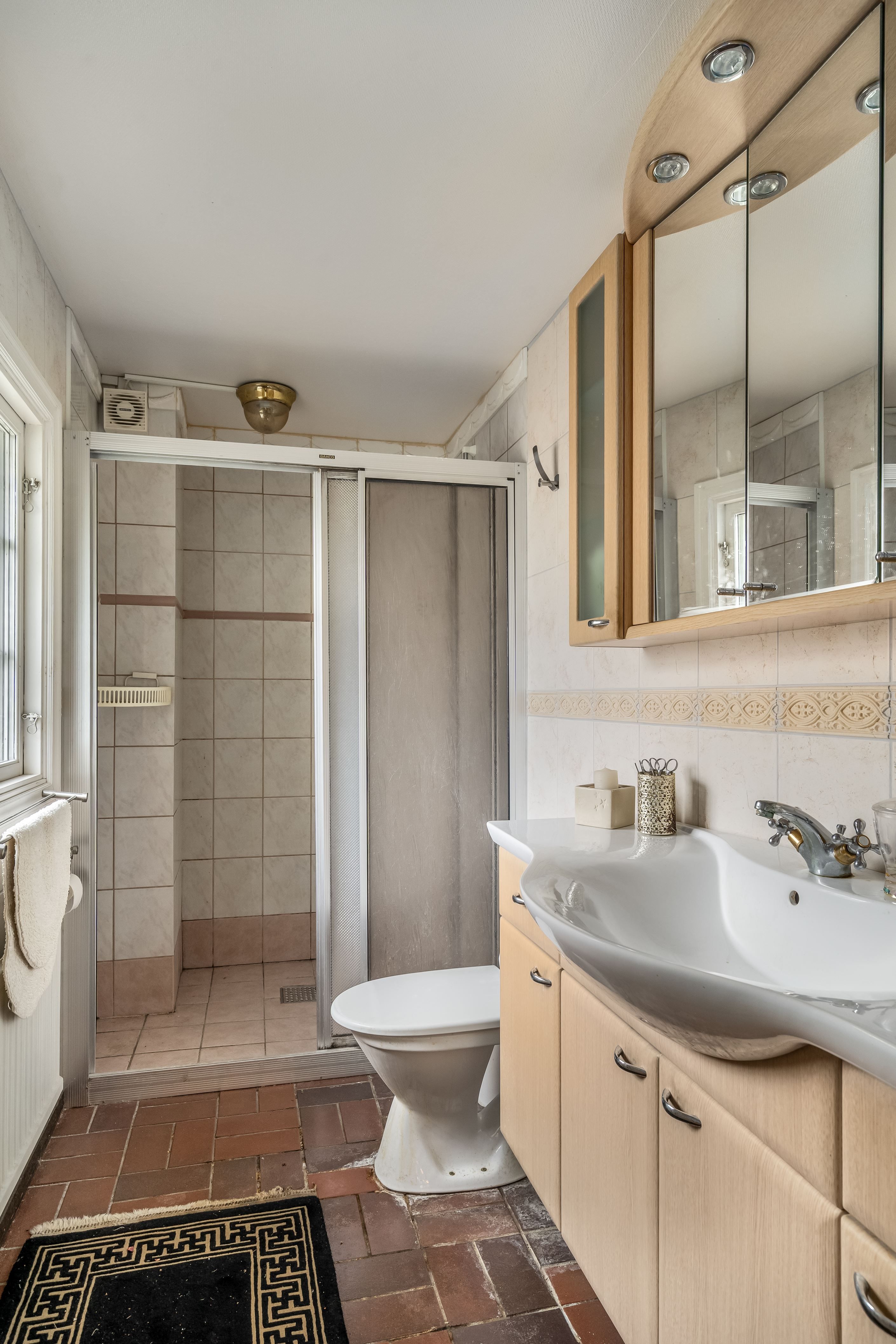 Planlösningen erbjuder möjlighet till badrum på samtliga våningsplan, vilket skapar stor flexibilitet för den växande familjen eller för dig som ofta har gäster. Från flera dubbeldörrar nås den stenlagda uteplatsen i soligt söderläge – en perfekt plats för långa sommarkvällar, middagar och umgänge i solen.