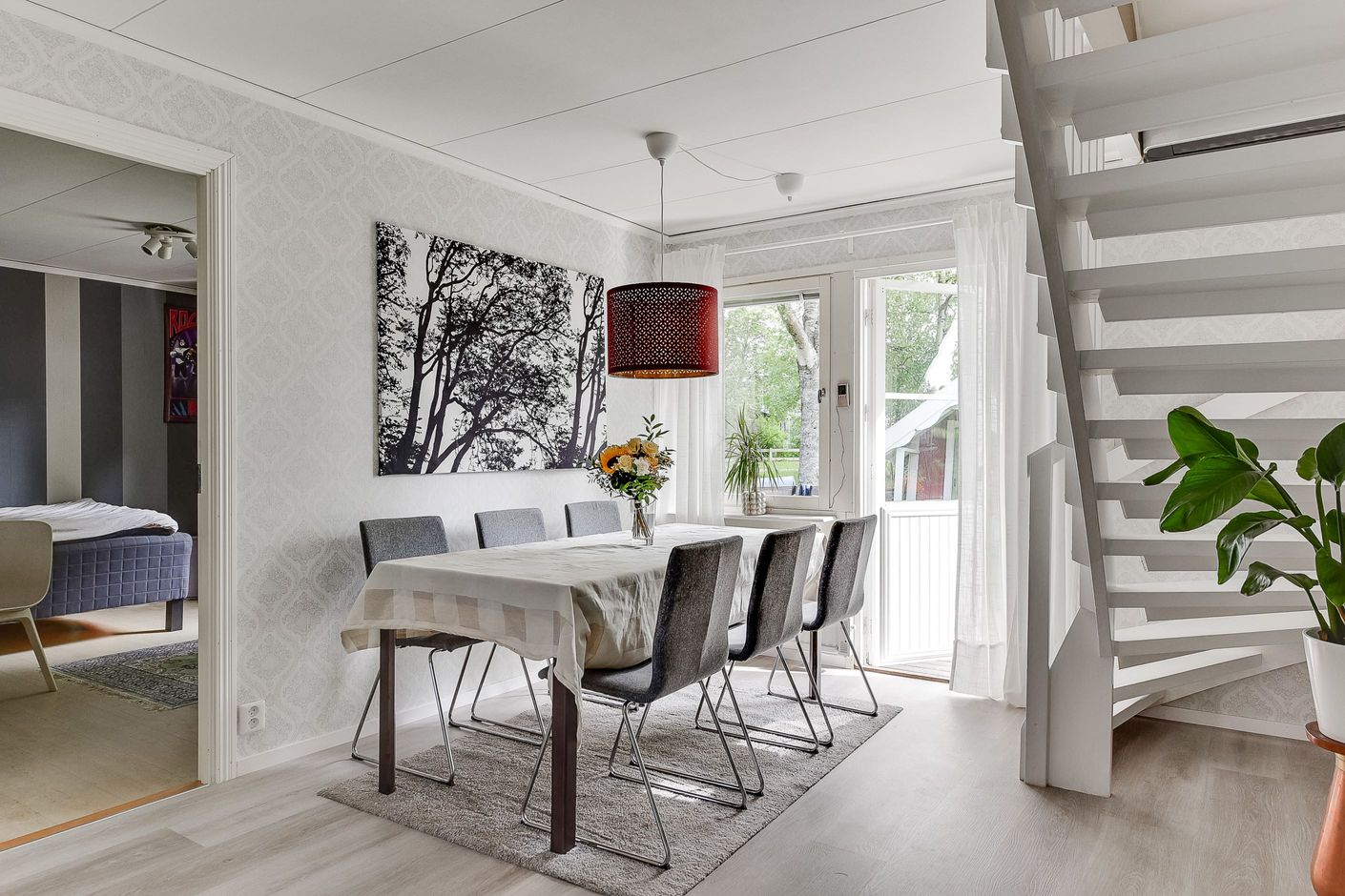 Välkommen till Fiskestigen 5 – ett rymligt och trivsamt 1½-plans radhus med fint läge i en lugn och omtyckt del av Holmsund. Här bor du med både skogspartier och havet inom bekvämt räckhåll, i ett område som passar perfekt för familjelivet med närhet till skola, förskola, natur och goda kommunikationer in till Umeå.