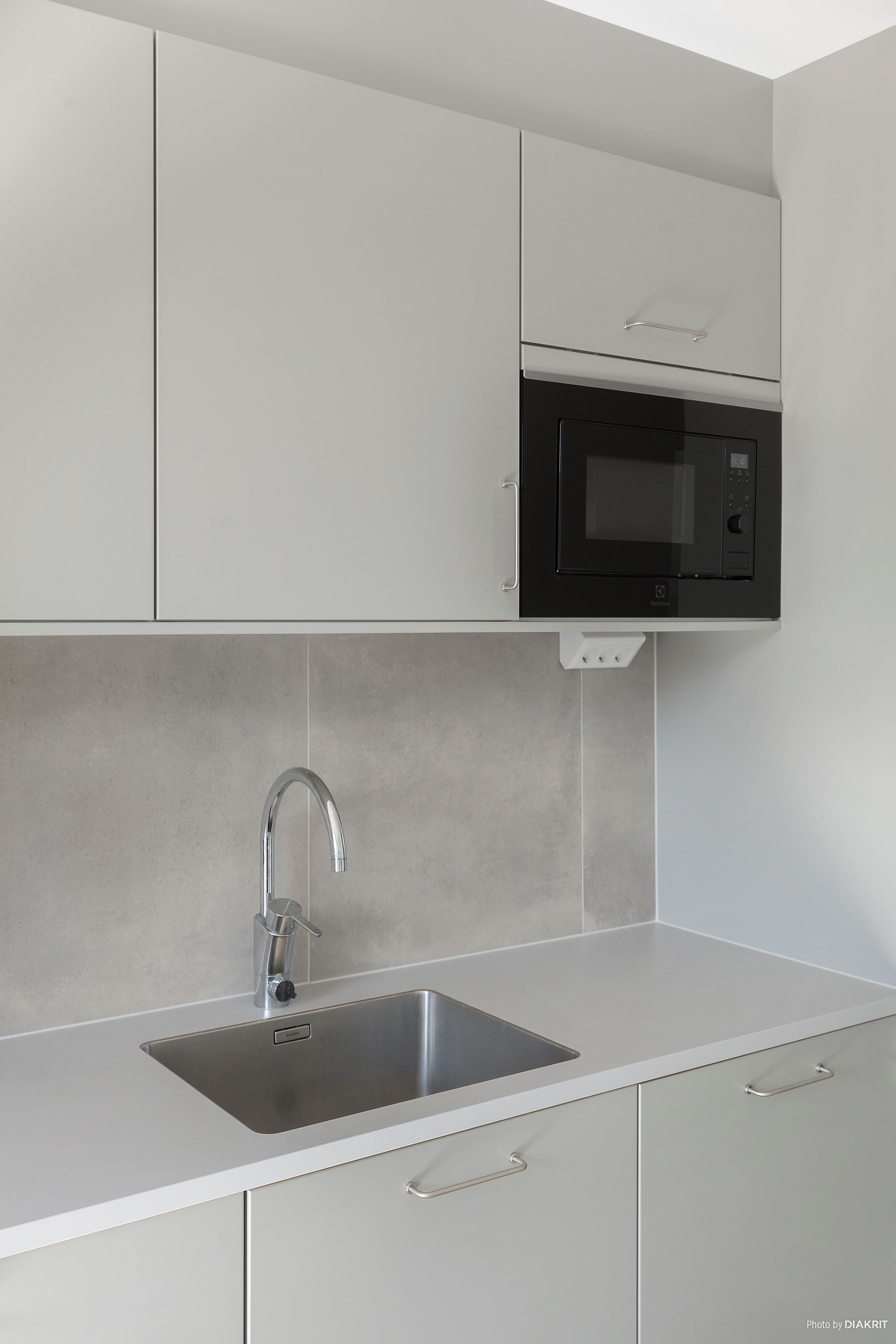 Perfekt planerad lägenhet med två bra sovrum och öppen sällskapsyta med fönster i flera väderstreck. Det trevliga köket med matplats har högskåp med ugn och mikrovågsugn. Övrig maskinell utrustning: Spishäll, diskmaskin samt kyl och frys. Allt från Elektrolux. I lägenheten finns även bra förvaring i ett förråd samt bl a praktisk skjutdörrsgarderob i master bedroom. Stort kaklat badrum med dusch och handdukstork samt kombitvättmaskin med torktumlare.
