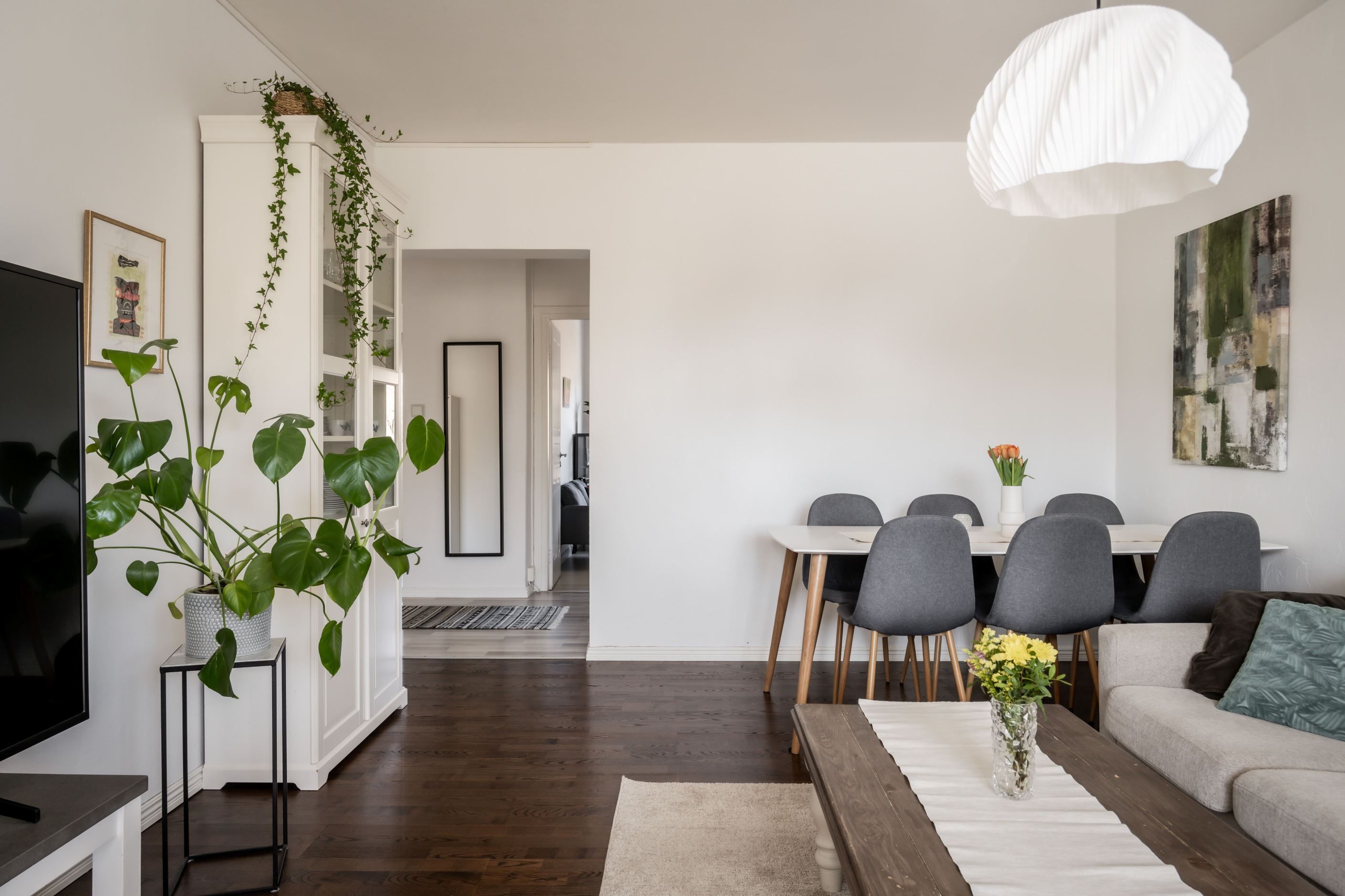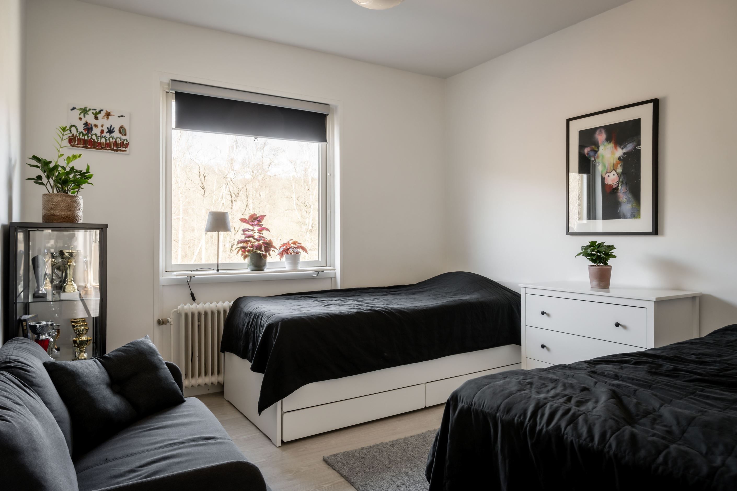 Lägenheten erbjuder två rymliga sovrum, ett trevligt kök, helkaklat badrum och ett härligt vardagsrum med utgång till den inglasade balkongen som blir som en förlängning av rummet. Med ett högt och fritt läge får du solsken hela dagen. Dessutom är det privat och skönt utan något hus mitt emot.