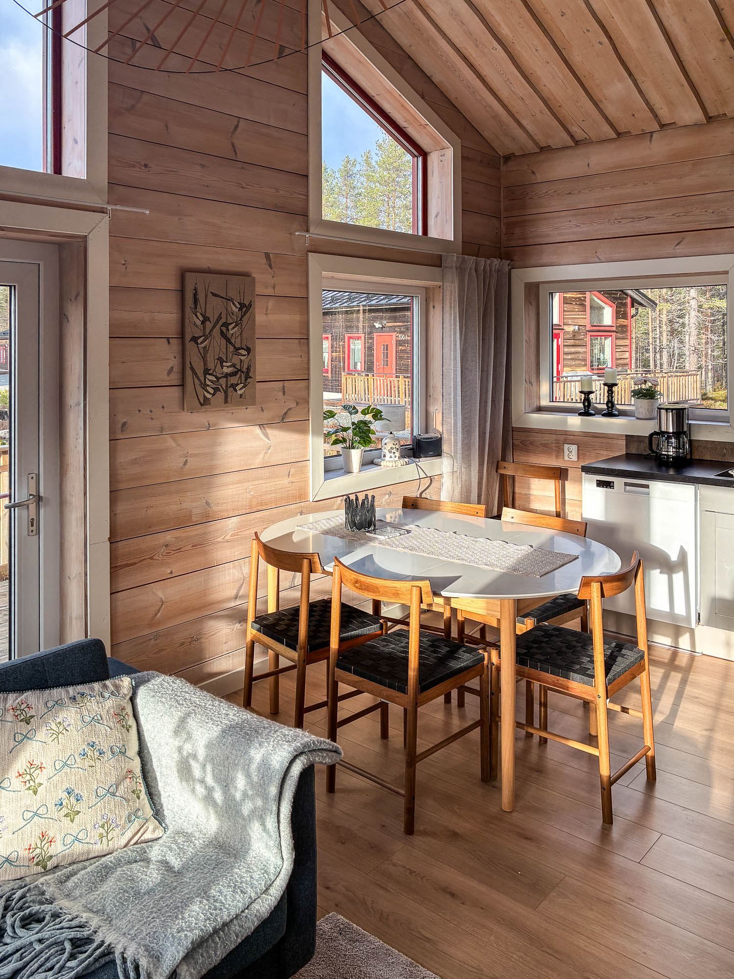 Här möts ni av ett välplanerat boende med den där extra fjällkänslan. Bostaden har 3 sovrum samt ett loft. Allrummet ligger i öppen planlösning mot köket och skapar en trivsam plats att umgås på efter en dag ute fylld med aktiviteter. Den öppna planlösningen samt att det är öppet hela vägen upp till nock ger en luftig och härlig atmosfär till allrummet. Fönsterpartierna med ljusinsläpp från tre väderstreck ger fint ljus till allrummet och matplatsen. Badrummet är stilrent och här finns även en bastu att värma sig i efter en härlig dag på fjället. I badrummet finns det även tvättmaskin och torktumlare.
