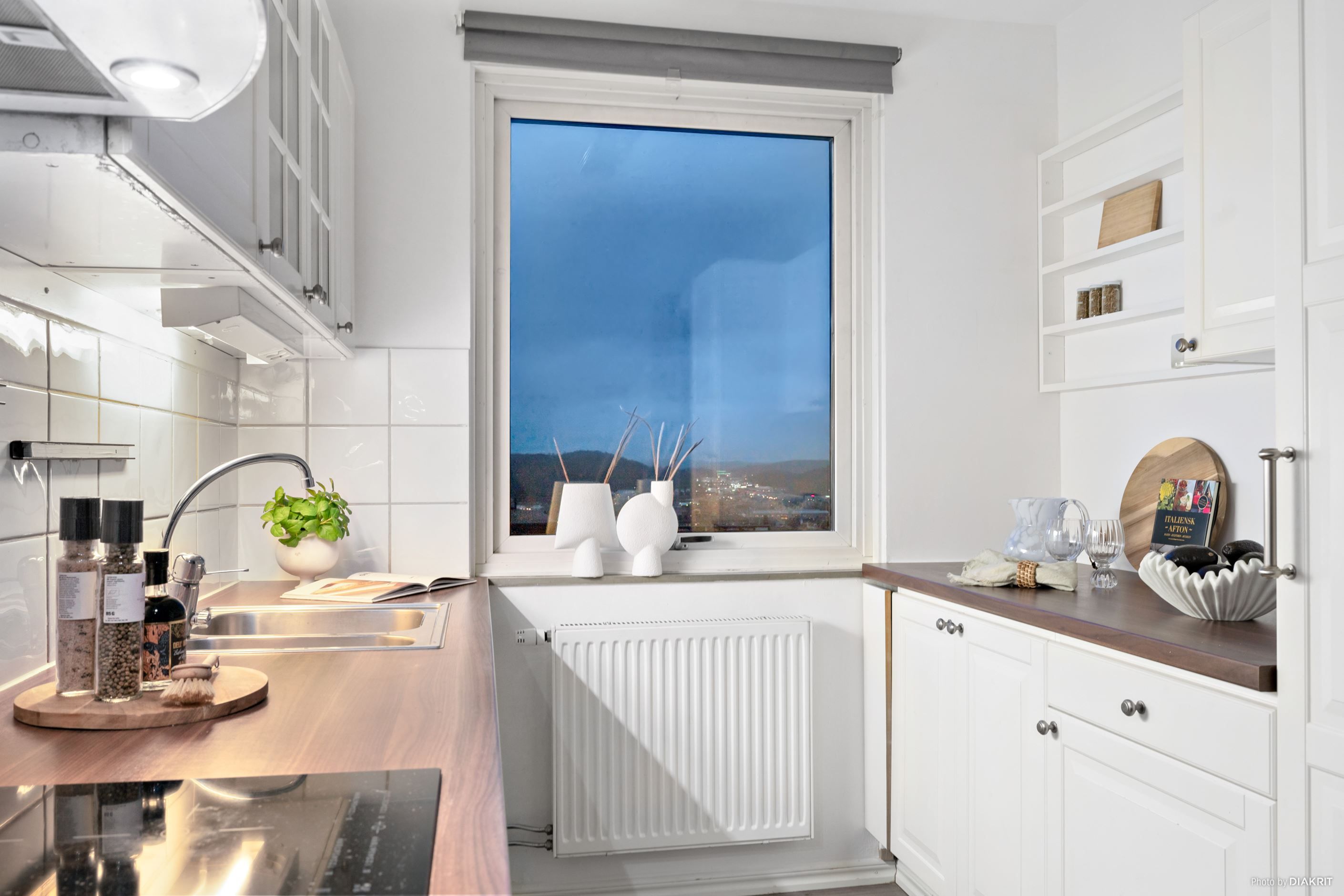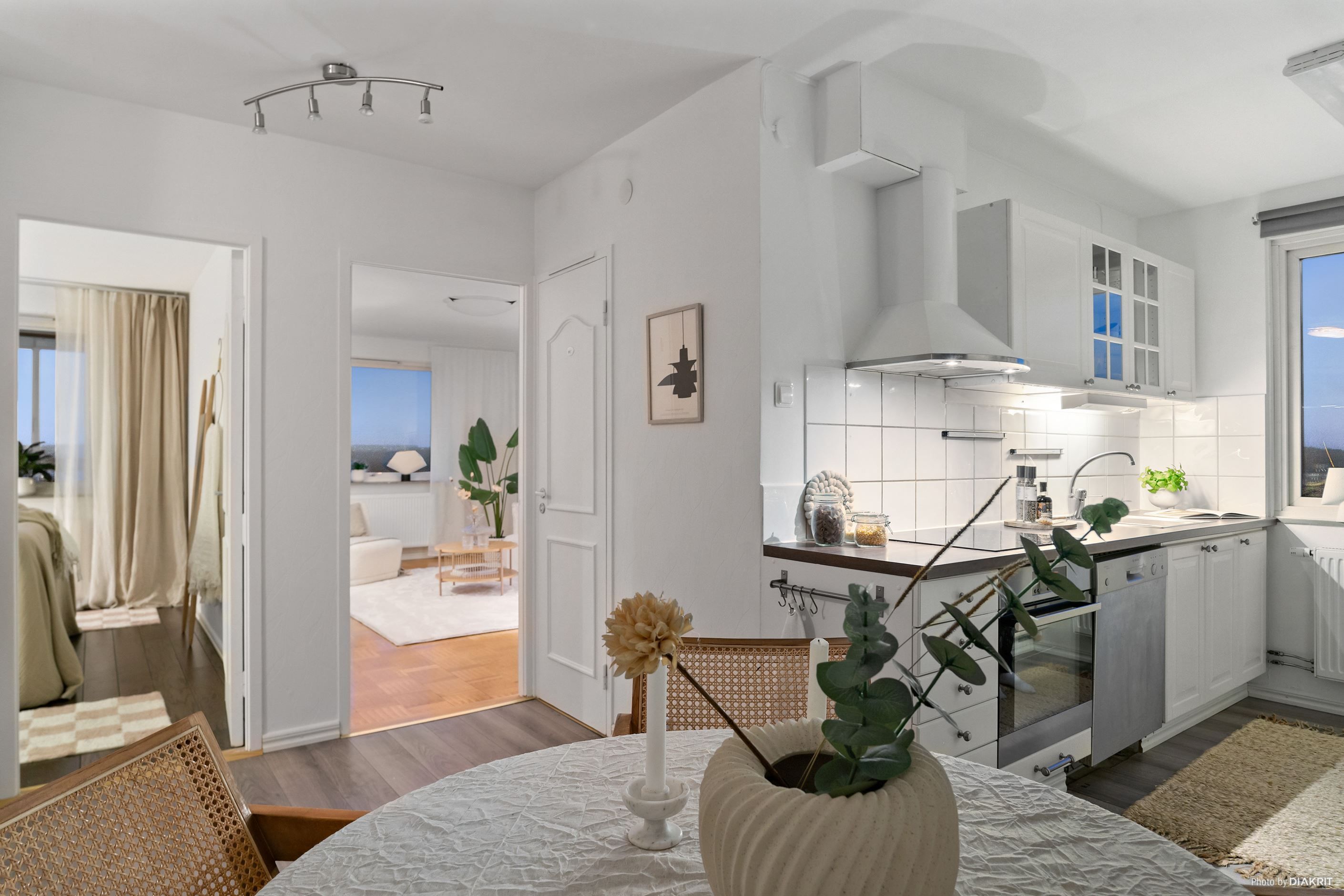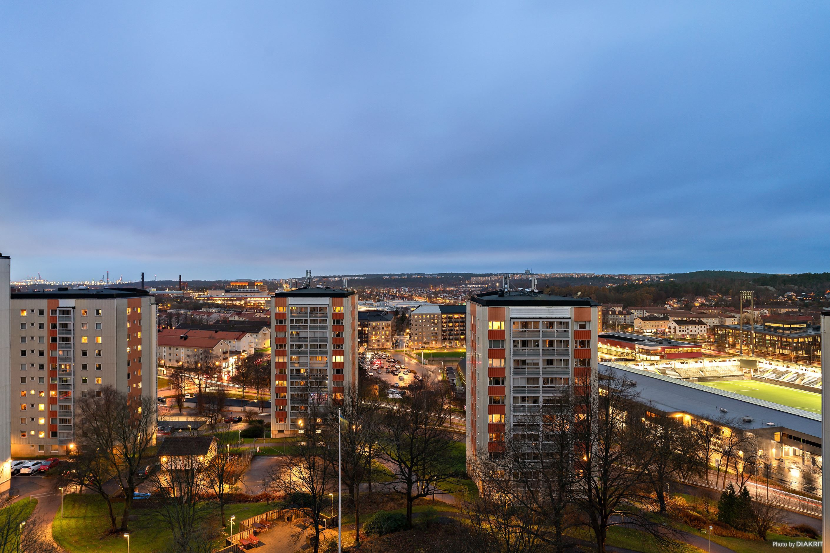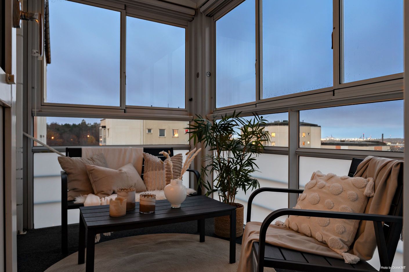 Välkomna till denna riktigt fina tvåa högst upp i huset på vån 12/12. Här kliver ni in i en rymlig hall med gott om förvaring i en klädkammare i anslutning. Vidare kommer ni till köket som är ljust och har det mesta ni kan behöva med en otrolig utsikt från köksfönstret. Det finns goda ytor för båda avlastning och förvaring. Köksbordet placerat ni bäst i anslutning till köket och här ryms plats för 4-6 personer. Vardagsrummet ligger med fönster ut mot den hela hisingen och göteborg med magisk utsikt och har plats för en stor soffa såväl som ett skrivbord för er som jobbar hemifrån. Från vardagsrummet kliver ni ut på den inglasade balkongen i insynsskyddat västerläge och otrolig utsikt över området. Balkongen rymmer plats för sittgrupp för 4-6 personer och blir det perfekta extra rummet stora delar av året. Här bor ni centralt men ändå med lugnet nära inpå. Ni har spårvagn, butiker och allt ni kan önska på promenadavstånd. En välmående stor Riksbyggen förening som erbjuder, bastu, gästlägenhet, hobbyrum, boulebana, lek- och grillplats och mycket mer.