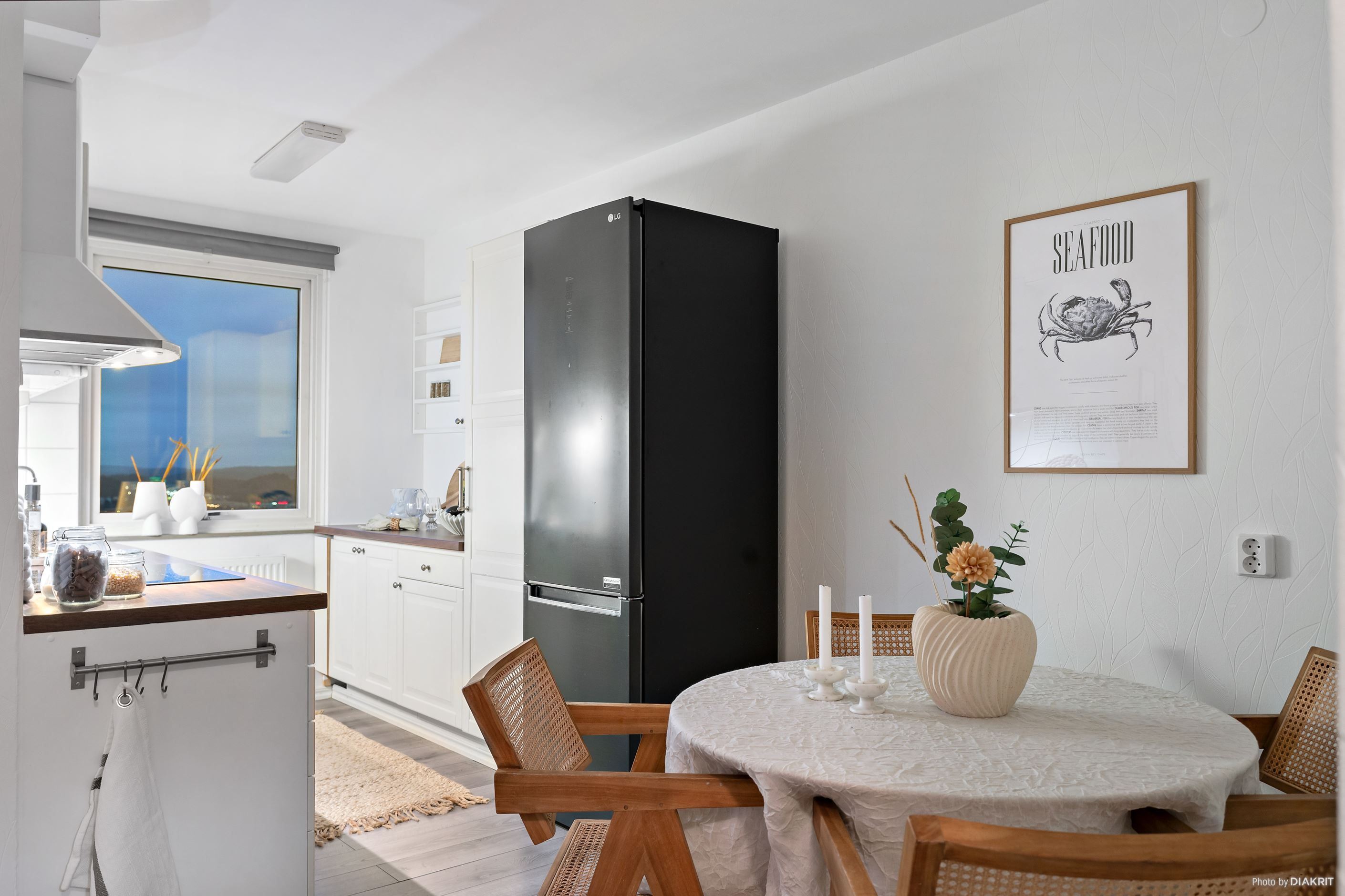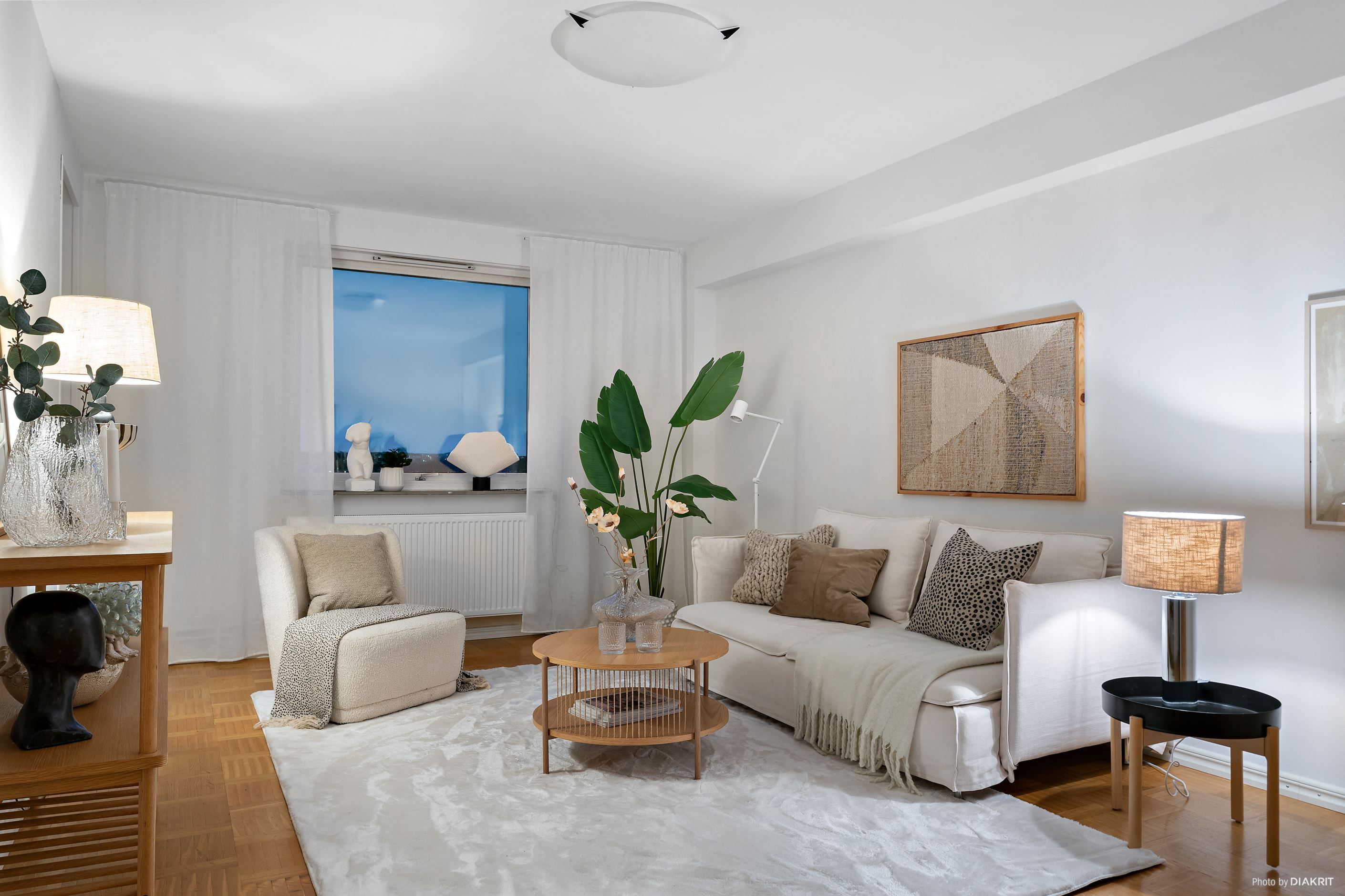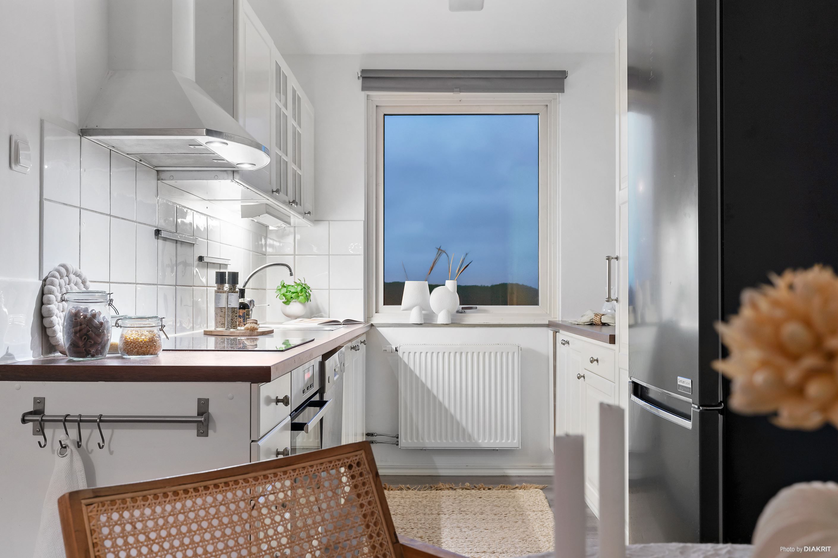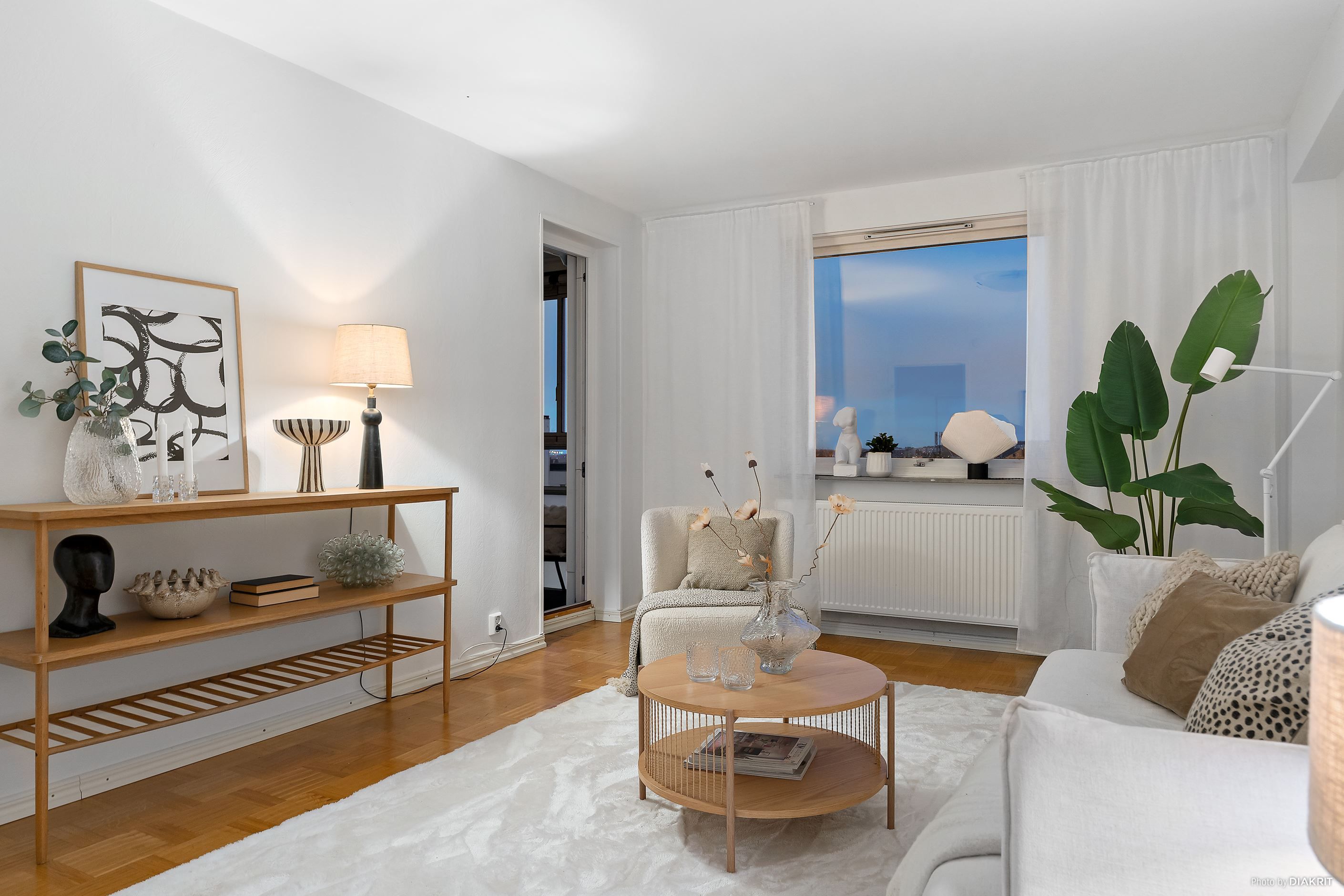 Välkomna till denna riktigt fina tvåa högst upp i huset på vån 12/12. Här kliver ni in i en rymlig hall med gott om förvaring i en klädkammare i anslutning. Vidare kommer ni till köket som är ljust och har det mesta ni kan behöva med en otrolig utsikt från köksfönstret. Det finns goda ytor för båda avlastning och förvaring. Köksbordet placerat ni bäst i anslutning till köket och här ryms plats för 4-6 personer. Vardagsrummet ligger med fönster ut mot den hela hisingen och göteborg med magisk utsikt och har plats för en stor soffa såväl som ett skrivbord för er som jobbar hemifrån. Från vardagsrummet kliver ni ut på den inglasade balkongen i insynsskyddat västerläge och otrolig utsikt över området. Balkongen rymmer plats för sittgrupp för 4-6 personer och blir det perfekta extra rummet stora delar av året. Här bor ni centralt men ändå med lugnet nära inpå. Ni har spårvagn, butiker och allt ni kan önska på promenadavstånd. En välmående stor Riksbyggen förening som erbjuder, bastu, gästlägenhet, hobbyrum, boulebana, lek- och grillplats och mycket mer.