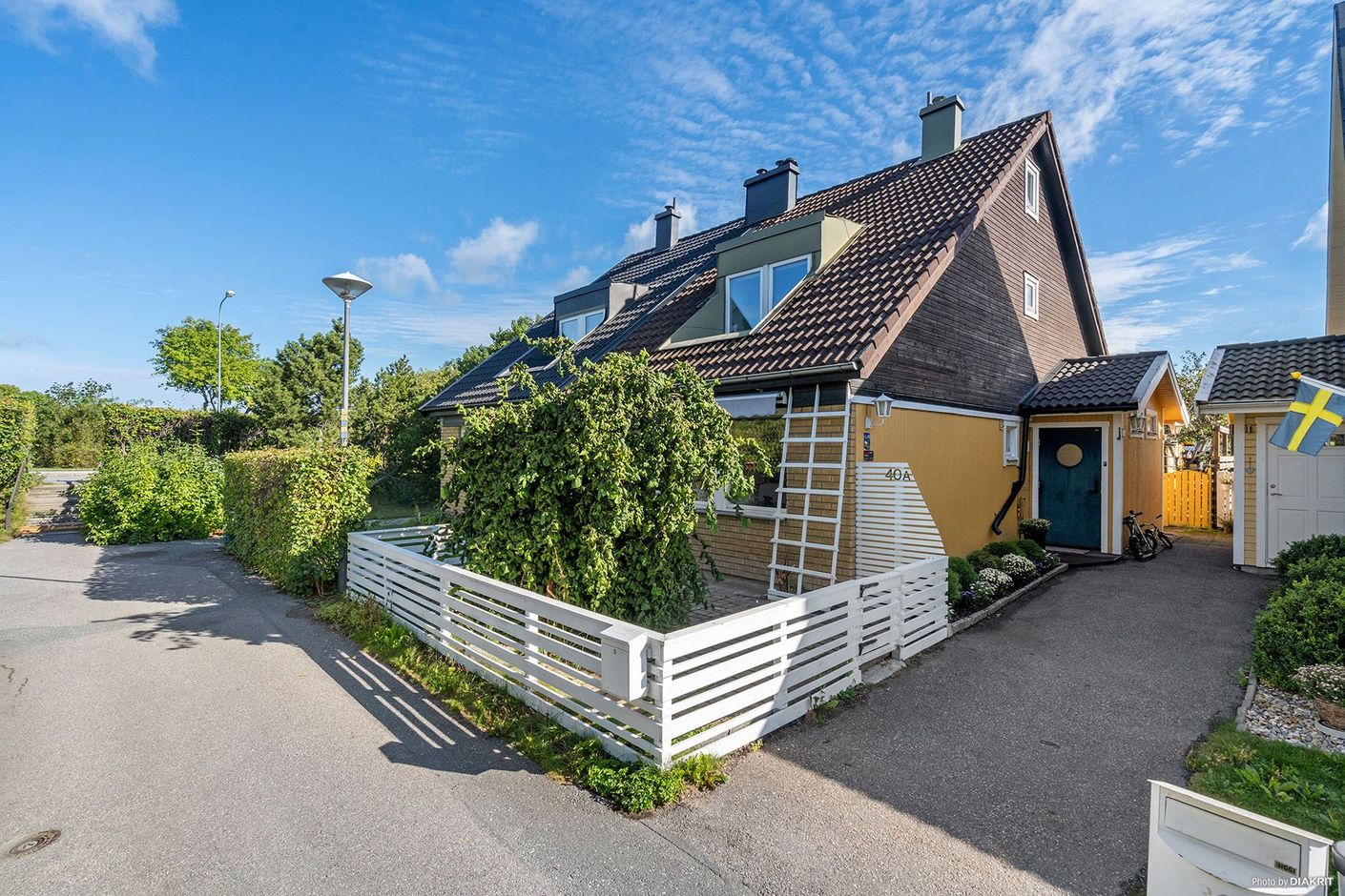 Lättskött och ompysslat parhus med stora trivselvärden, som under senare år har genomgått stora förbättringar. Fastigheten som ligger med ett mycket lugnt barnvänligt läge, är uppfört 1974 och har under åren tagits väl om hand och är i gott skick. Entréplanet fördelas över ett stort minimalistiskt kök från 2018, ljus sällskapsdel med braskamin, snyggt renoverad wc, tvättavdelning och en tillbyggd hall/entré med bra förvaring. Övervåningen fördelas över en elegant bad-/duschrum som skänker vardagslyx och två bra sovrum, varav ett har en fin klädkammare med gott om möjligheter till förvaring. Högst upp i huset finns en inredd vind som blir en självklar favorit för familjens busfrön. Utvändigt finns flera stora ytor för socialt umgänge. Här återfinns ett uterum på ca 12 kvm som förlänger utomhussäsongen och skyddade uteplatser för privat avkoppling. På husets baksida hittar ni också en separat byggnad med ett isolerat rum för hemmaföretagaren, tonåringen eller gästen som kommer på besök. Separat förråd finns också. Fiber finns installerat.Garage ligger i länga på bekvämt avstånd från huset. På Fjärdingsmansvägen 40A, lever ni ett bekvämt familjeliv med närhet till skolor/förskolor, handel, kommunikationer, fritidsaktiviteter och gröna naturupplevelser. Tillträde kan ske under hösten 2022. Huset har förhandsbesiktigats, energideklarerats och säljaransvarsförsäkring för s.k. dolda fel kommer tecknats av säljaren.