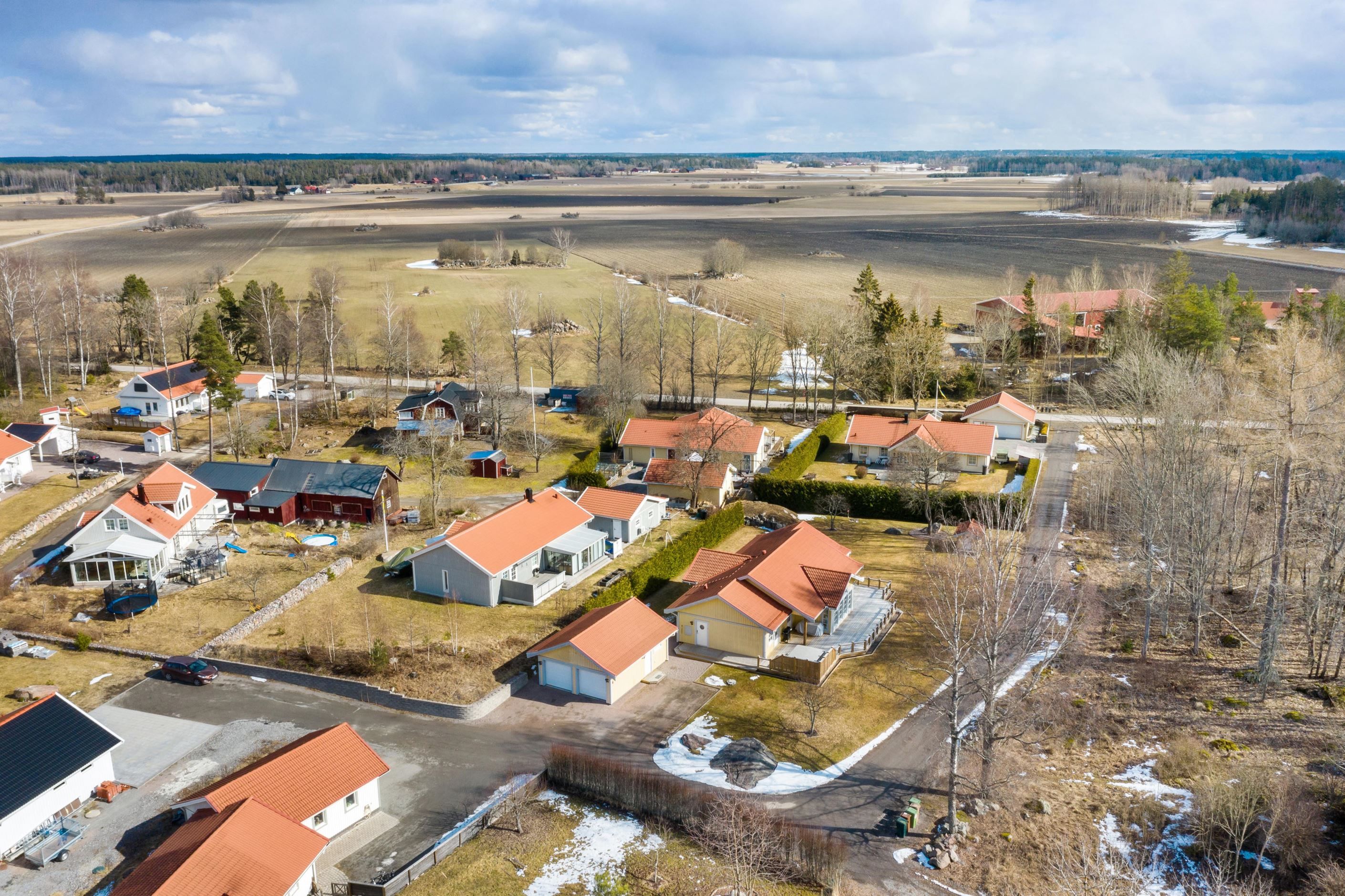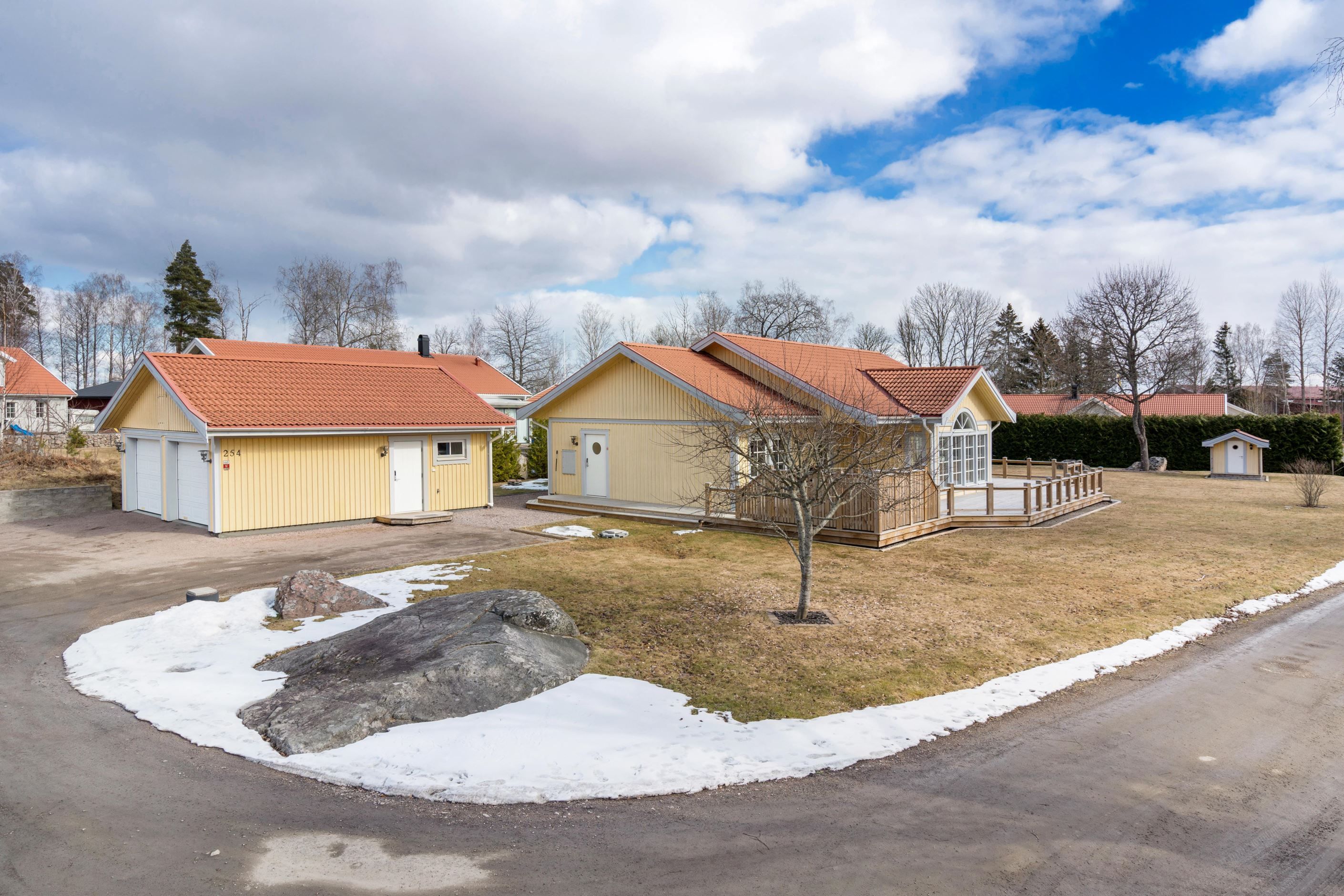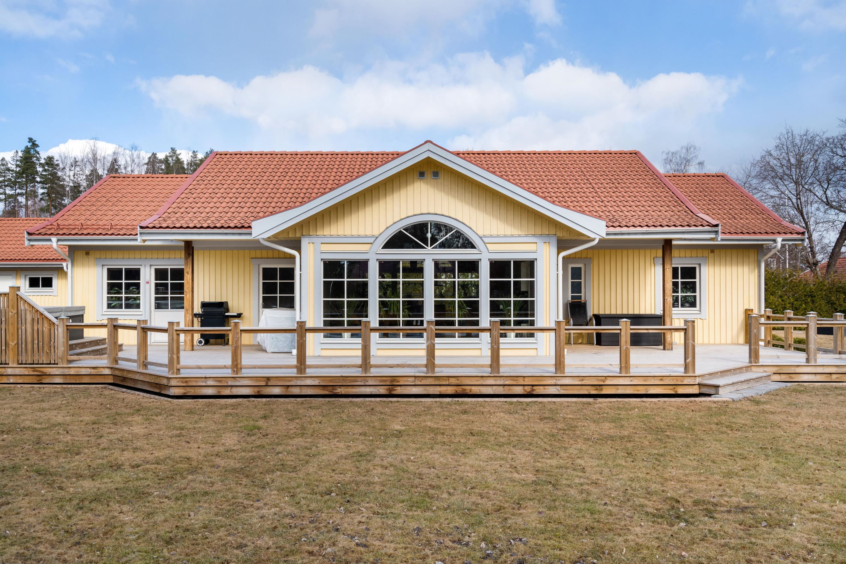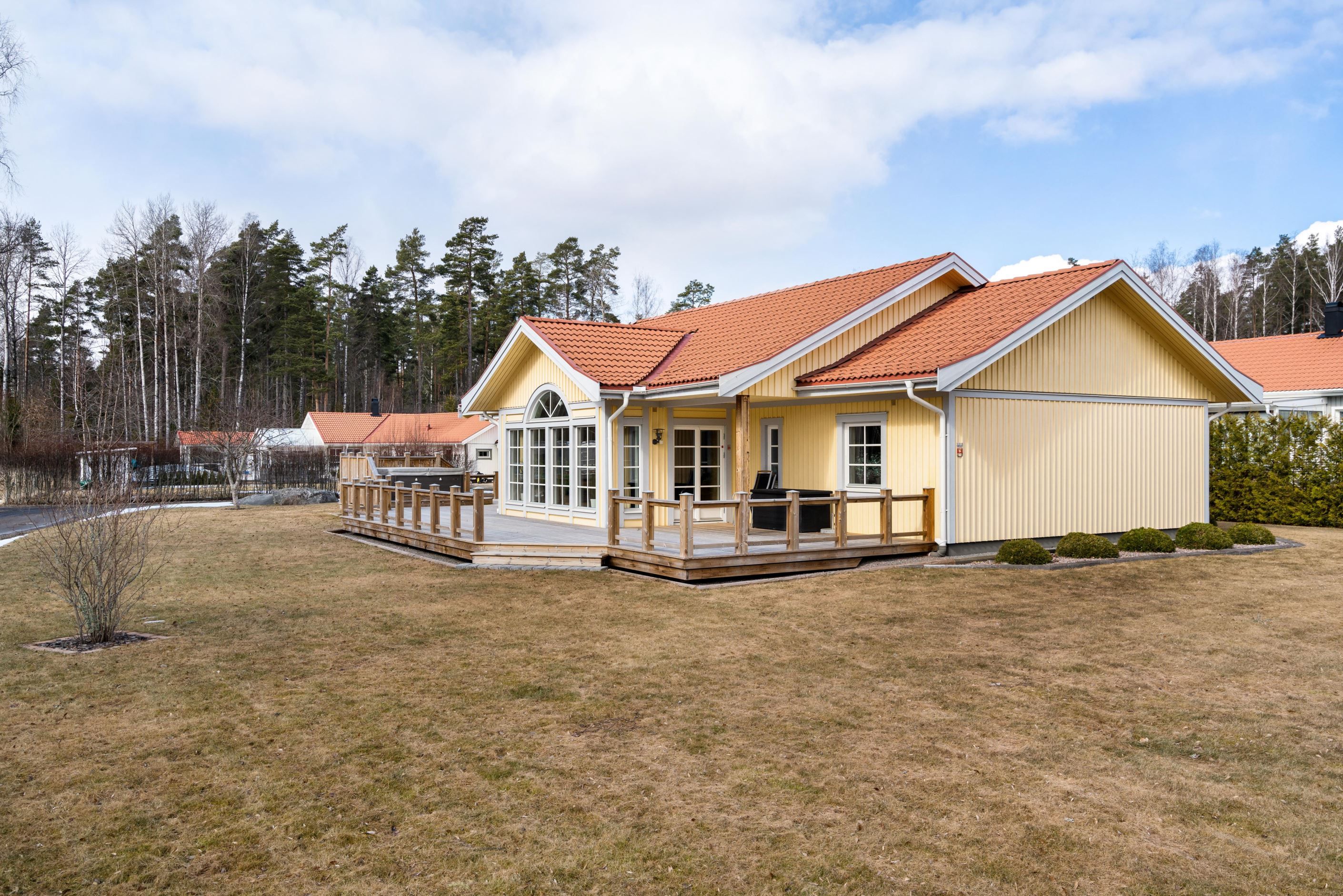 Villan är byggd 2005 av Trivselhus och erbjuder genomgående ljusa fräscha färger, stora ljusinsläpp och ett rejält dubbelgarage! Den generösa terrassen inbjuder till grill, bada jacuzzi och ha trevliga middagar i solen. Öppen planlösning med stora fönster i kök och vardagsrum för ett enastående ljusinsläpp. Det finns 3 sovrum, allrum, vardagsrum, två badrum och kök med matplats. Materialvalen är smakfulla och av hög kvalité med bla. klinker- och parkettgolv och granitbänkskivor. Det är genomgående ljusa toner och målade väggar i ljusgrått i bostaden. Golvvärme och infällda spotlights återfinns. Många moderna lösningar har installerats såsom centraldammsugare, dimbara lampor samt möjlighet till att fjärrstyra belysning och larm.