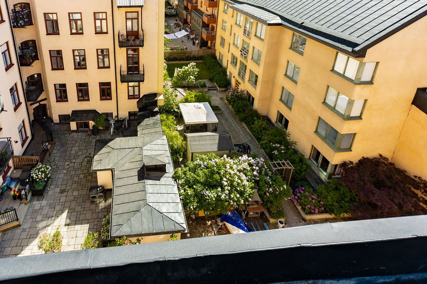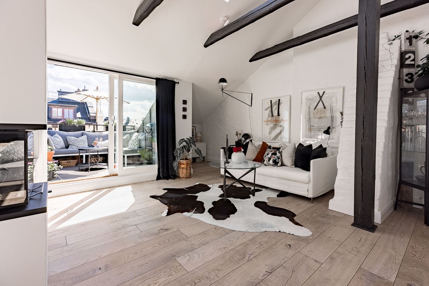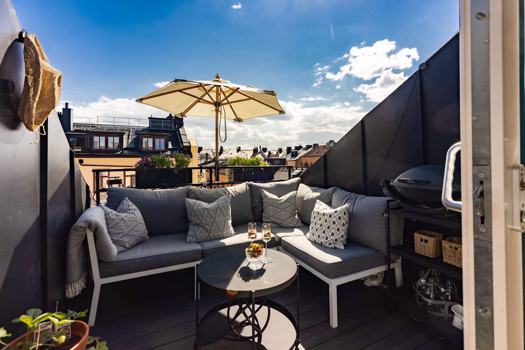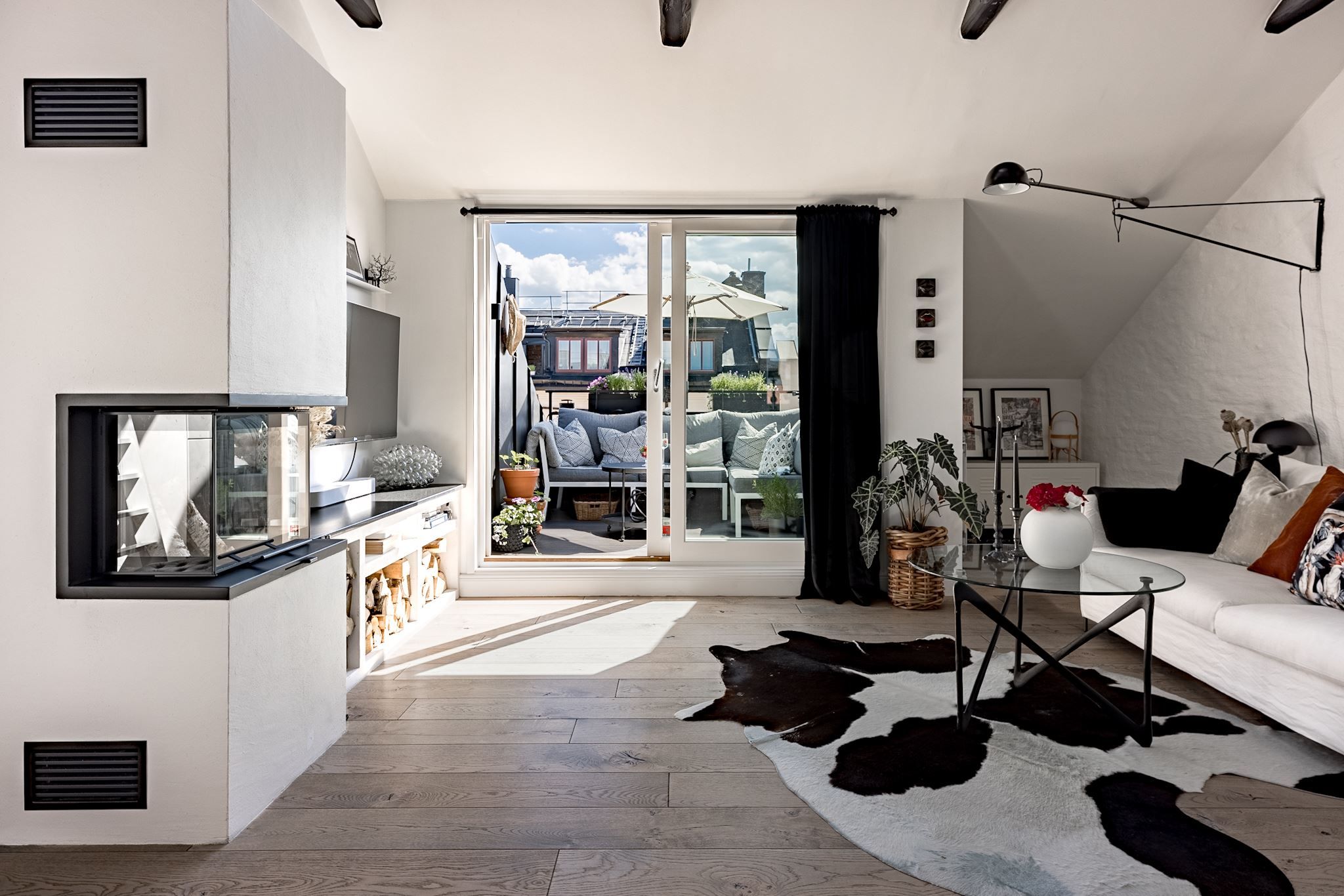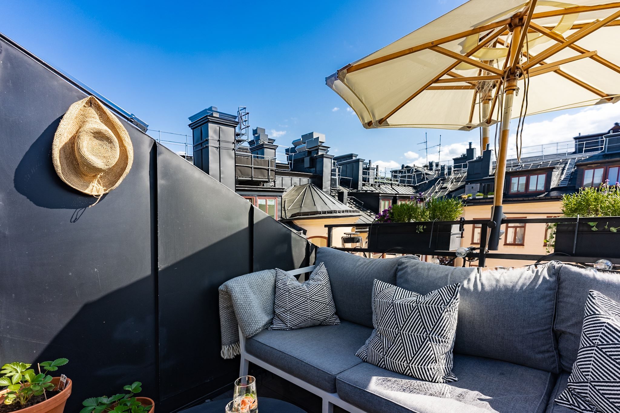 Med ett centralt och ostört läge precis vid Fridhemsplan ligger denna vackra vindslägenhet. Vinden är genomgående med fönster i dubbla väderstreck samt flertalet takfönster vilket ger ett härligt ljusinsläpp. Med utsikt över takåsar och ner mot föreningens trevliga innergård ligger bostadens fantastiska terrass med sol från morgon till sen kväll. Planlösningen är väldisponerad med öppna sociala ytor, ett stort och stilrent kök som passar den som gillar att laga mat, en mysig braskamin, ett badrum med tvättmaskin och ett praktiskt loft som passar utmärkt som gästrum. Idag är vinden en 2:a men den med lätthet byggas om till en 3:a. Bostaden är i mycket bra skick så här är det bara att flytta in och njuta av lugnet.