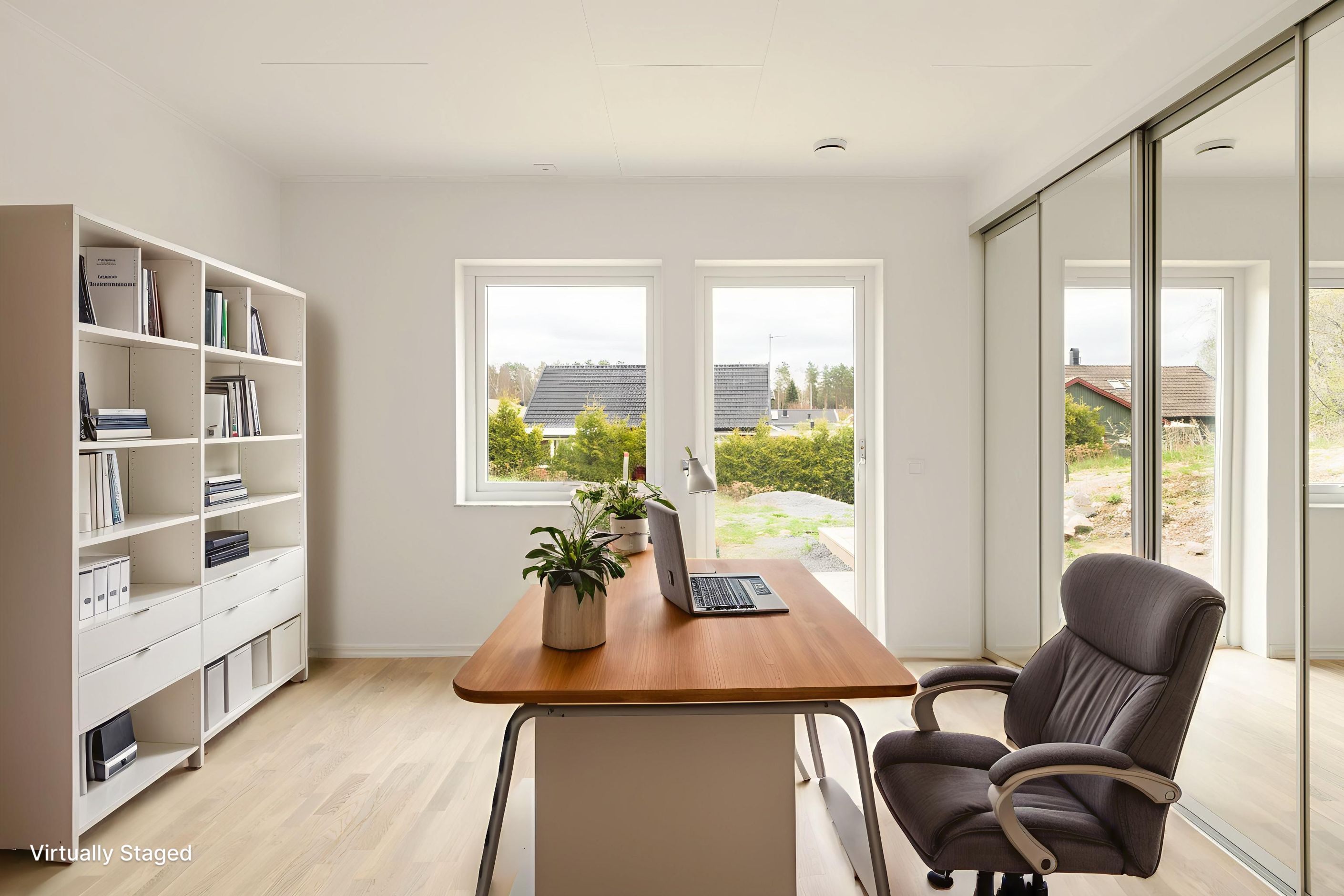 På entréplanet finner du tre ljusa rum, varav ett kan användas som kontor tack vare den installerade fibern som ger snabb och pålitlig internetanslutning. Dessutom finns ett badrum med dusch och en separat gäst-WC.