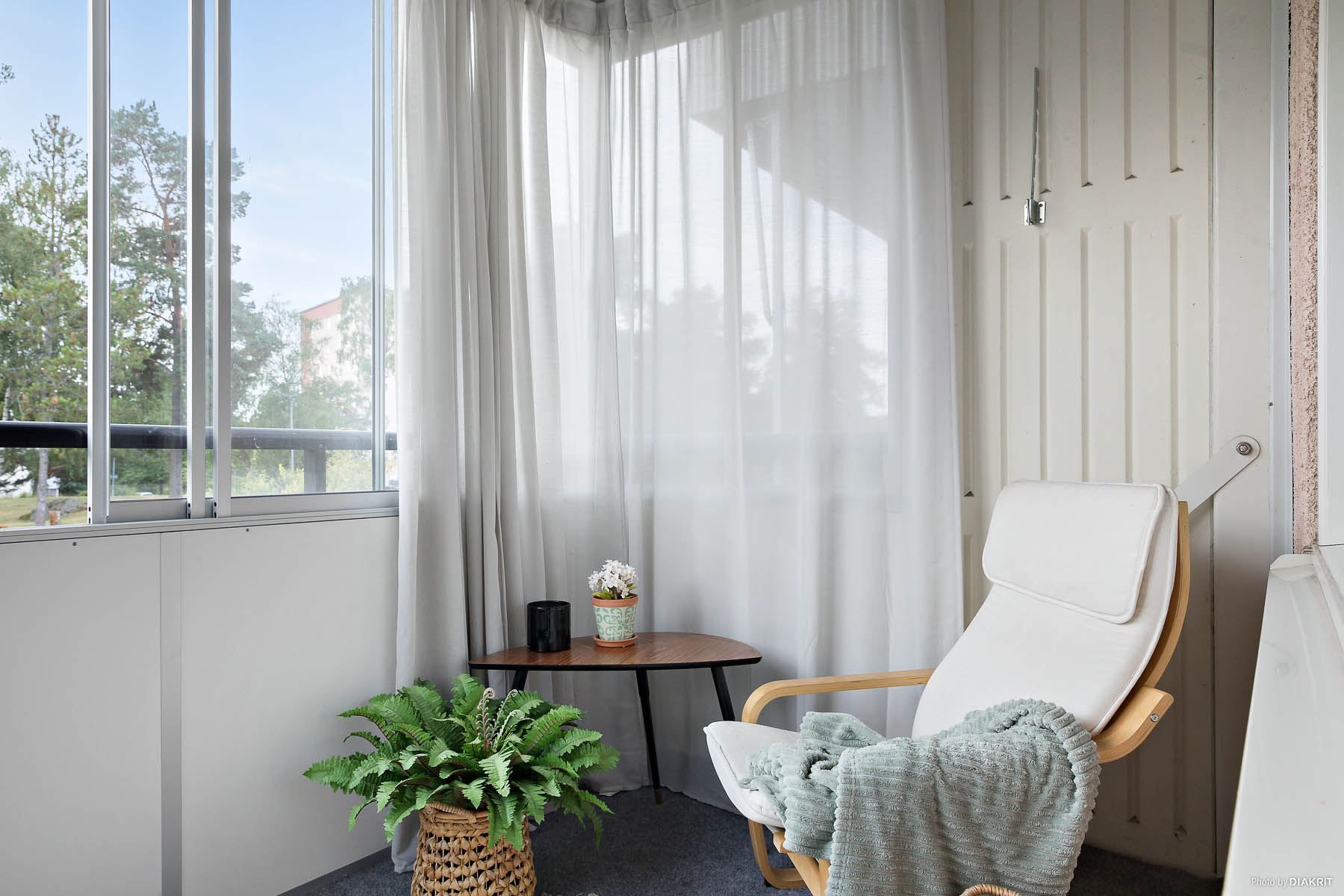 Vackert läge med utsikt mot grönskande parkområde. Stor och fin inglasad balkong med ett soligt söderläge. Totalrenoverat badrum/wc och kök år 2013. Genomgående fina ekparkettgolv och nymålade väggar. Lugnt läge nära buss, Edsviken och Rösjöområdet med bad, sport och friluftsliv. Välskött förening. Stamrenovering är utförd.