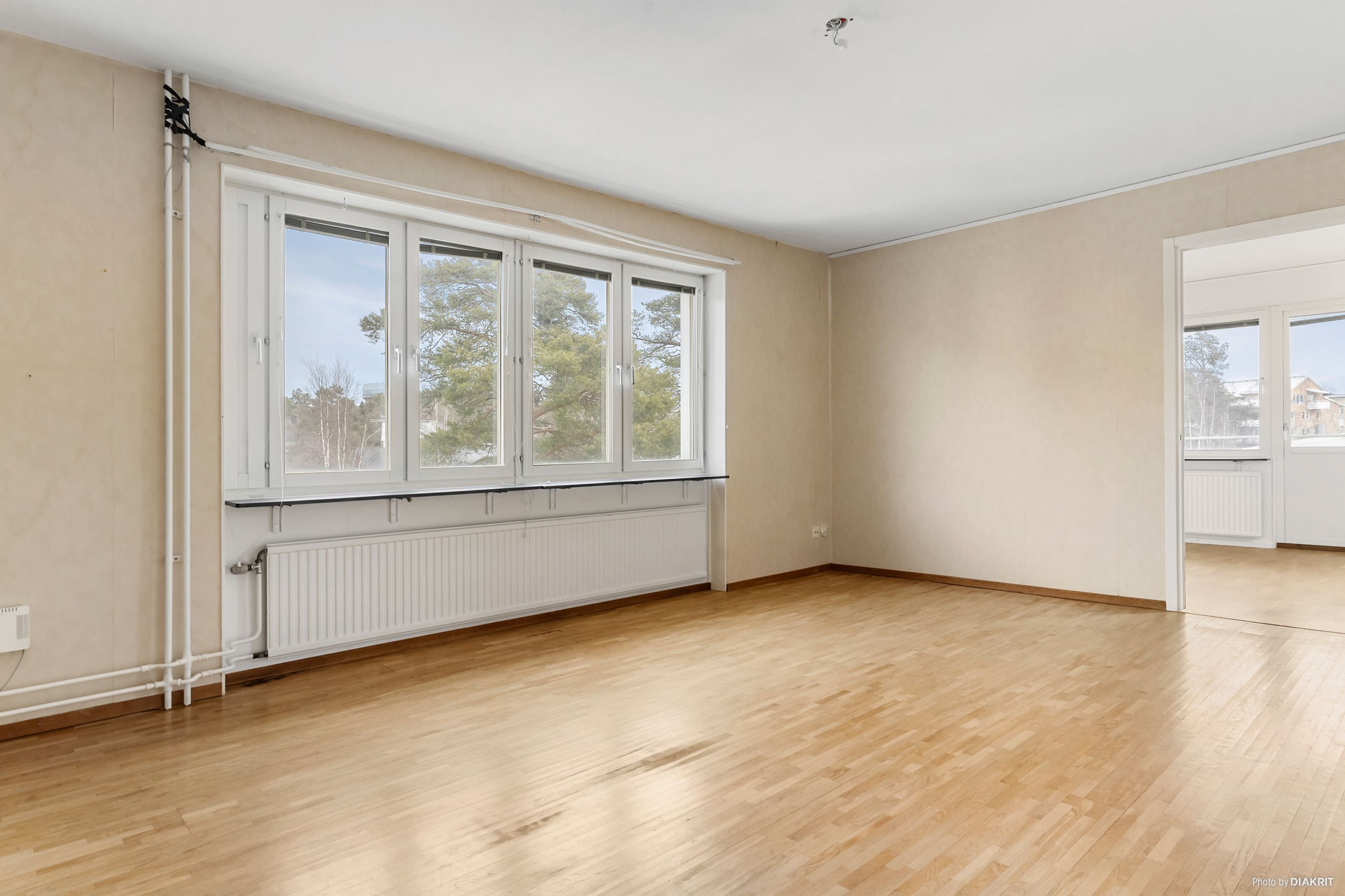 Intill köket ligger sovrummet. Sovrummet har tapetserade väggar, klickgolv, utgång till inglasad balkong och fint ljusinsläpp från två olika riktningar. Sovrummet har även en egen utgång till vardagsrummet, som även nås från hallen. Vardagsrummet är rymligt och har ett parkettgolv, tapetserade väggar och bra ljusinsläpp.