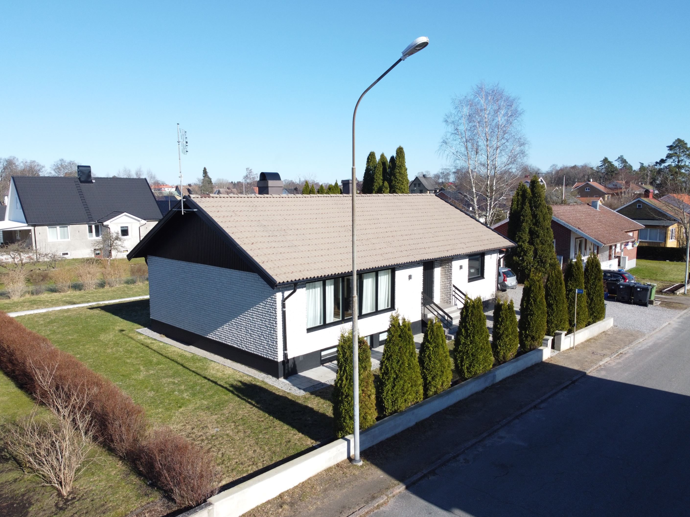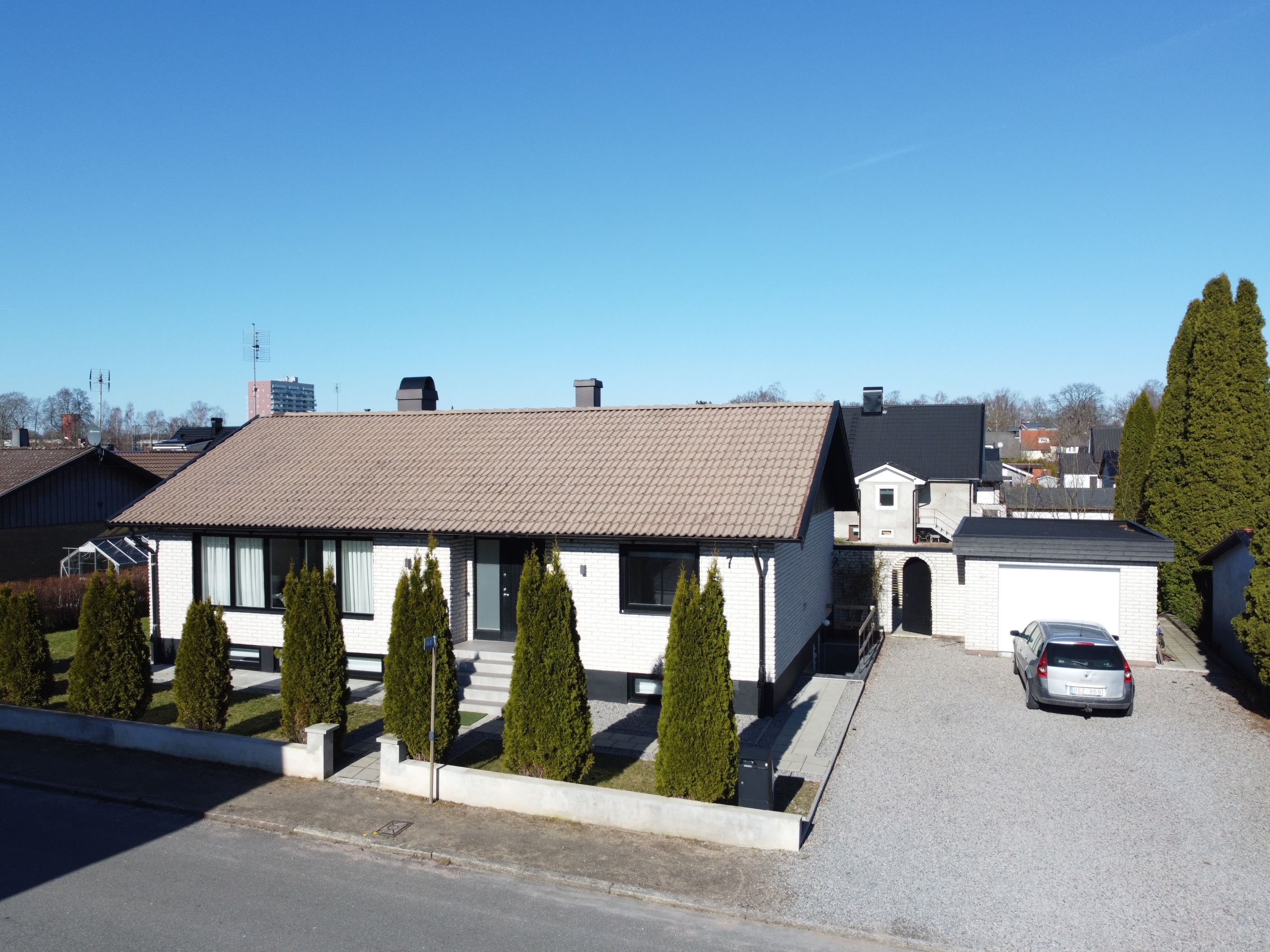Varmt välkommen till Floragatan 7, ett nyrenoverat enplanshus med inredd källare och utmärkt läge på promenadavstånd till centrum och järnvägsstationen. Denna välskötta mexitegelvilla är smakfullt och modernt renoverad i ljusa färger med ny köksinredning och helkaklade badrum. Entréplan har två rymliga sovrum, stor luftig hall, kök i vitt med stenbänkskivor öppet mot matplats och. På entréplan finns även ett större, helkaklat badrum. I källaren finns en stor härlig gillestuga med öppen spis som värmer gott, två mysiga sovrum samt toalett och ett duschrum. Här finns också ett stort praktiskt tvättrum och gott om förrådsutrymme. Tomten har ett fristående garage med nytt papptak, invändigt renoverat med klinkergolv och i trädgården finns en stor stenlagd uteplats med plats för trädgårdsmöbler. Huset har även fått nydragen el, nya aluminiumbeklädda fönster och det värms upp via fjärrvärme. Huset är besiktigat. Välkommen på visning!