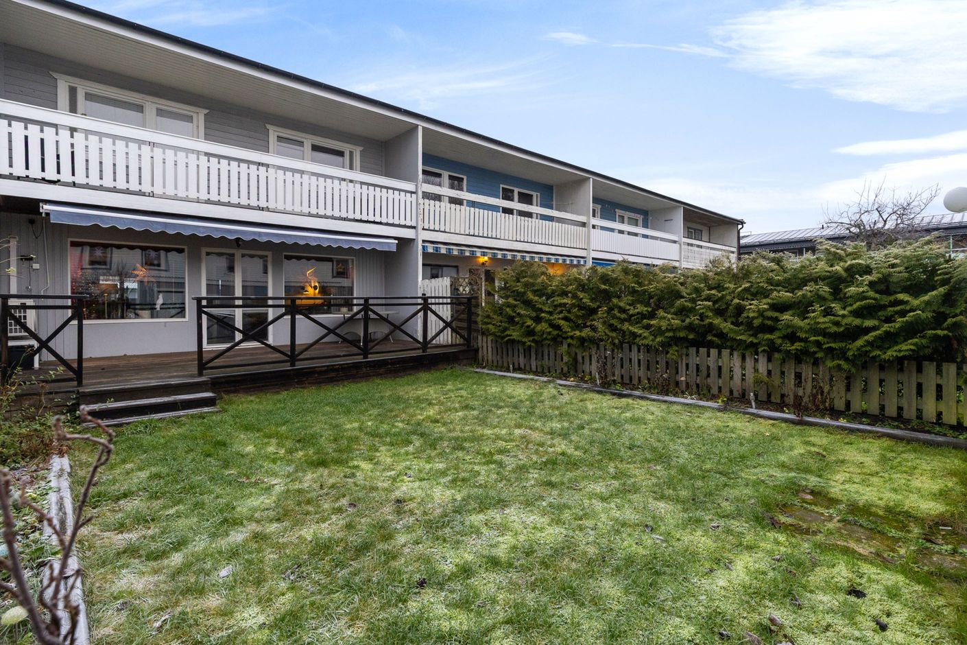 På baksidan finns en solig och skyddad uteplats i bästa solläge perfekt för sommarens alla stunder. Garage i länga ger extra bekvämlighet och förvaring.