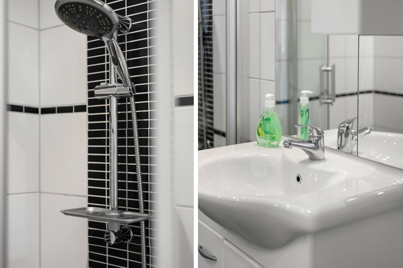 Ljust kök med inbyggda vitvaror i rostfritt utförande. Stort vardagsrum med fönster i två väderstreck, bra sovrum med gott om förvaring i skjutdörrsgarderober. Extra förvaring finns också i hallen samt ett tillhörande källarförråd. Duschrummet är i fint skick och renoverat av fackman med helkaklade väggar och klinkergolv. En ytterst välskött tvåa i perfekt läge!