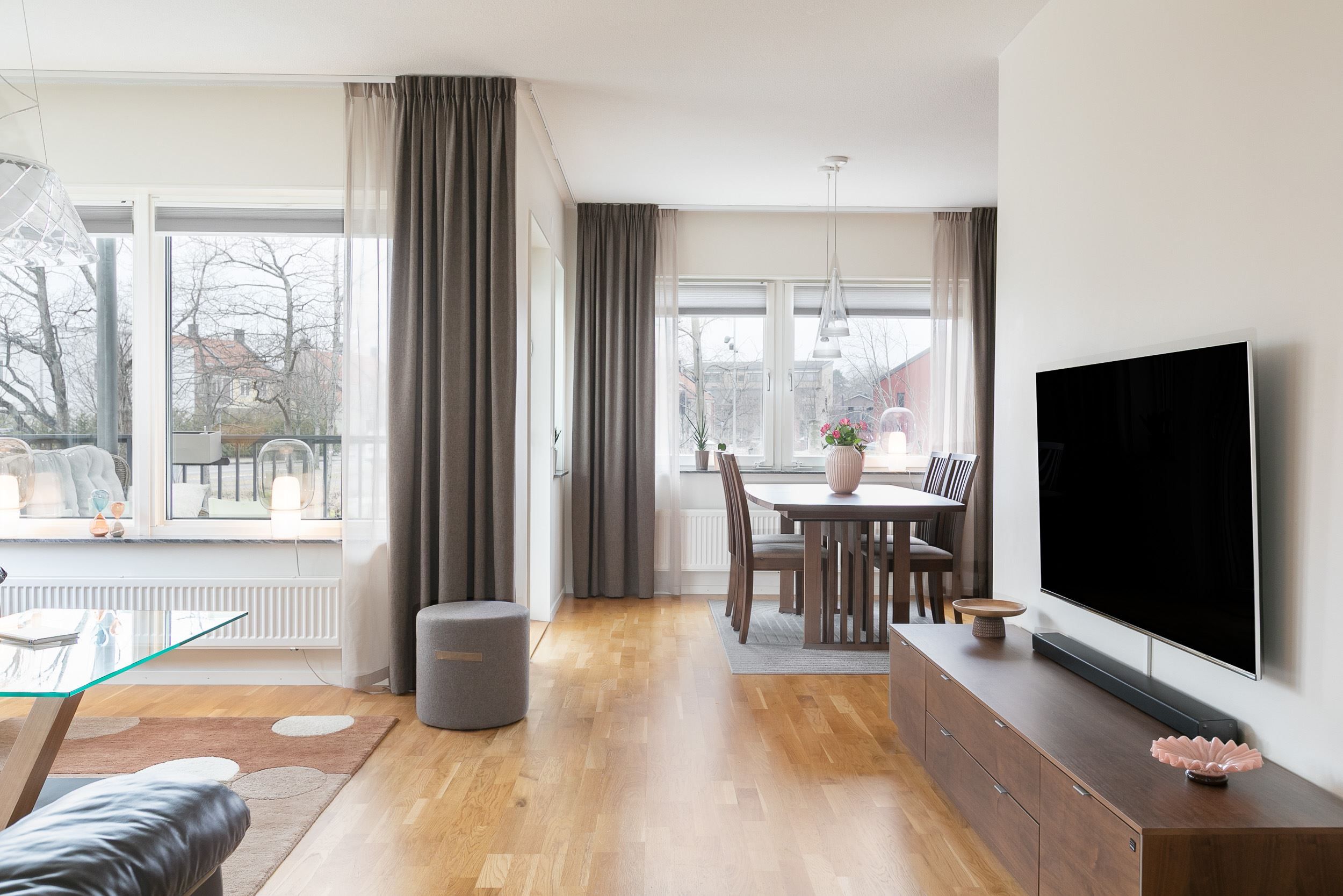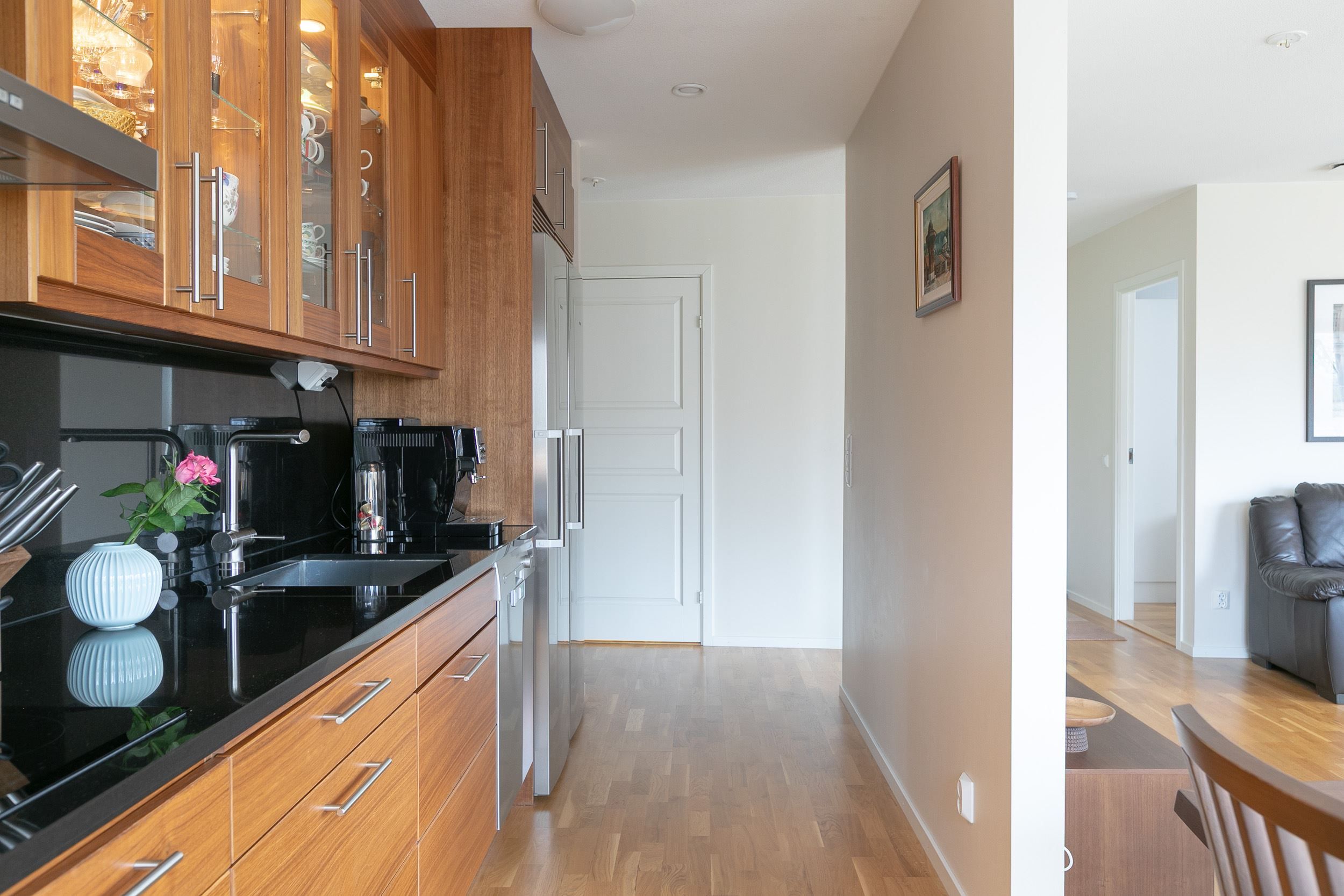 Bostaden är smakfullt utformad med fyra rum och kök, genomgående parkettgolv och noggrant utvalda materialval. Det stilrena köket med granitskiva är utrustat med rostfria vitvaror och har en smart planlösning i anslutning till det rymliga vardagsrummet. De stora fönsterpartierna ger ett fantastiskt ljusflöde och härifrån når du den rymliga balkongen – en perfekt plats att njuta av allt från vårens första solstrålar till sena sommarkvällar.
