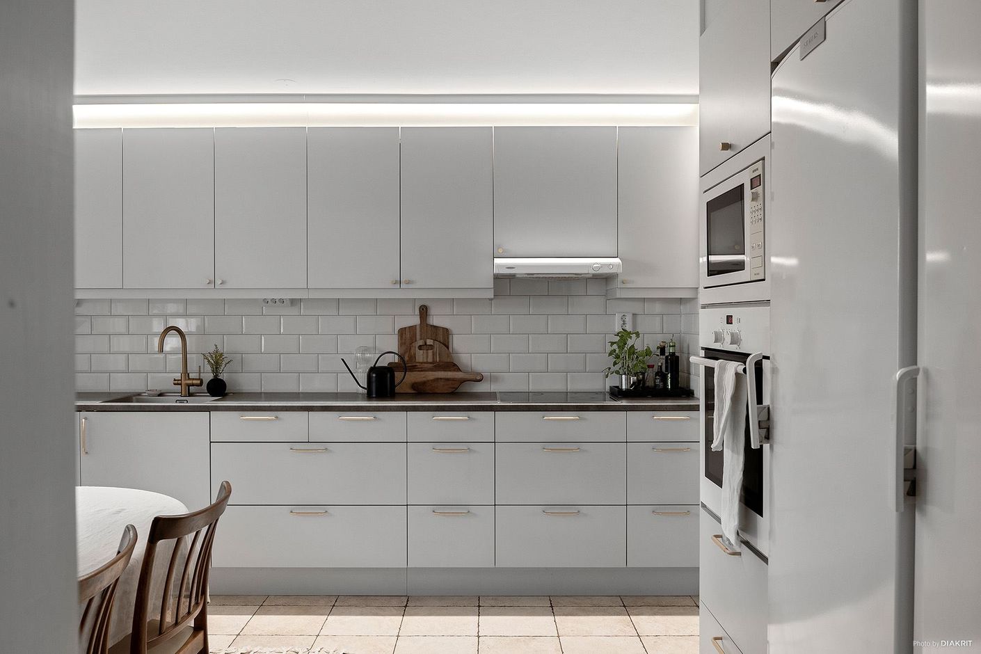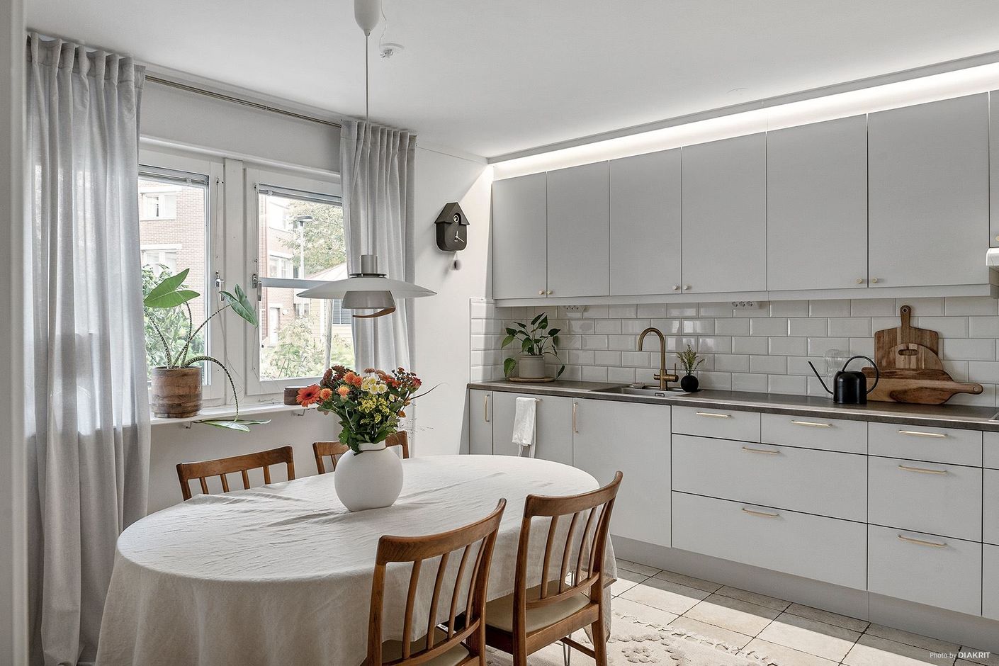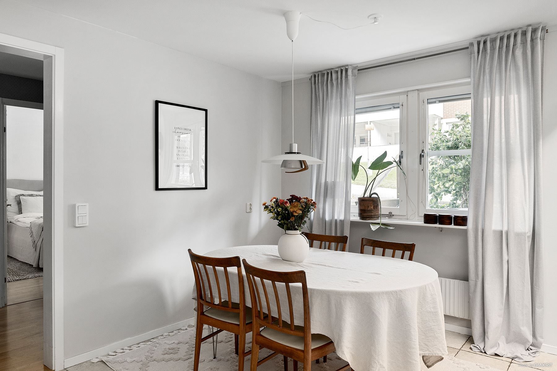 Bostaden disponeras med ett stilrent, nyrenoverat kök med plats för familjen, ett stort vardagsrum med plats för både matmöblemang och tv-hörna, tre sovrum renoverade i harmoniska och smakfulla kulörer, gästtoalett och badrum.