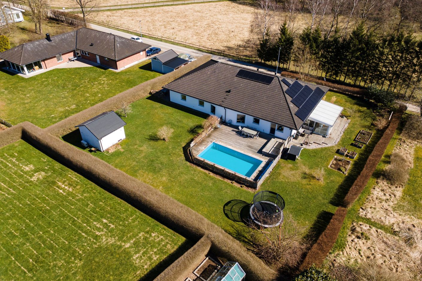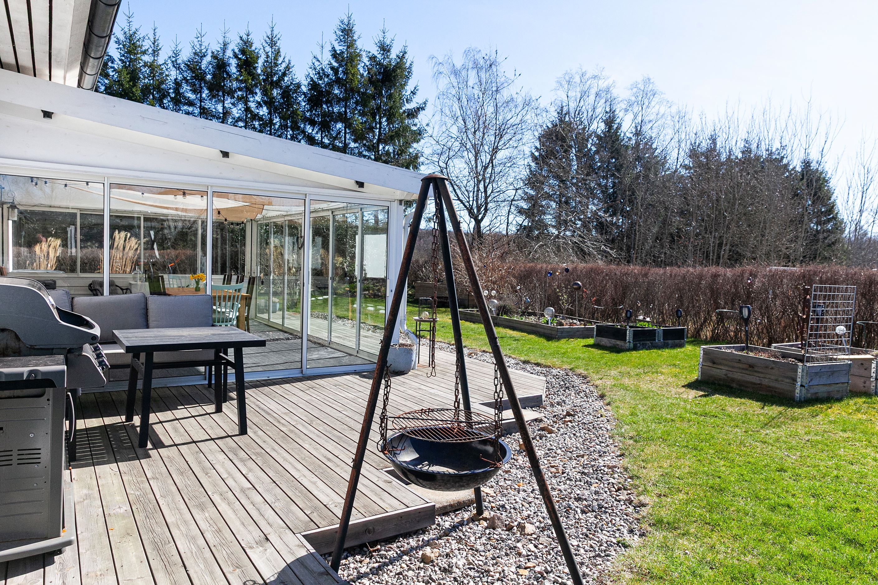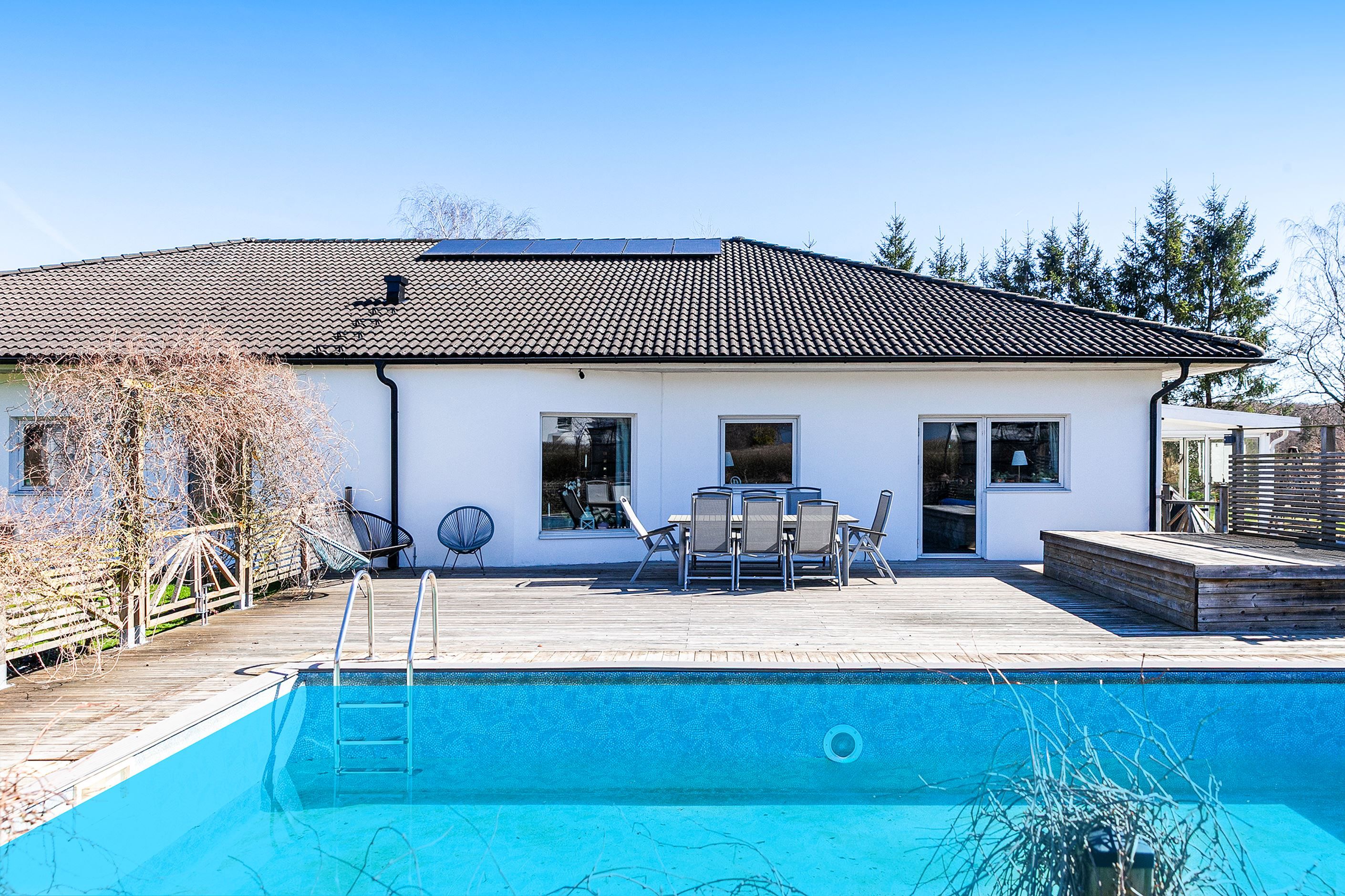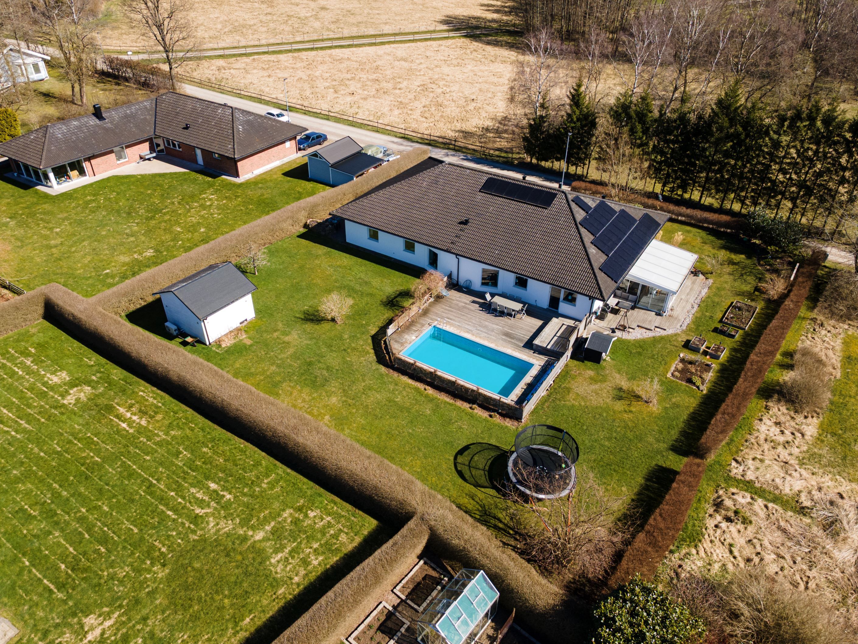 Nu har vi möjligheten att presentera ett fantastiskt enplanshus, beläget på Forntidsvägen uppe på Björnås. Här bor ni med omedelbar närhet till naturen, omgivet av gårdar i en modern enplansvilla på hela 235kvm, fördelat på hela fem sovrum, stort vardagsrum och kök, två badrum och tvättstuga. Ett perfekt boende för hela familjen som erbjuder massiva sociala ytor, högt i tak och en härlig stor trädgårdstomt med poolområde och uterum. Läget är lantligt, trots att det ligger nära det nyare villaområdet på Björnås och Åstorps centrala utbud av service och kommunikationer via tåg och buss.
