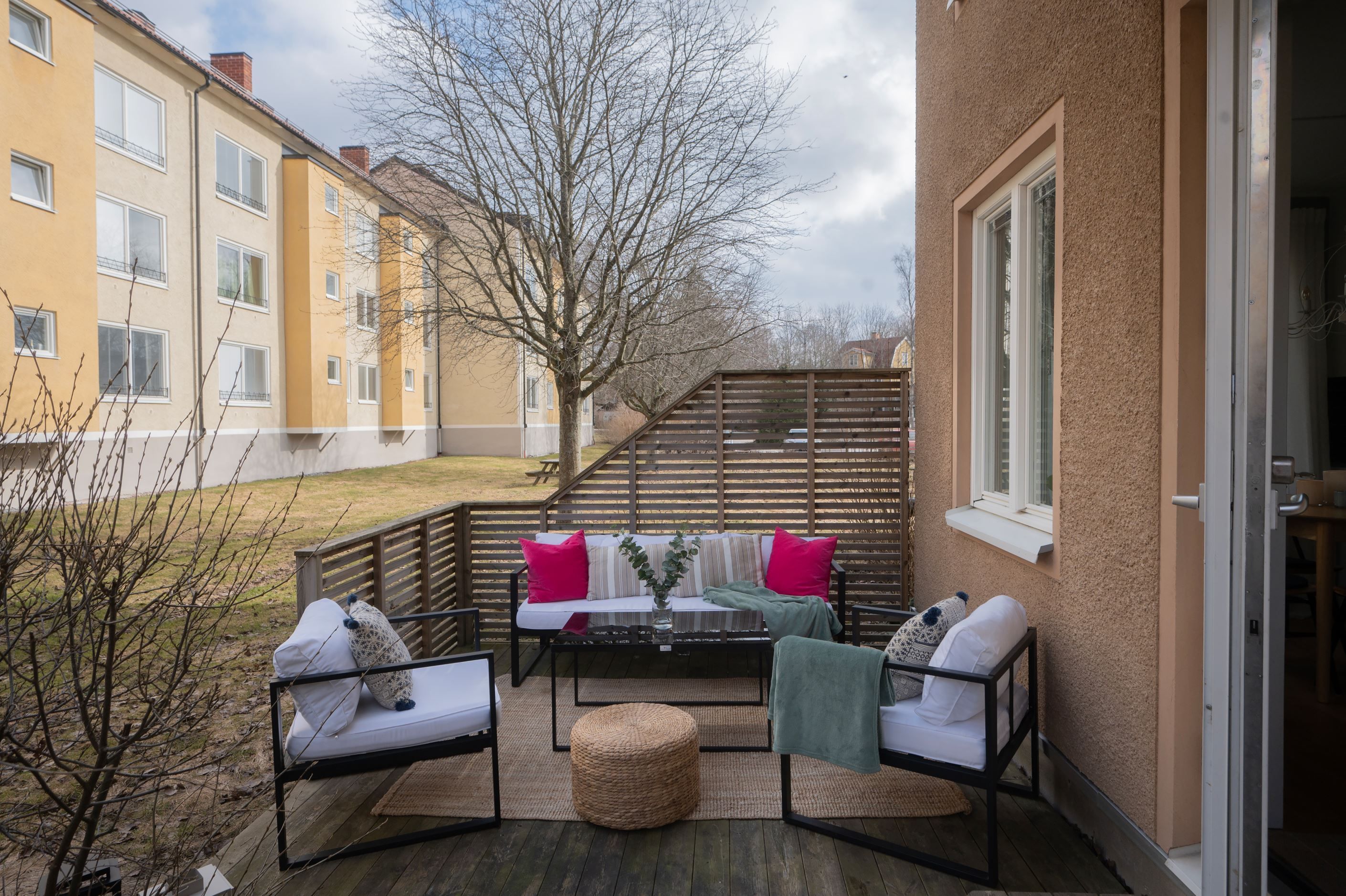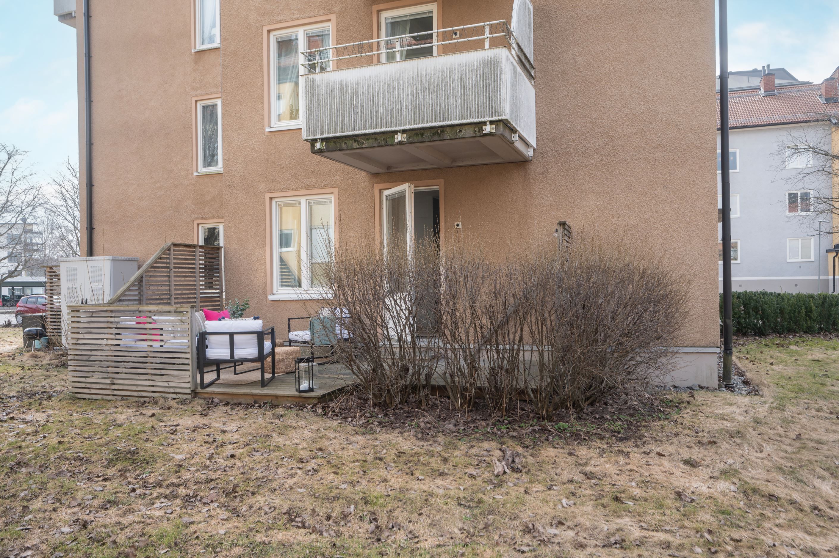 Mysig och välplanerad 2:a med egen trädäckad uteplats med promenadavstånd till Huddinge C