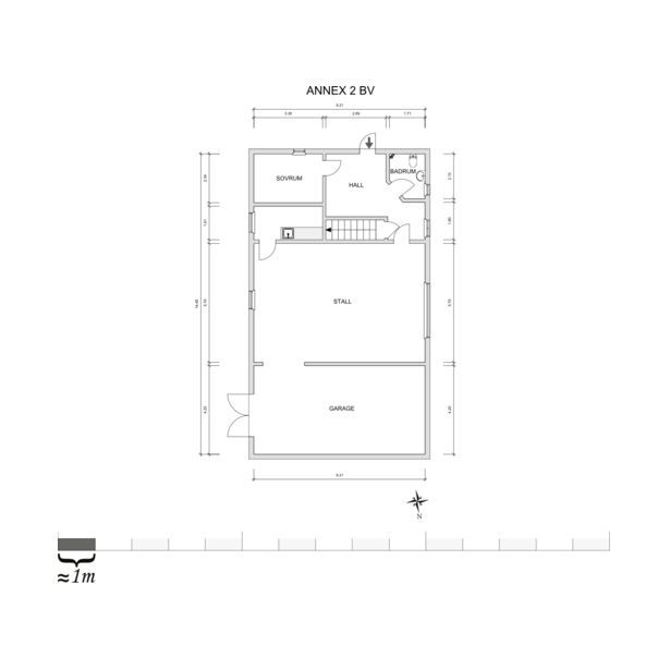 I den andra sidobyggnaden finner vi en inredd lägenhet med ett rum, mindre kök, badrum med bastu samt möjlighet att inreda ytterligare en lägenhet. Tilltagen tomt på drygt 5 500 kvm.