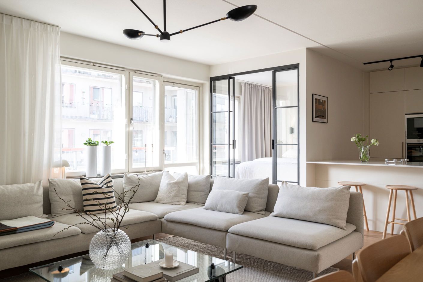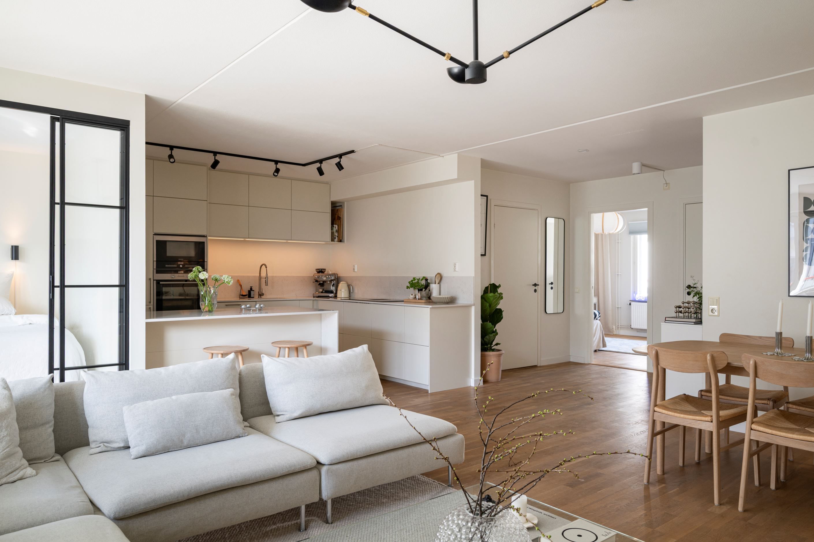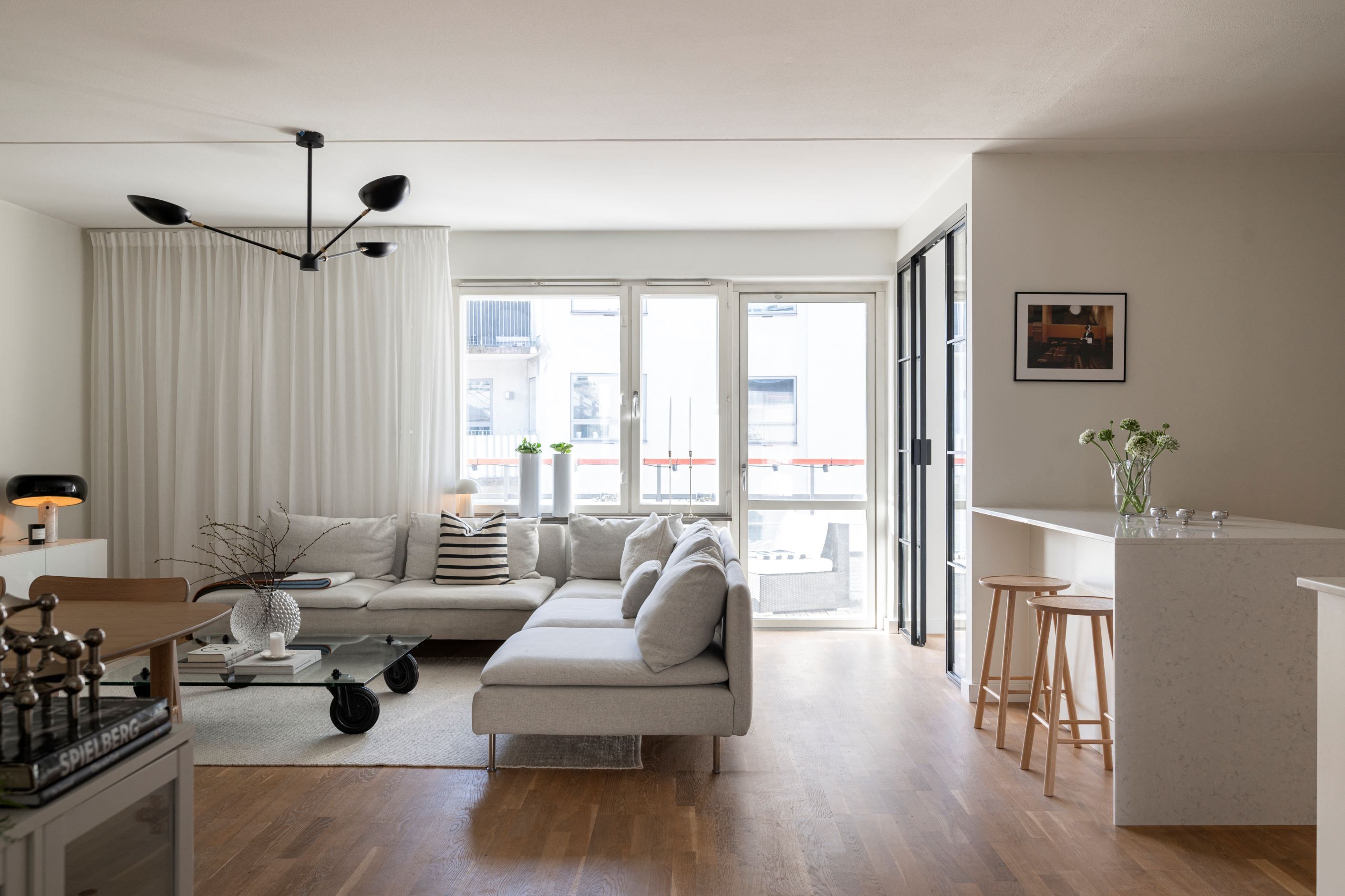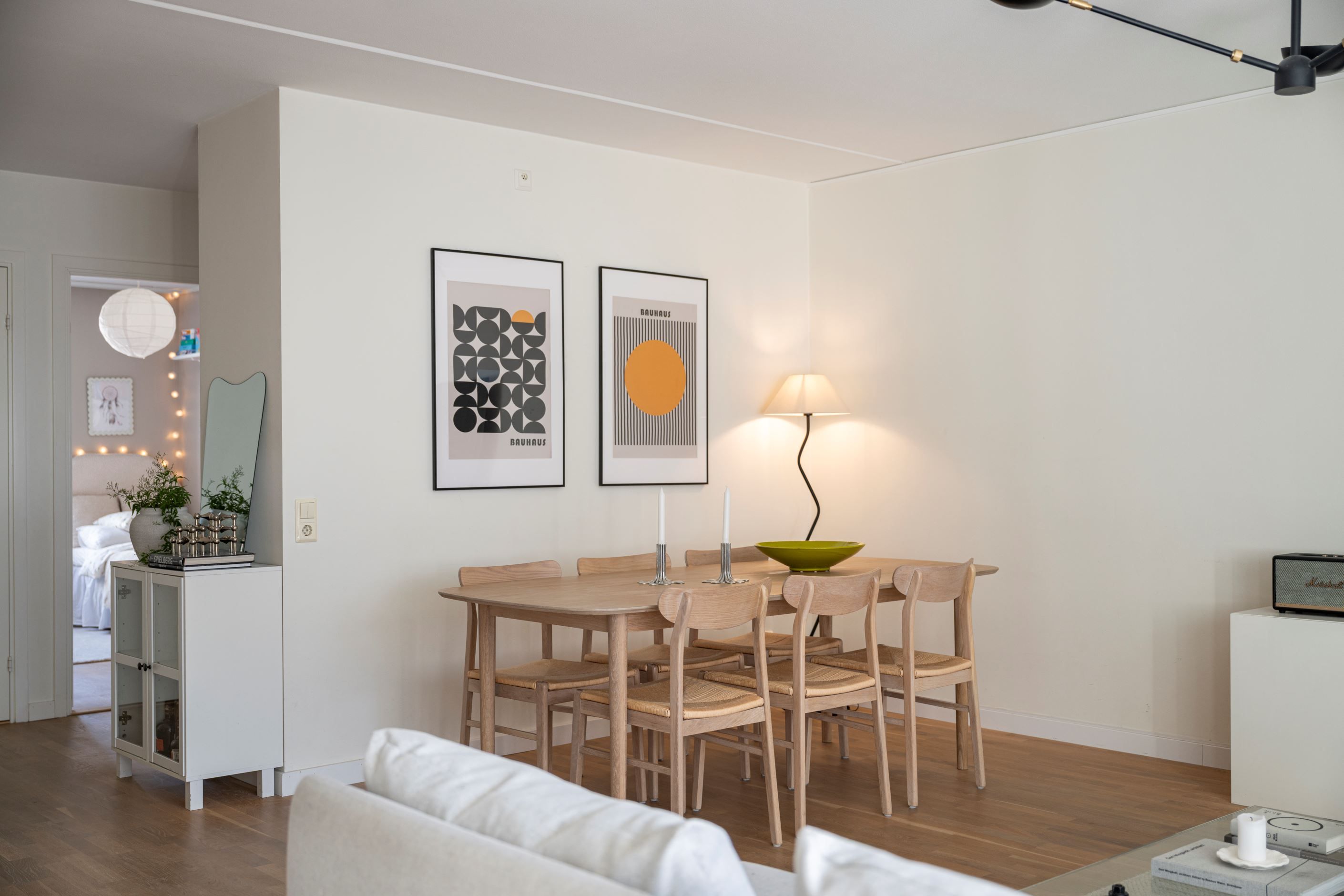 De sociala ytorna är bostadens hjärta. Här möts du av ett stilrent, renoverat kök med gott om arbetsytor och förvaring, som smidigt samspelar med vardagsrummet. Den öppna och inbjudande planlösningen gör det enkelt att umgås, oavsett om det är vardagsmiddag eller större tillställningar. Från vardagsrummet nås den härliga balkongen i sydväst – en given plats för eftermiddagskaffe och ljumma sommarkvällar.