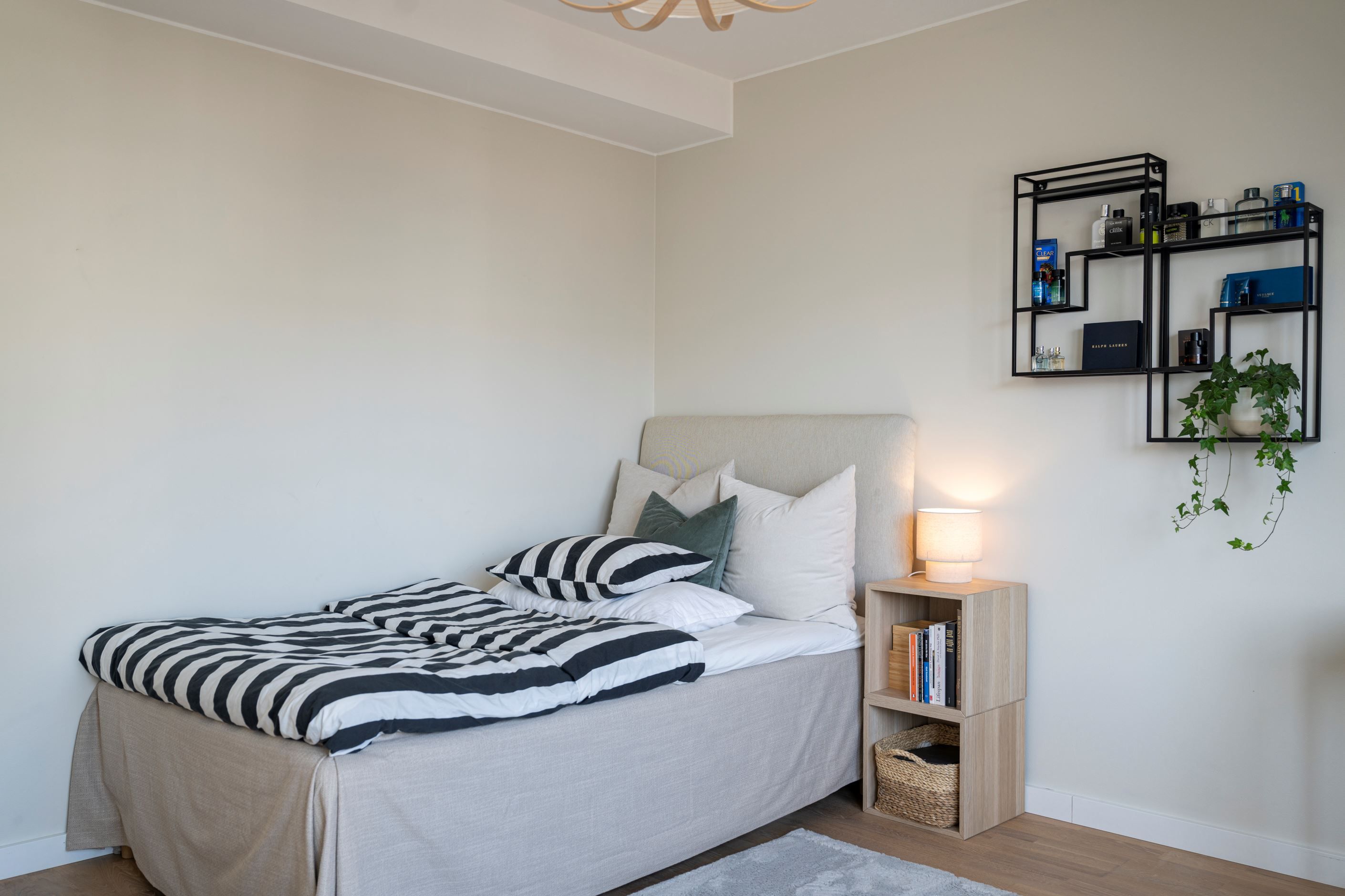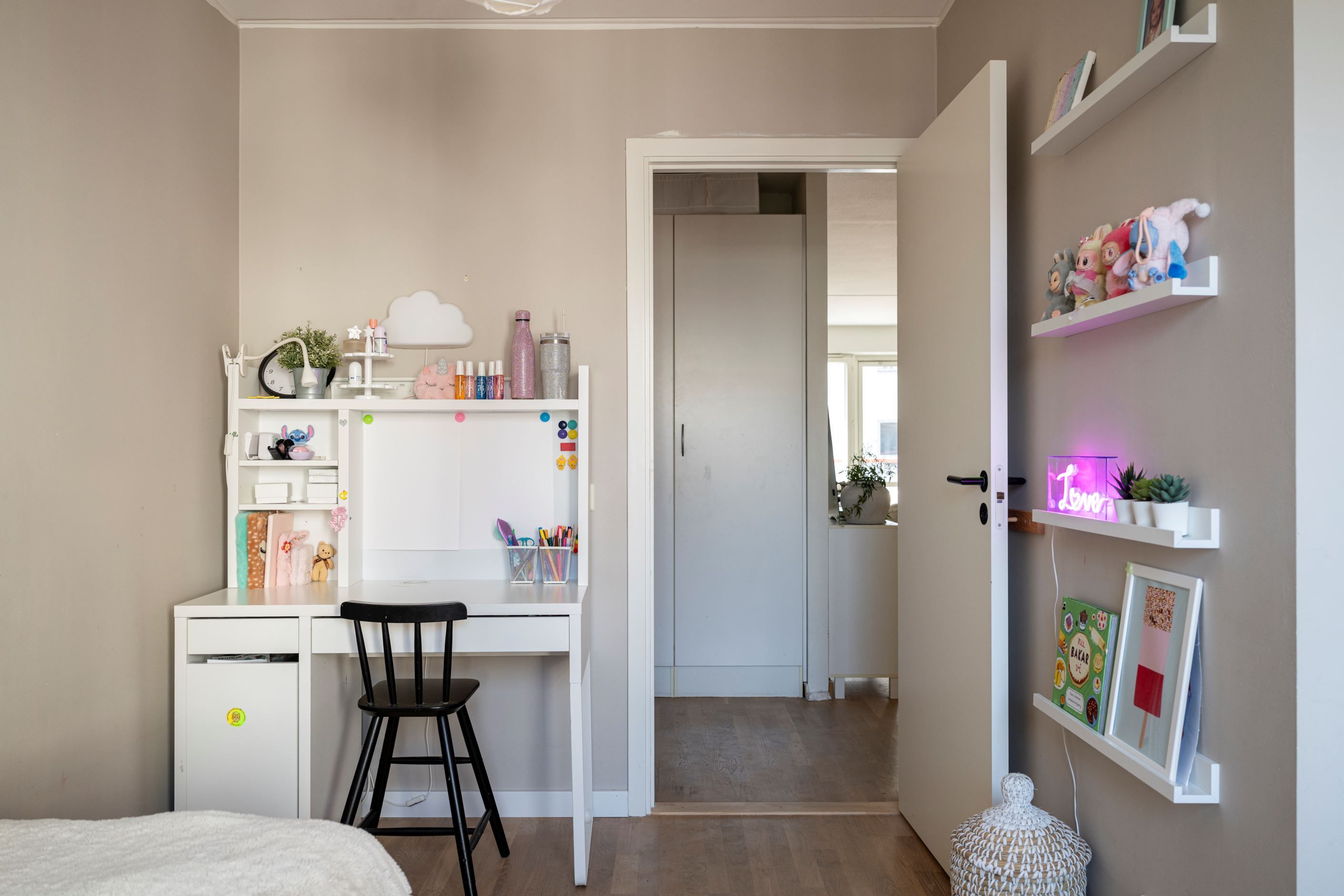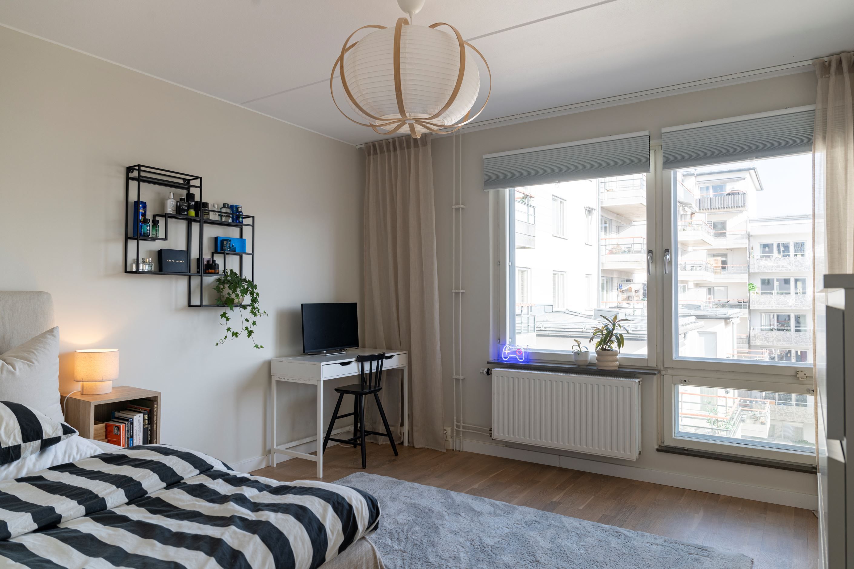 Lägenheten är en mycket välplanerad 4:a om 90 kvm med genomgående planlösning som skapar härligt ljusflöde och en luftig känsla. De två sovrummen vetter mot den rofyllda innergården, vilket ger en tyst och harmonisk sovmiljö. Samtliga sovrum har generösa ytor och goda förvaringsmöjligheter – perfekt för familjen, paret eller dig som önskar hemmakontor.