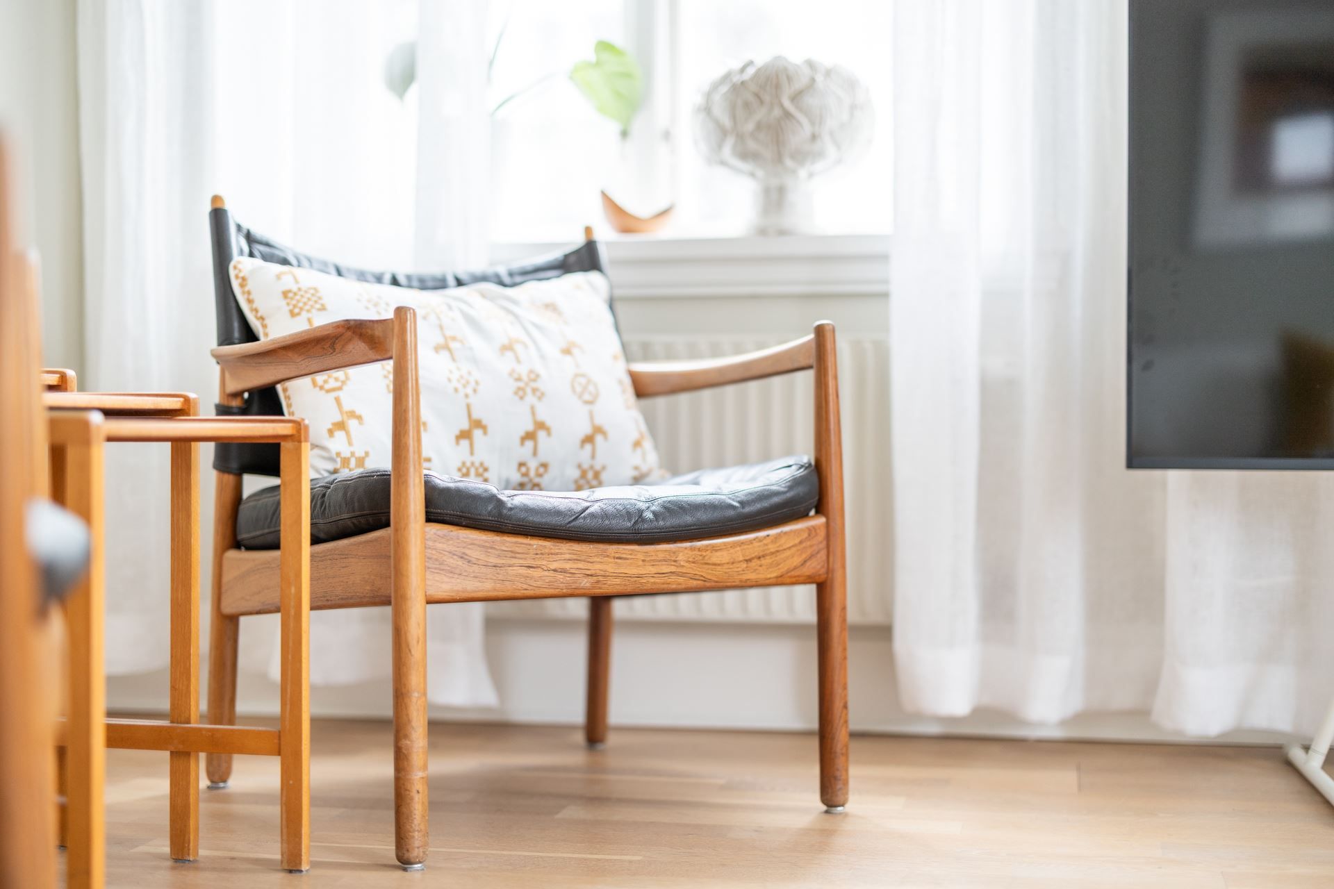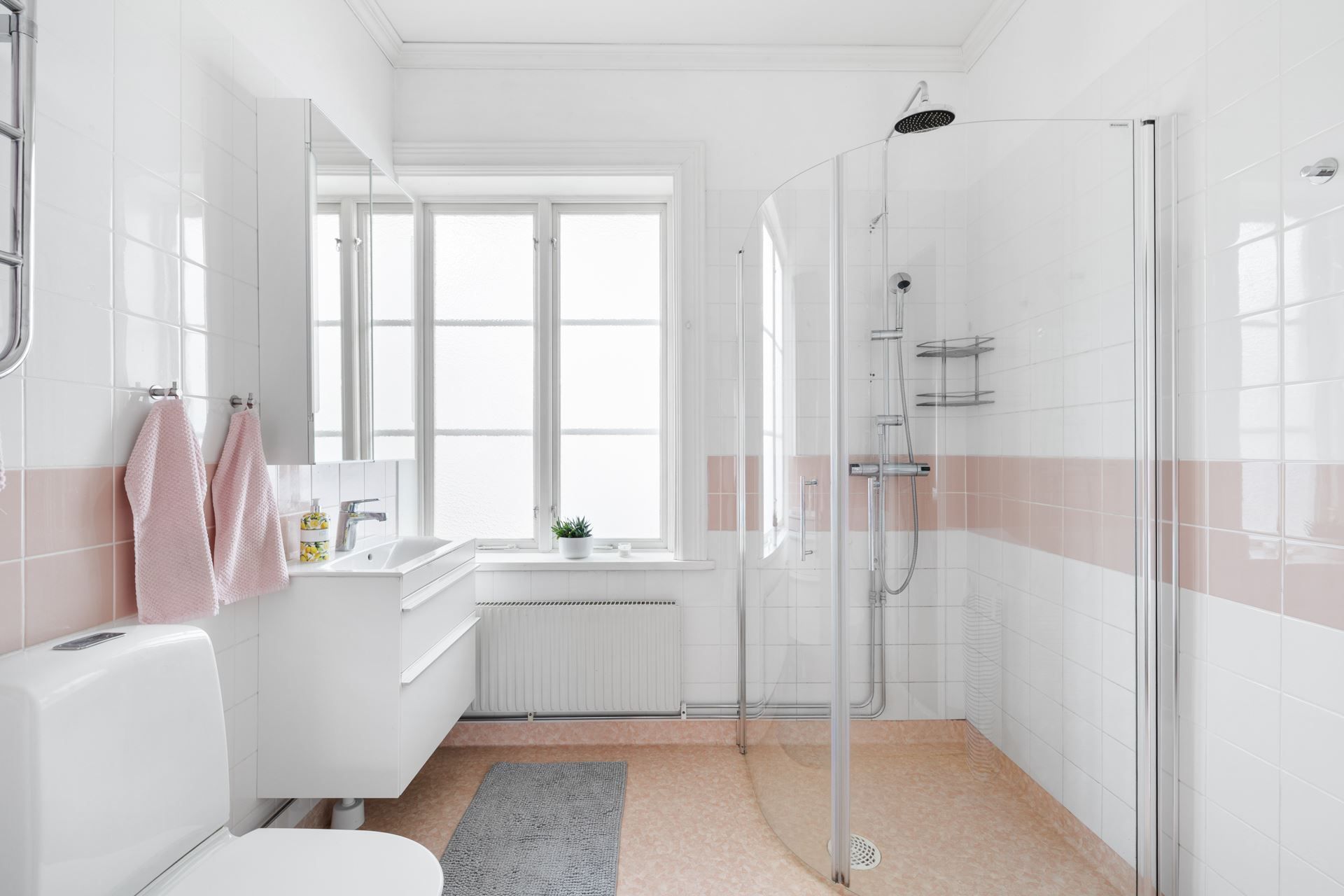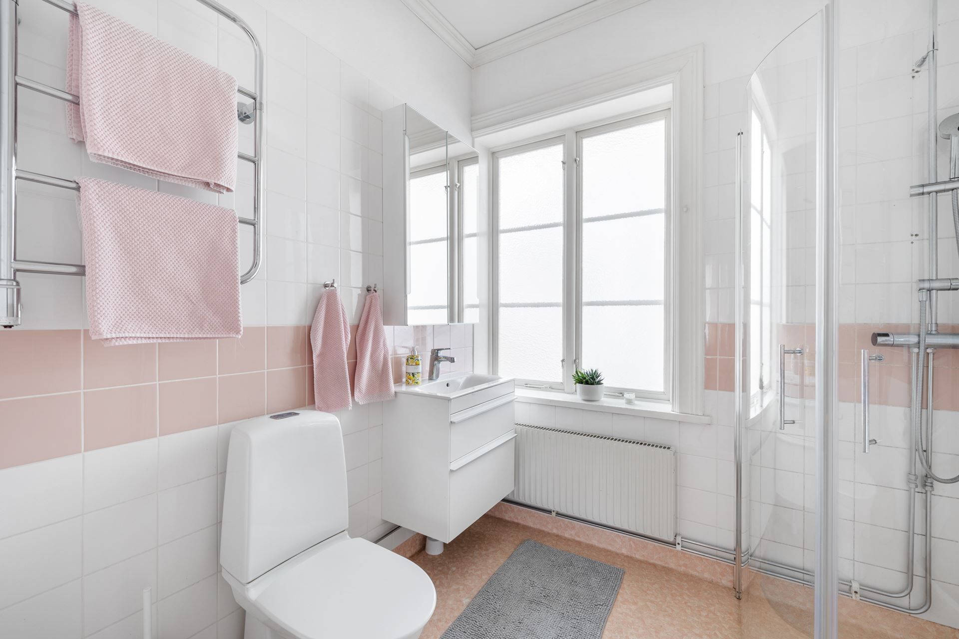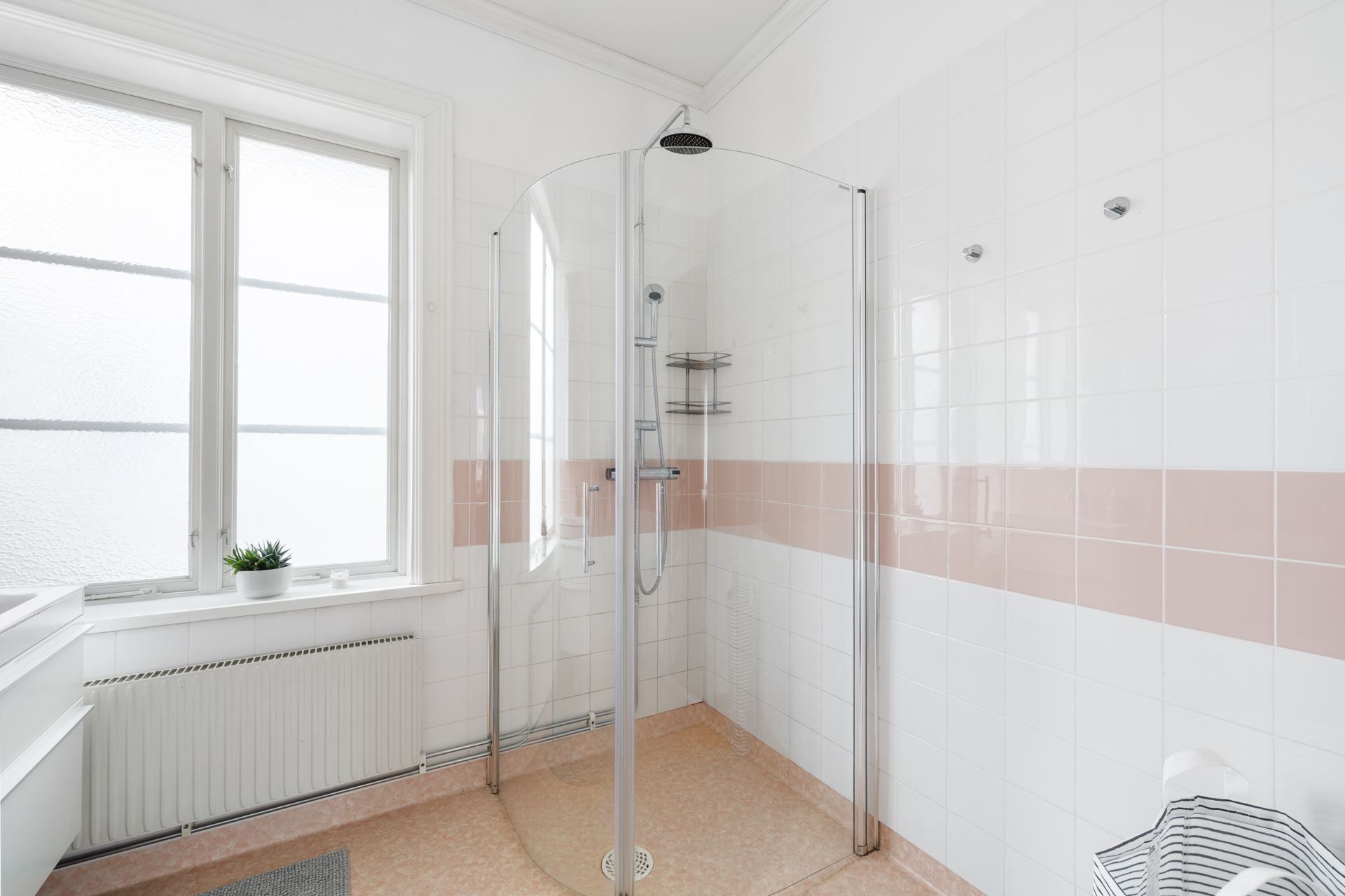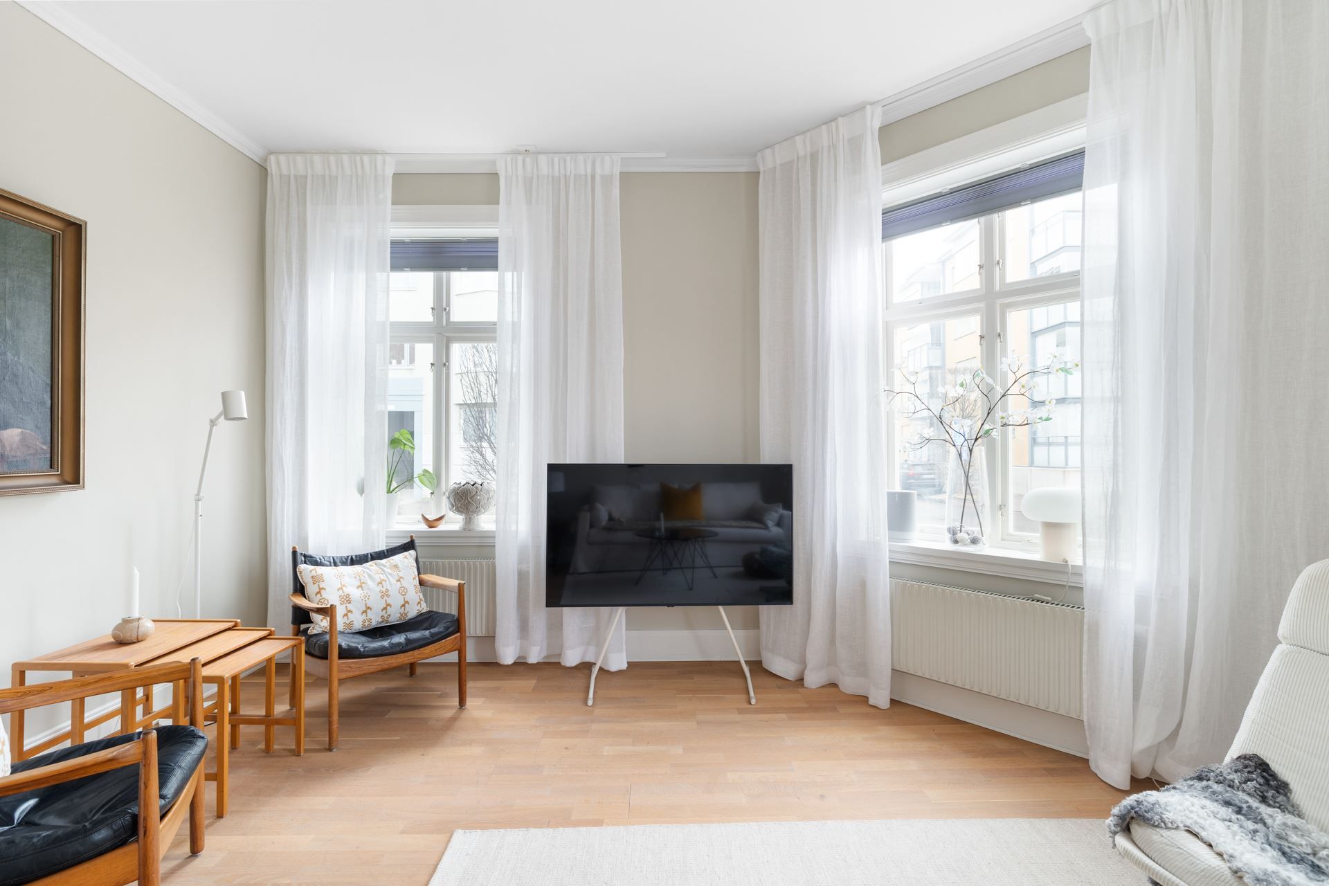 Lägenheten bjuder på en harmonisk kombination av tidstypisk karaktär och ljusa, stilrena ytskikt. Här möts du av generös takhöjd, stora spröjsade fönster och ett påtagligt ljusinsläpp.