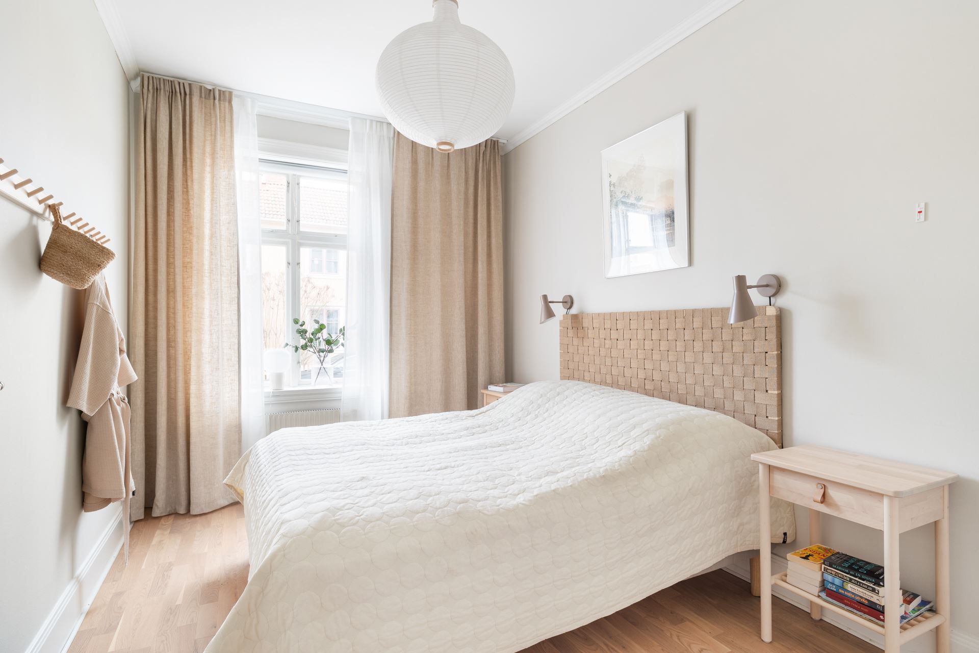 Lägenheten erbjuder utöver det väl tilltagna vardagsrummet ett rofyllt sovrum, ett ljust kök med matplats samt ett rymligt badrum. Färgskalan är ljus och nordisk med fina materialval som skapar ett lugnt och inbjudande hem. Den trevliga innergården som du har enkel access till via markplansläget och det centrala men stillsamma läget gör detta till ett boende att verkligen trivas i.