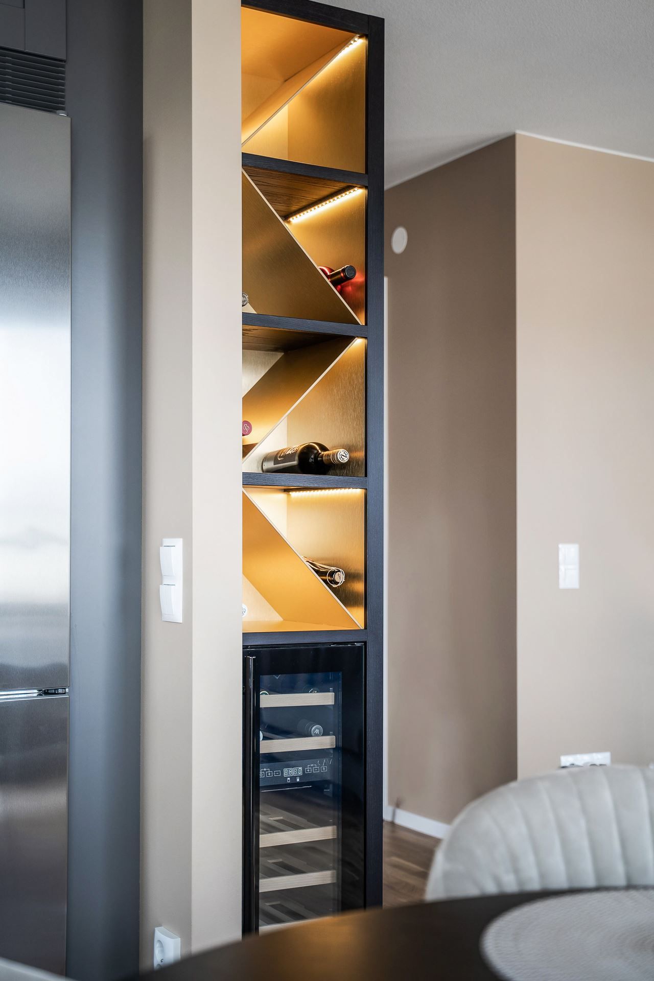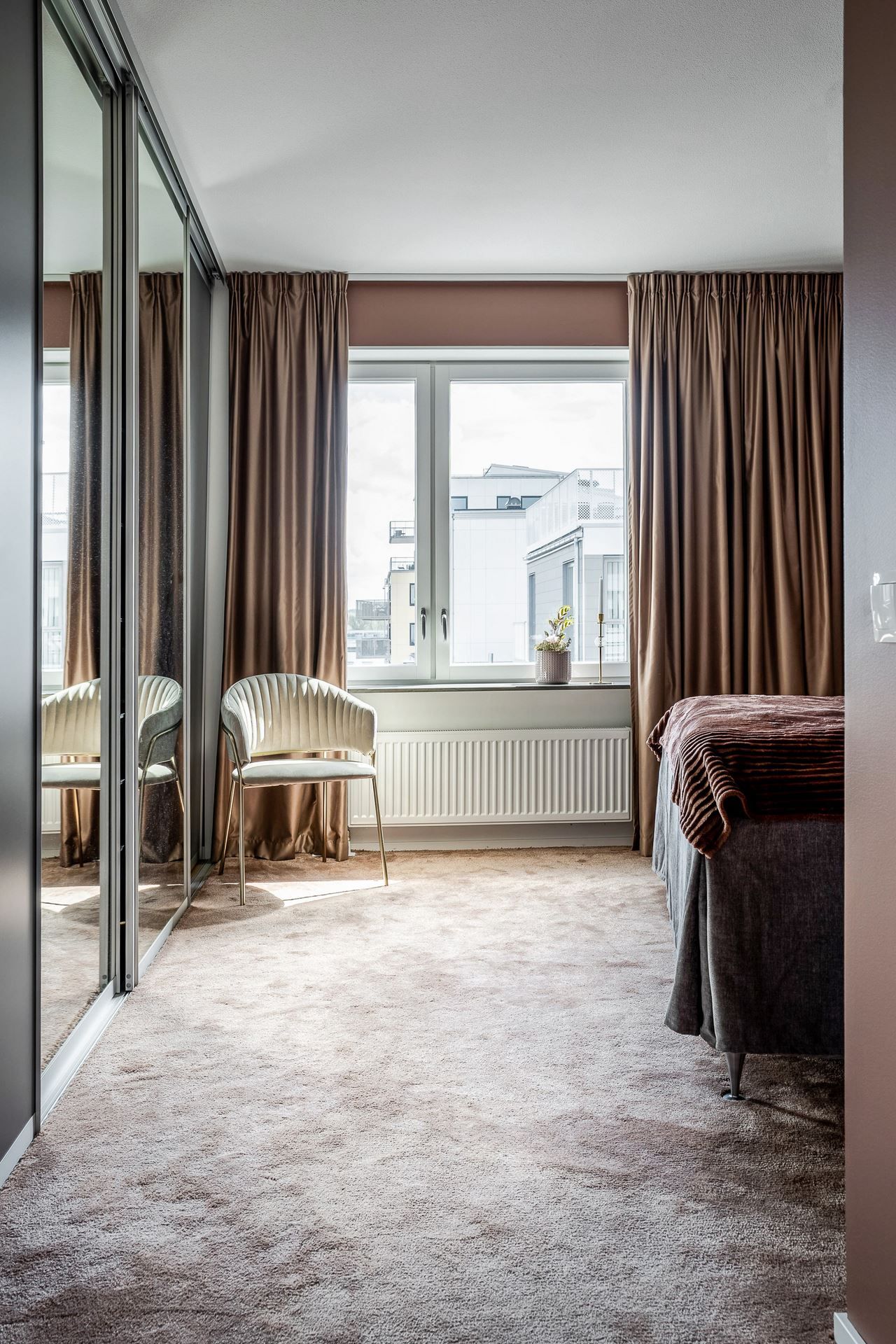 Vi kliver in i en inbjudande och välkomnande hall där stilrena skjutdörrsgarderober erbjuder gott om förvaring och skapar ett prydligt och harmoniskt första intryck. Här finns plats för både ytterkläder och skor – allt smart dolt men lättillgängligt. Direkt till vänster öppnar bostadens första sovrum upp sig, ett ljust och flexibelt rum som enkelt kan anpassas efter behov – perfekt som barnrum, gästrum eller ett rofyllt hemmakontor. Längre in i bostaden nås det fräscha, helkaklade badrummet som kombinerar stil och funktion. Här finns dusch samt en praktisk tvättavdelning med både tvättmaskin och torktumlare, vilket gör vardagen både smidig och bekväm. Master bedroom bjuder på en lugn och avkopplande atmosfär med generösa skjutdörrsgarderober som erbjuder utmärkt förvaring. Hemmets hjärta utgörs av vardagsrum och kök i öppen planlösning, där ljus och rymd står i fokus. Det moderna, stilrena köket samspelar elegant med vardagsrummet och skapar en social yta som passar lika bra för vardagens middagar som för större sammankomster.