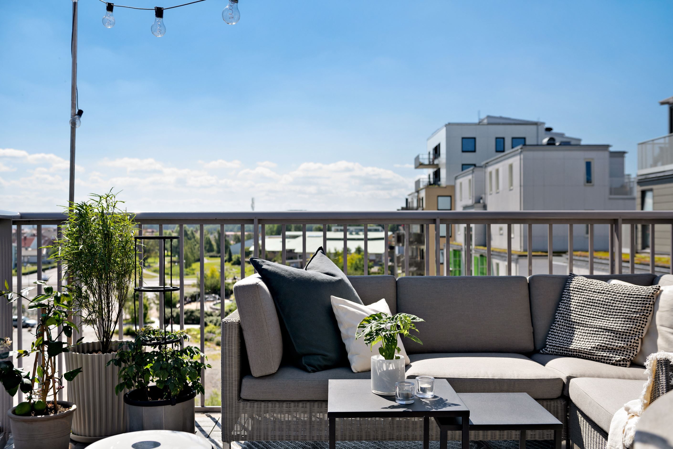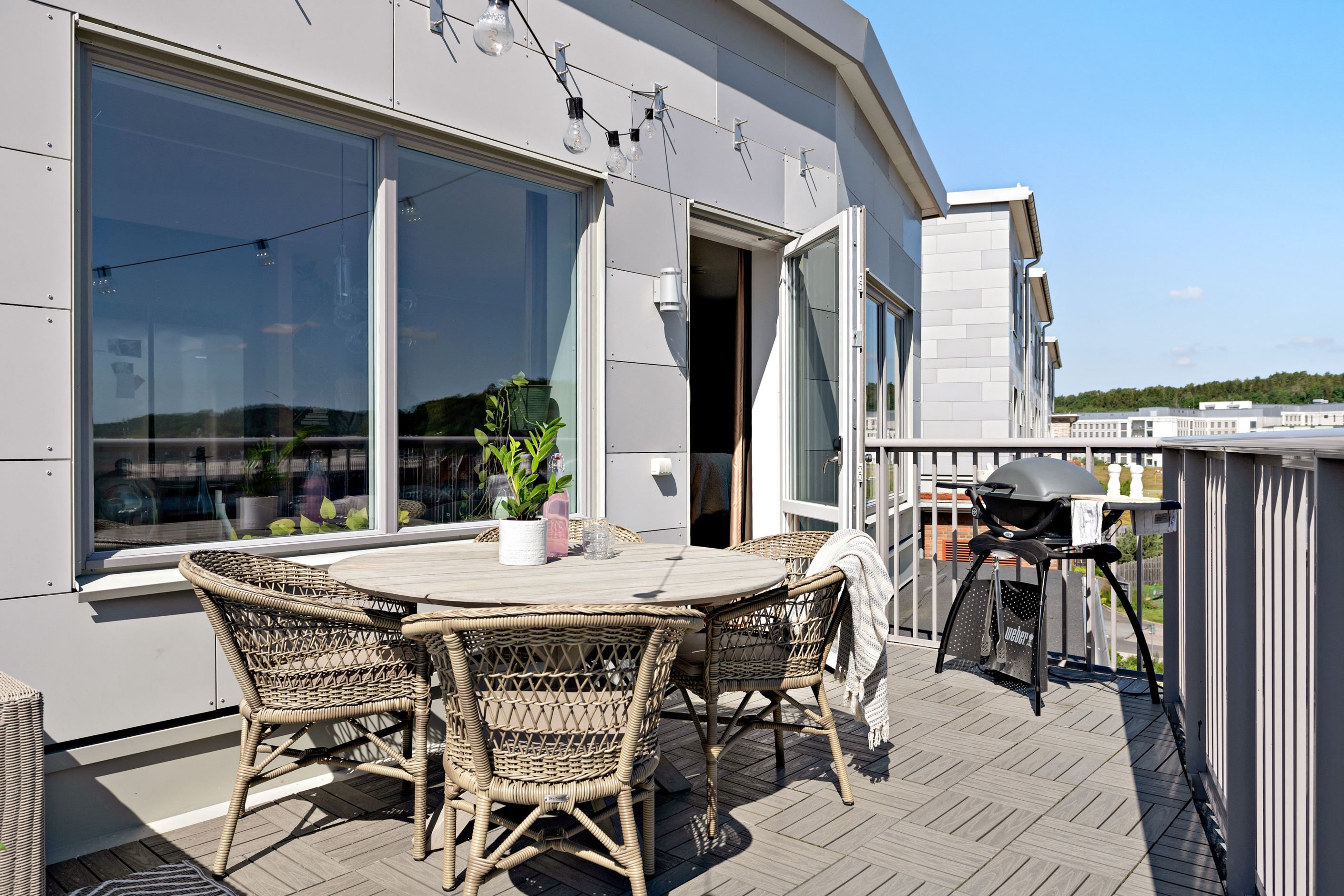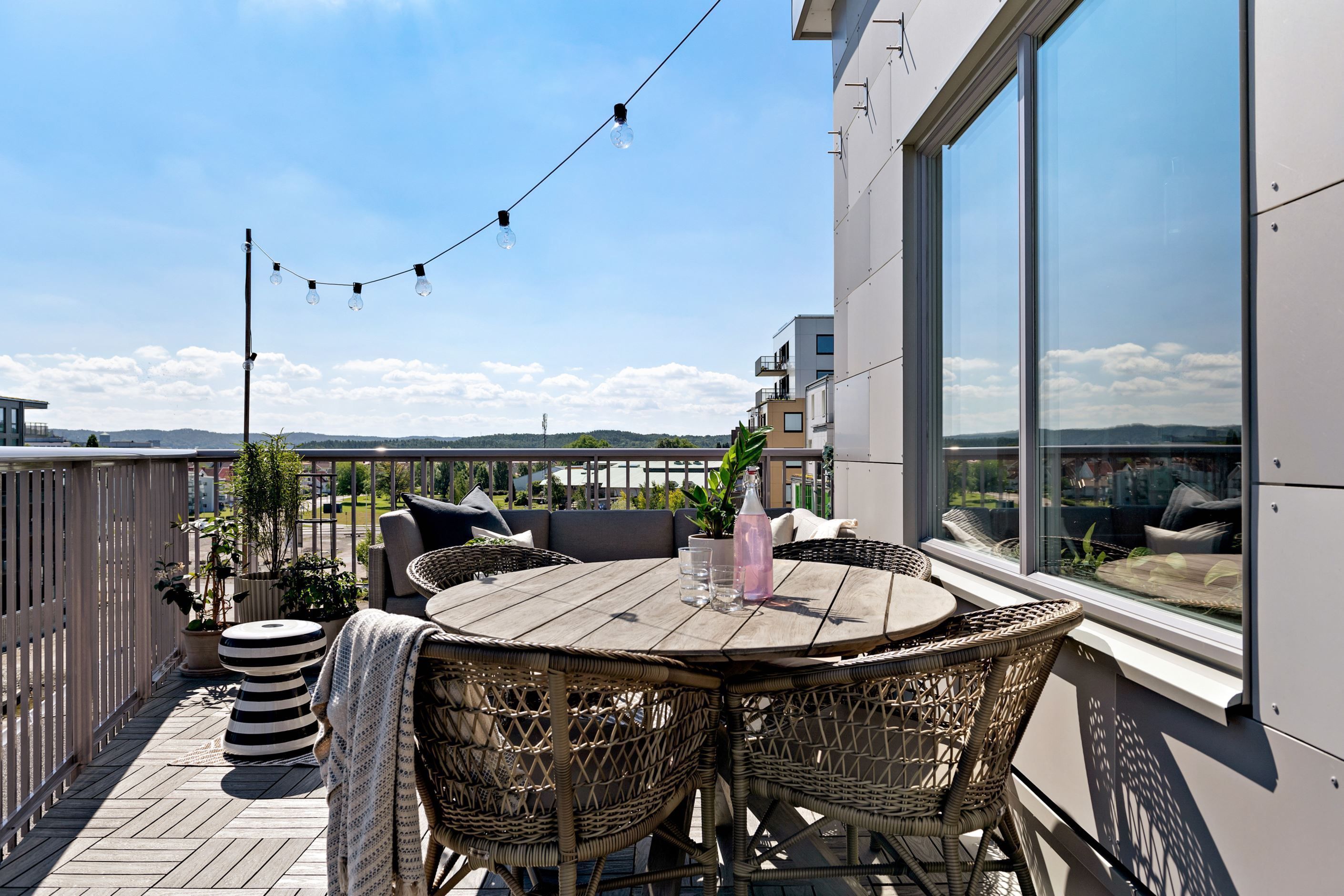 Bostaden är genomgående ljus och luftig med fönster i tre väderstreck, vilket ger ett fantastiskt ljusinsläpp från morgon till kväll. Från vardagsrummet nås den rymliga, insynsskyddade terrassen – en perfekt plats för avkoppling, umgänge och njutning under årets varmare månader.