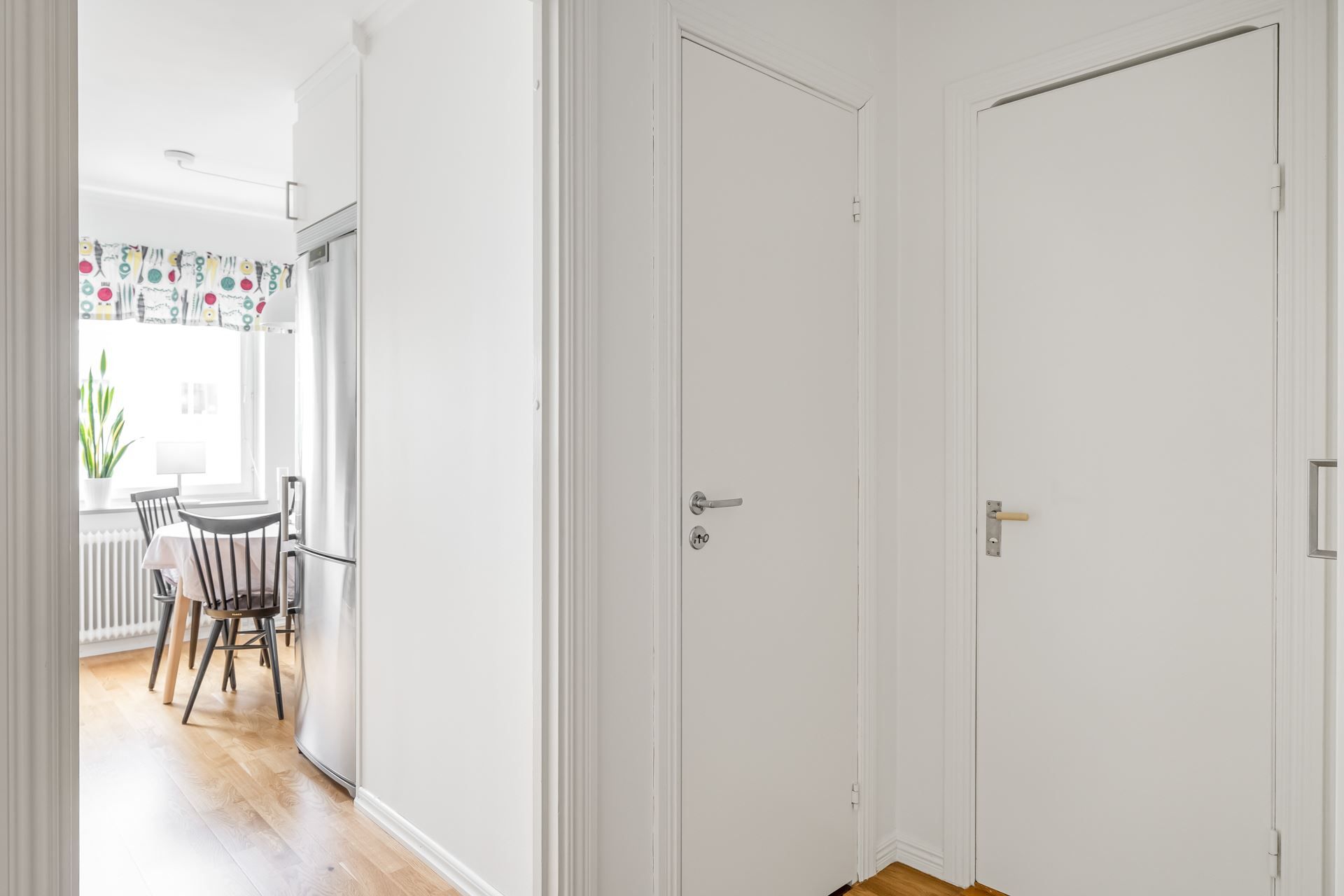 Det separata köket är smakfullt inrett och fullt utrustat med allt det moderna boendet kräver. Här finns också utrymme för ett mindre matbord eller arbetsplats – perfekt för dig som vill kunna jobba hemifrån. Det fräscha badrummet renoverades i samband med stambytet 2018.