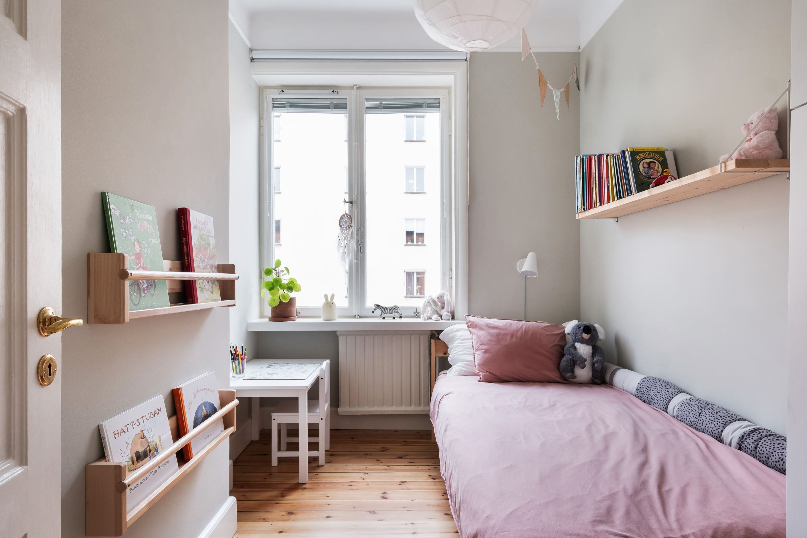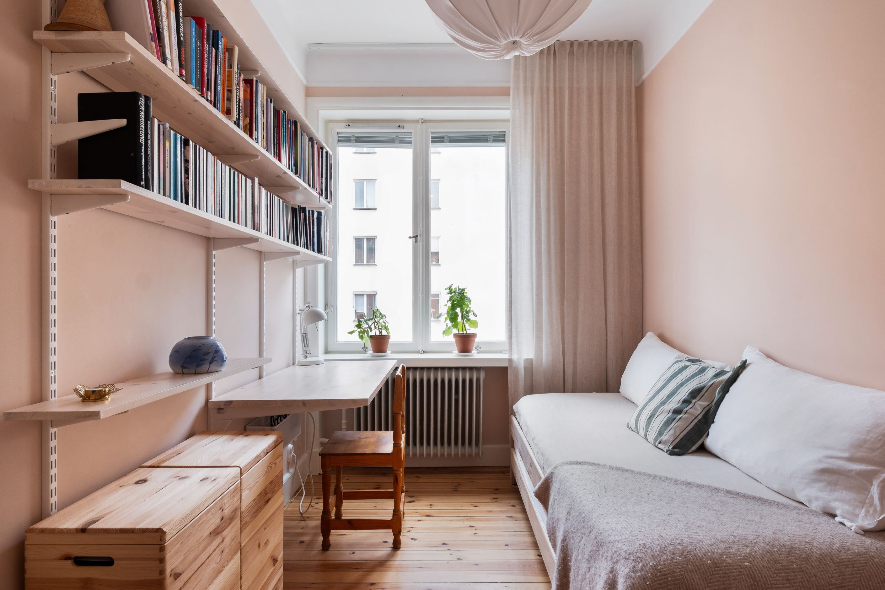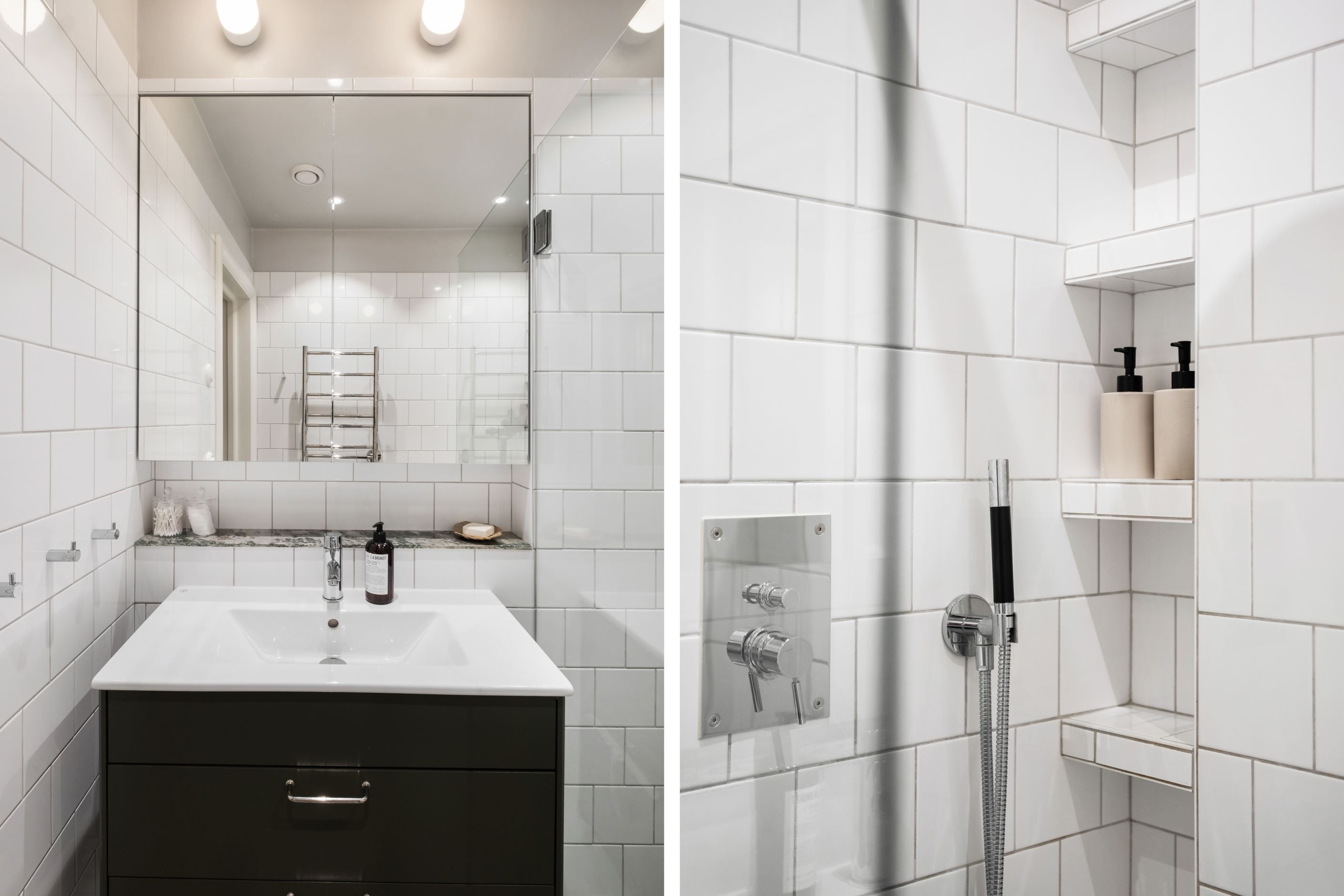 Master bedroom imponerar med en platsbyggd garderobsvägg i sober design samt direkt utgång till den härliga balkongen som vetter mot grönskande omgivningar. Utöver detta finns två välplanerade mindre sovrum. Det stilfullt renoverade badrummet bjuder på helkaklade väggar, marmorgolv med golvvärme. För extra komfort så finns även en separat tvättpelare.