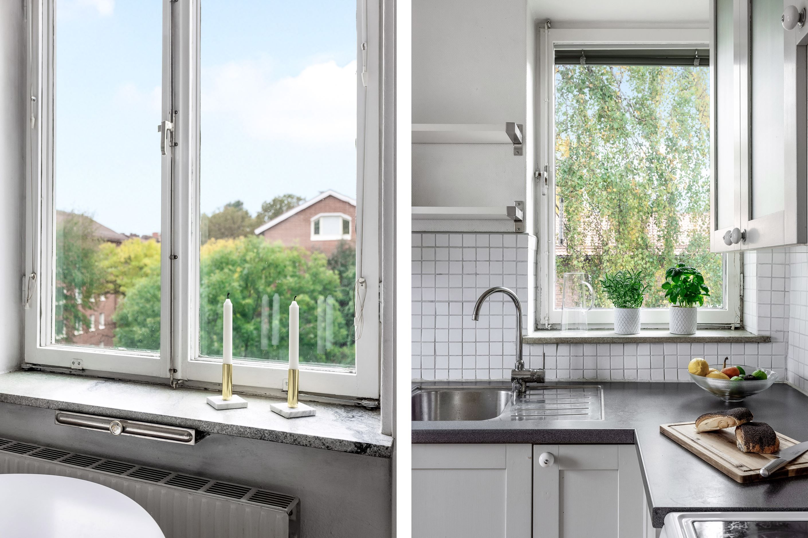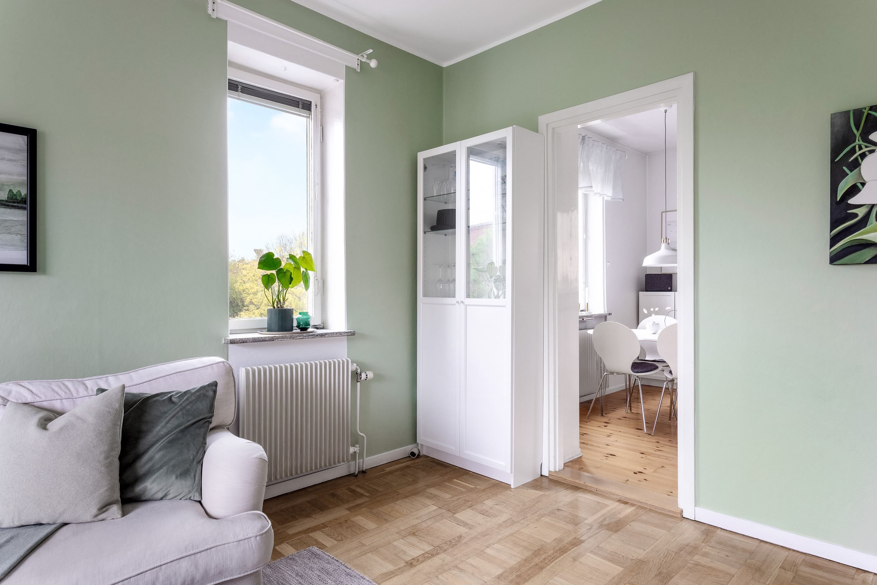Här bor ni med ett av föreningens bästa lägen i huset-högst upp med gavelläge med fönster i tre väderstreck och balkong i helt ogenerat läge. Genomgående generös takhöjd och ett fantastiskt ljusinsläpp från fönster i tre väderstreck. Lägenhet kan göras om till en 3:a (se alternativ planskiss) då tidigare vägg i köket tagits ner.