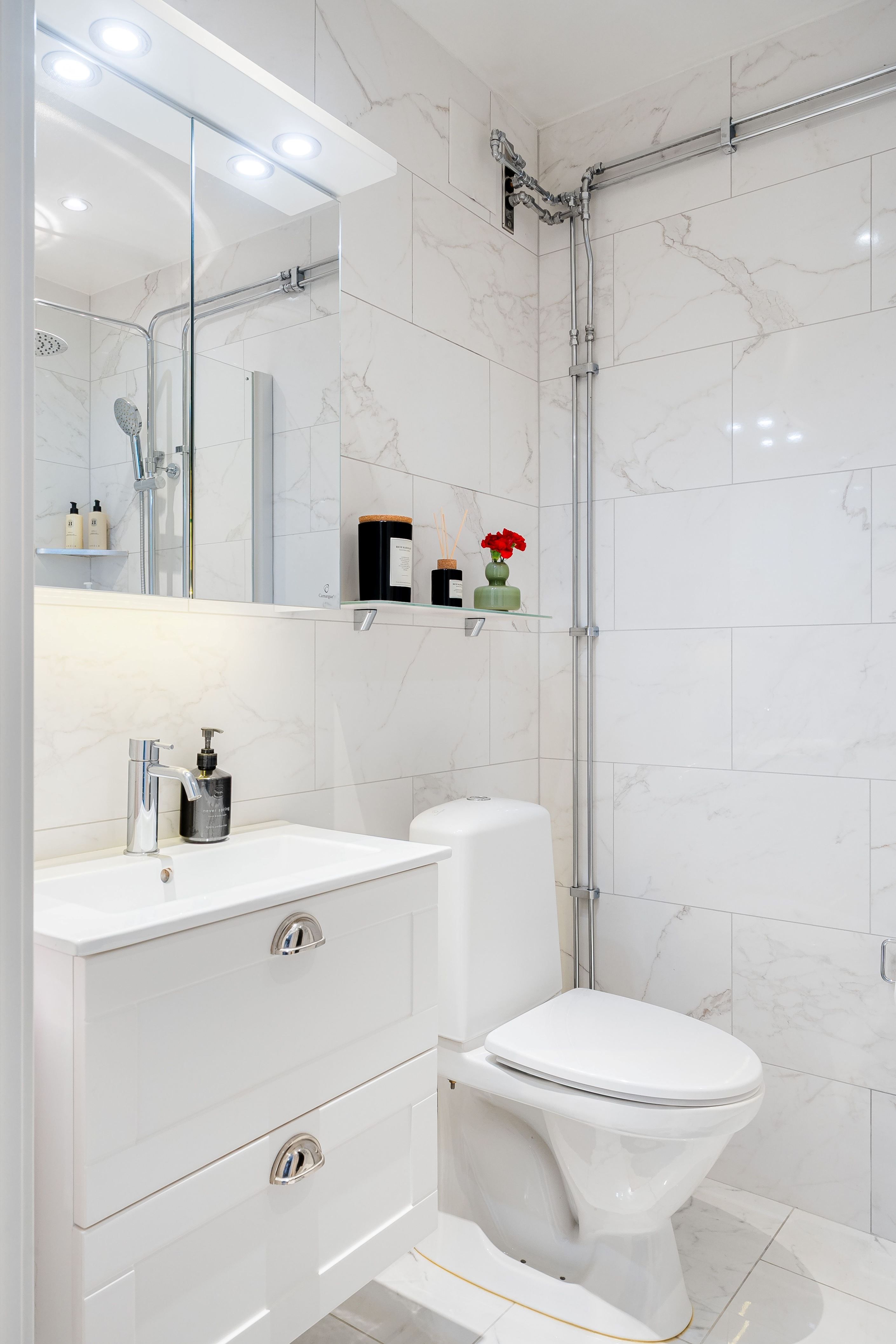 Här bor du i en bostad där varje kvadratmeter används smart. Planlösningen är social och inbjudande, perfekt för både vardag och umgänge. Badrummet, som renoverades 2019, är fortsatt fräscht och tidlöst i stilen – tack vare välvalda material och färger.